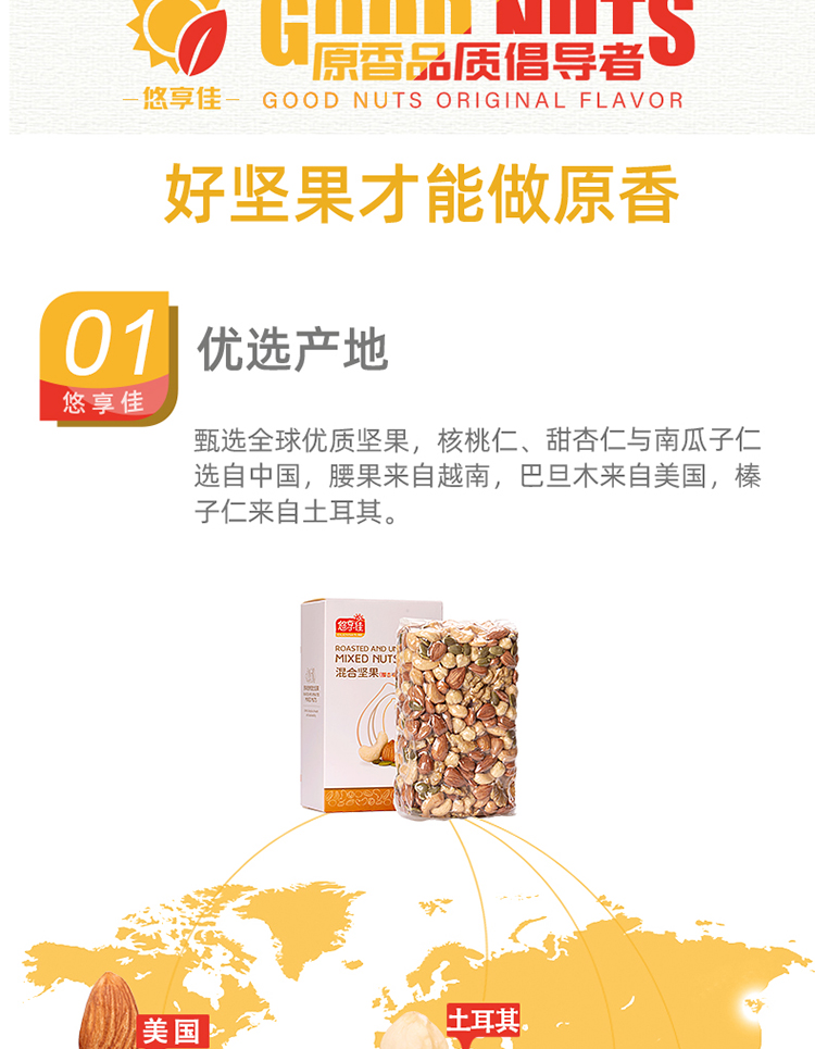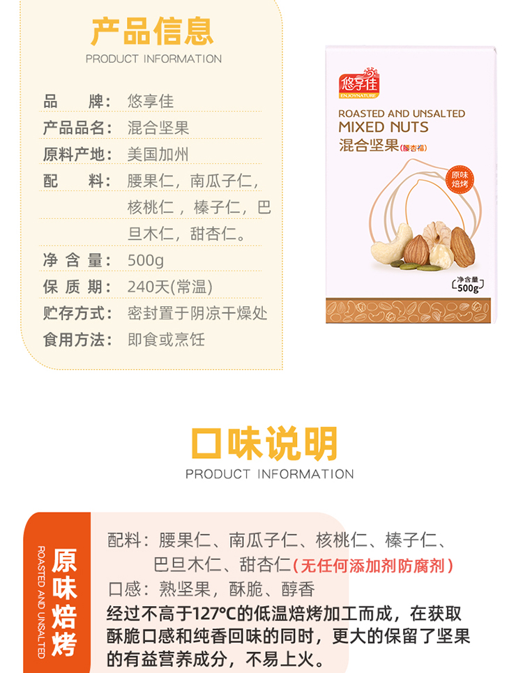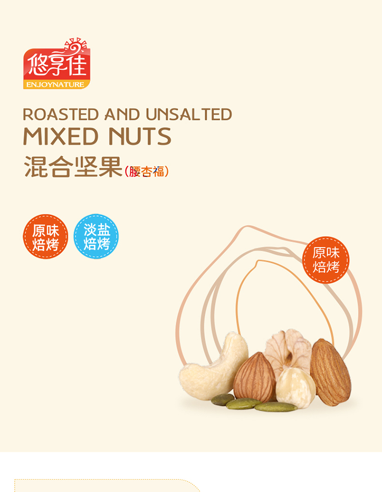 【悠享佳】悠享佳混合果仁-腰杏福-500g原味综合每日纯坚果孕妇儿童干果仁零食