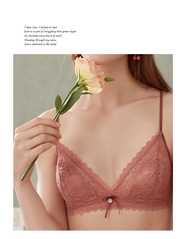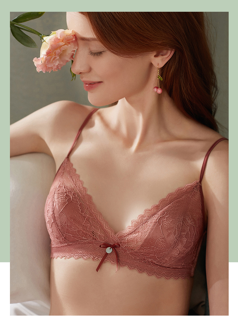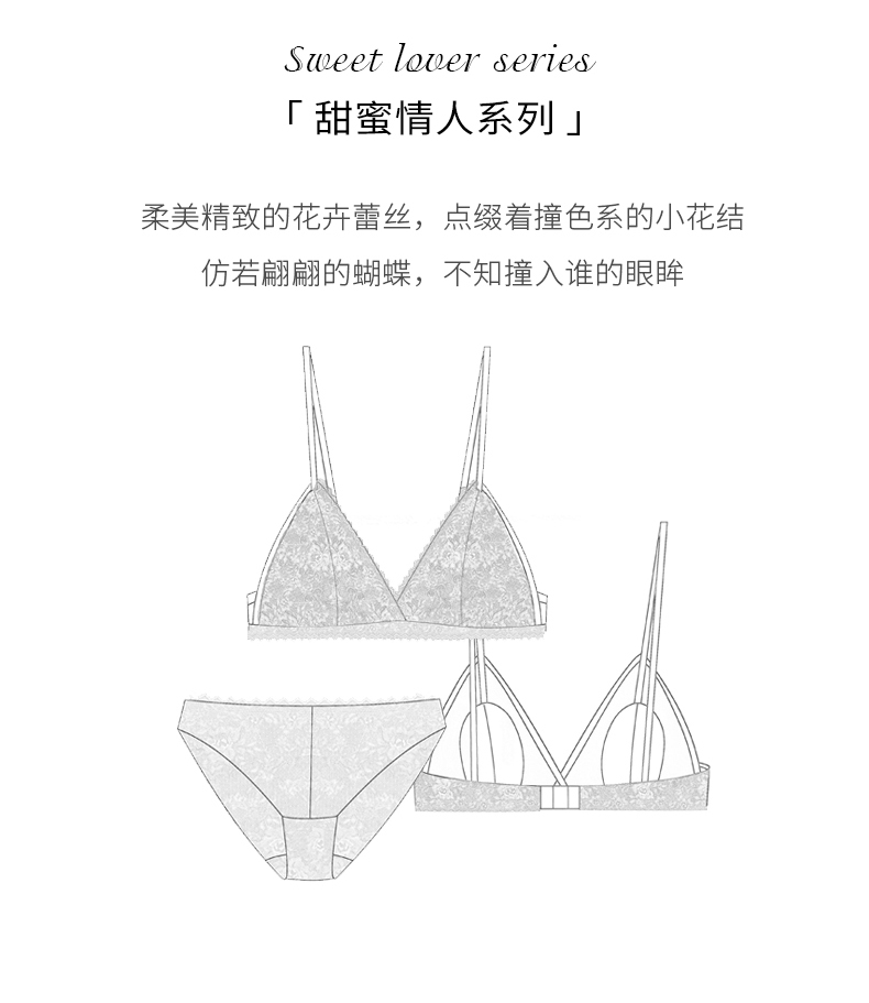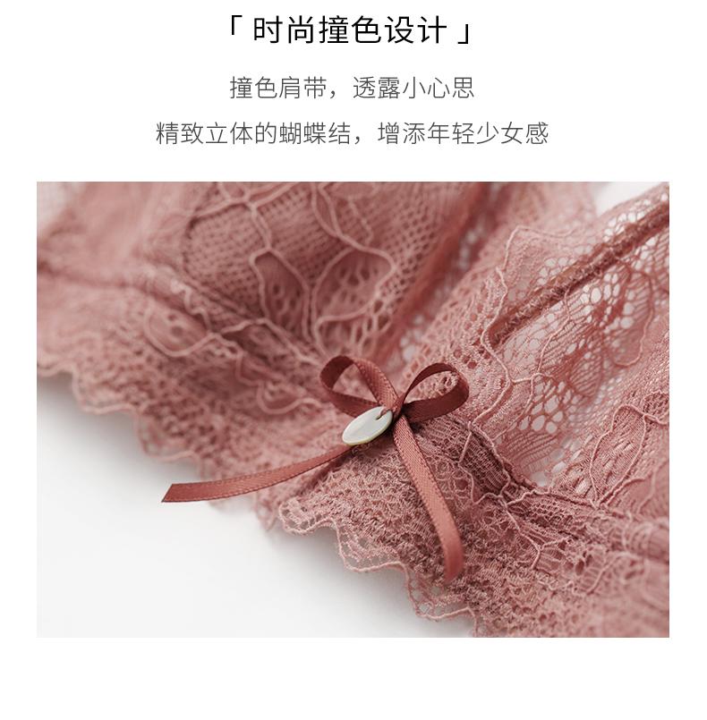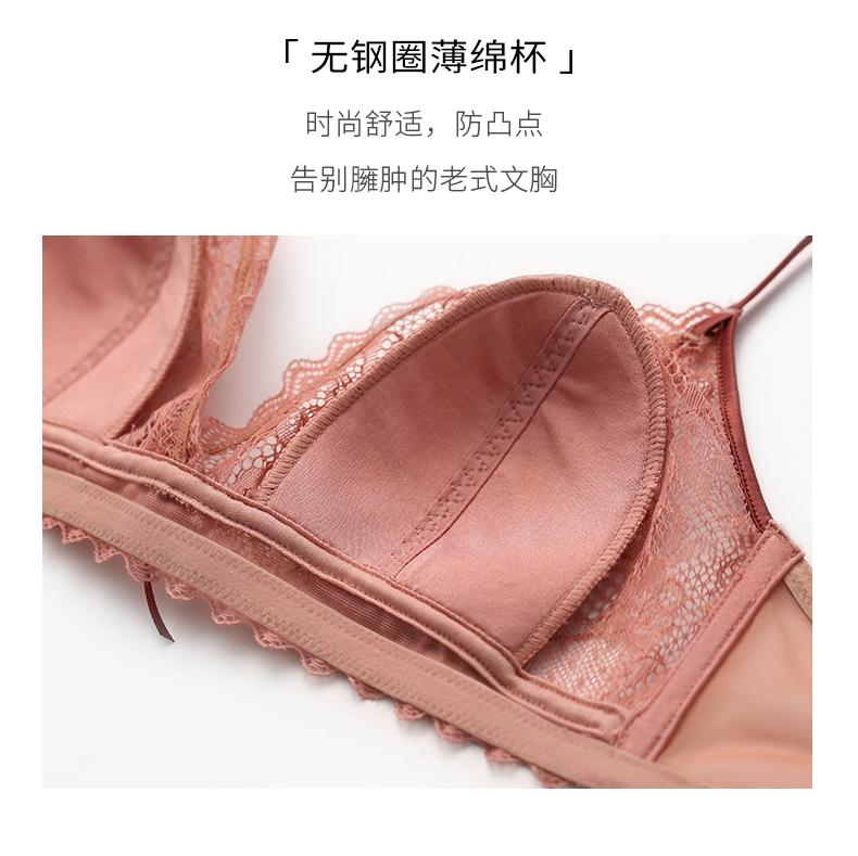 金三塔真丝无钢圈内衣女法式蕾丝学生薄款小胸文胸套装 NZFAA303