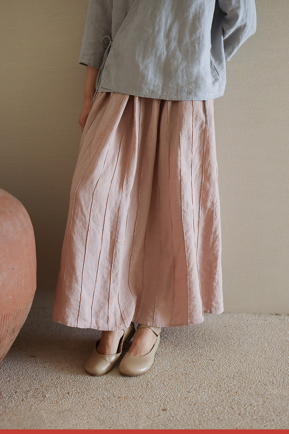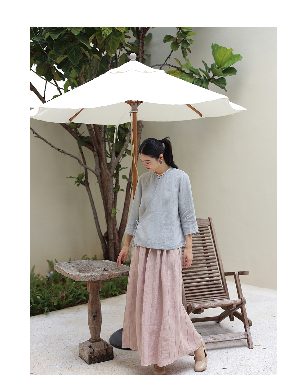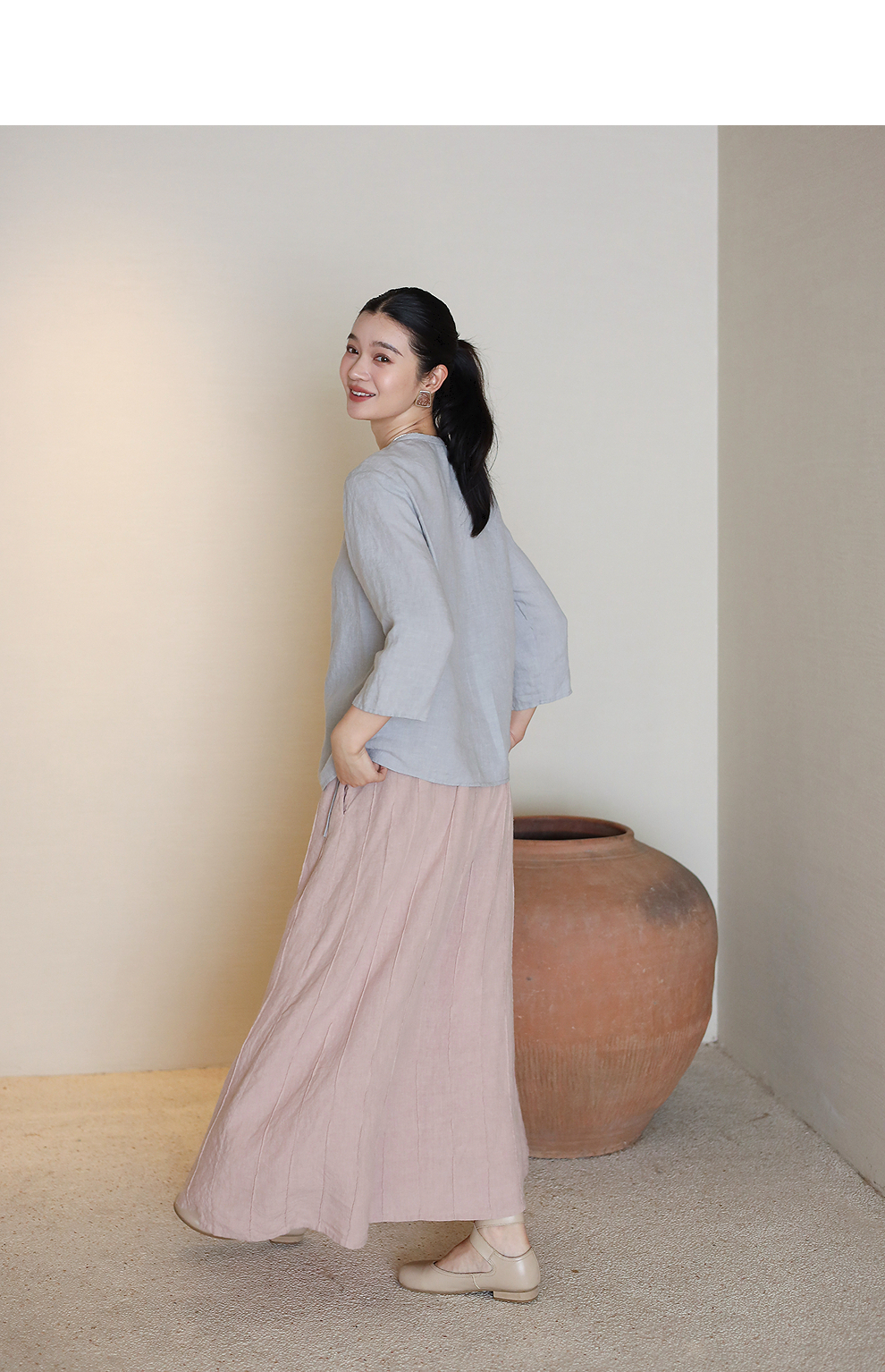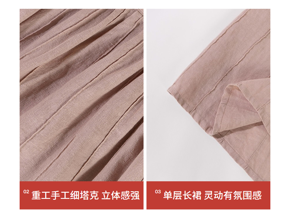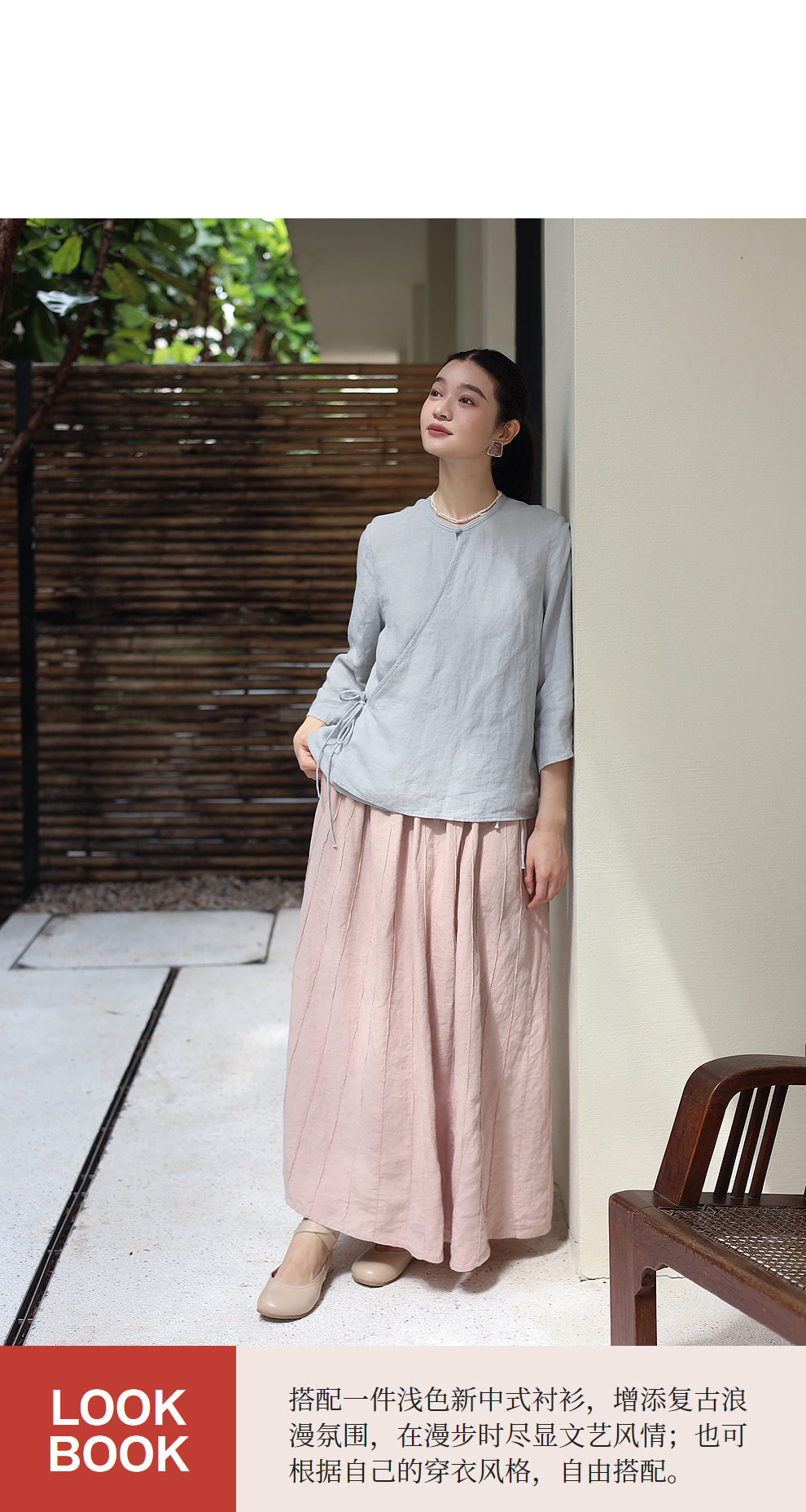 绽放302朵/【宋瓷系列】夏季亚麻立体感百搭显瘦复古文艺半身长裙