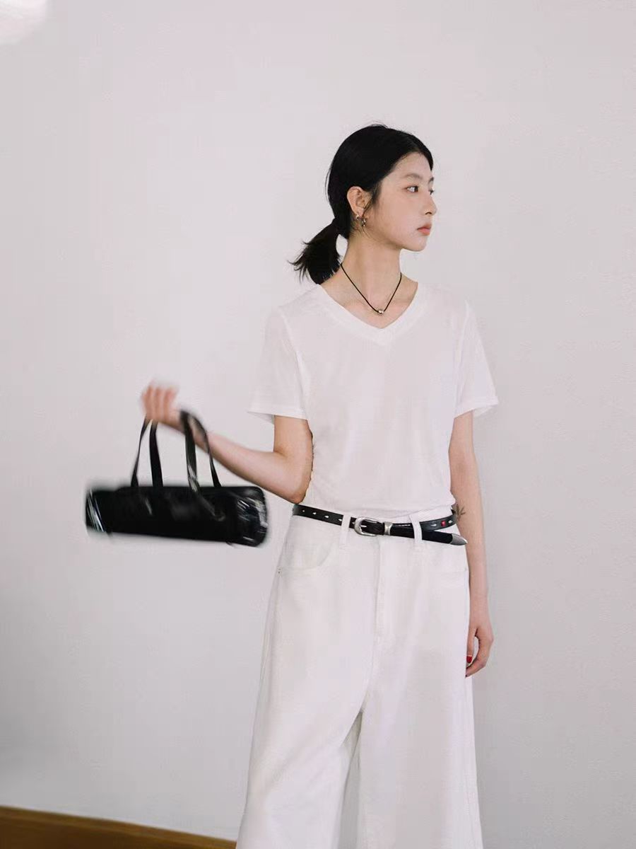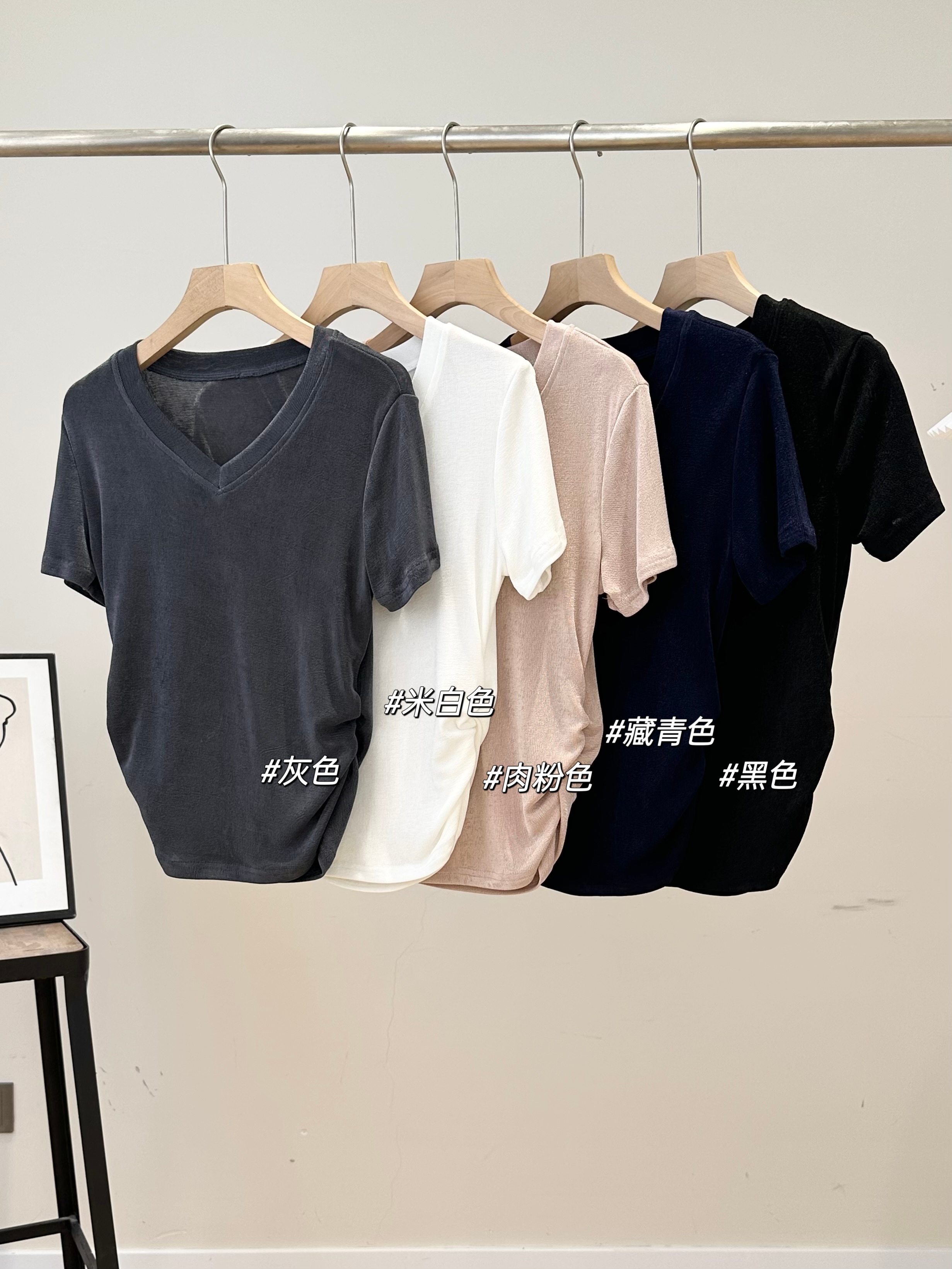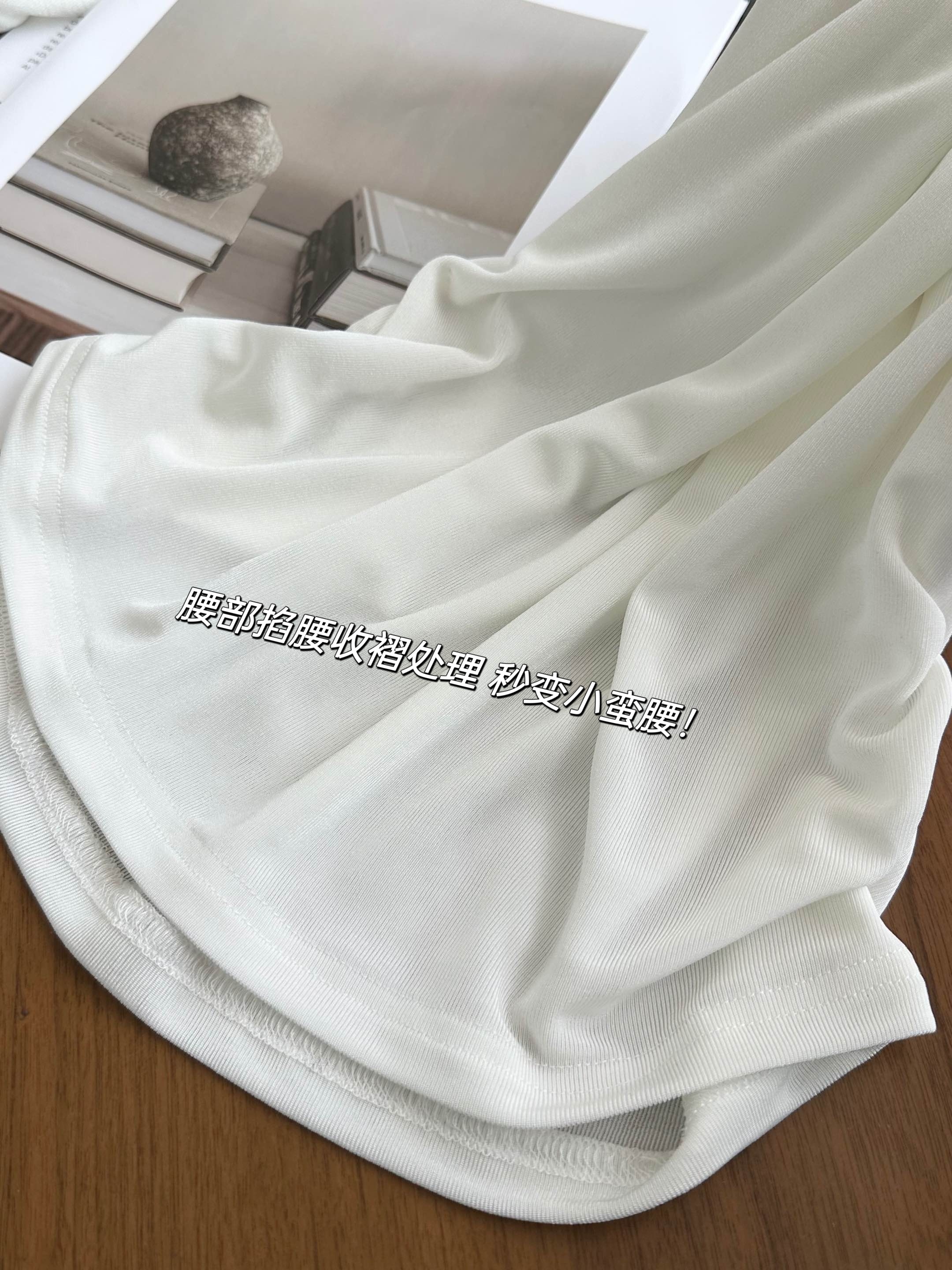 手感超赞,垂~薄~柔~带点微微珍珠的光泽感的掐腰收褶短袖T恤!巨巨巨显瘦!
