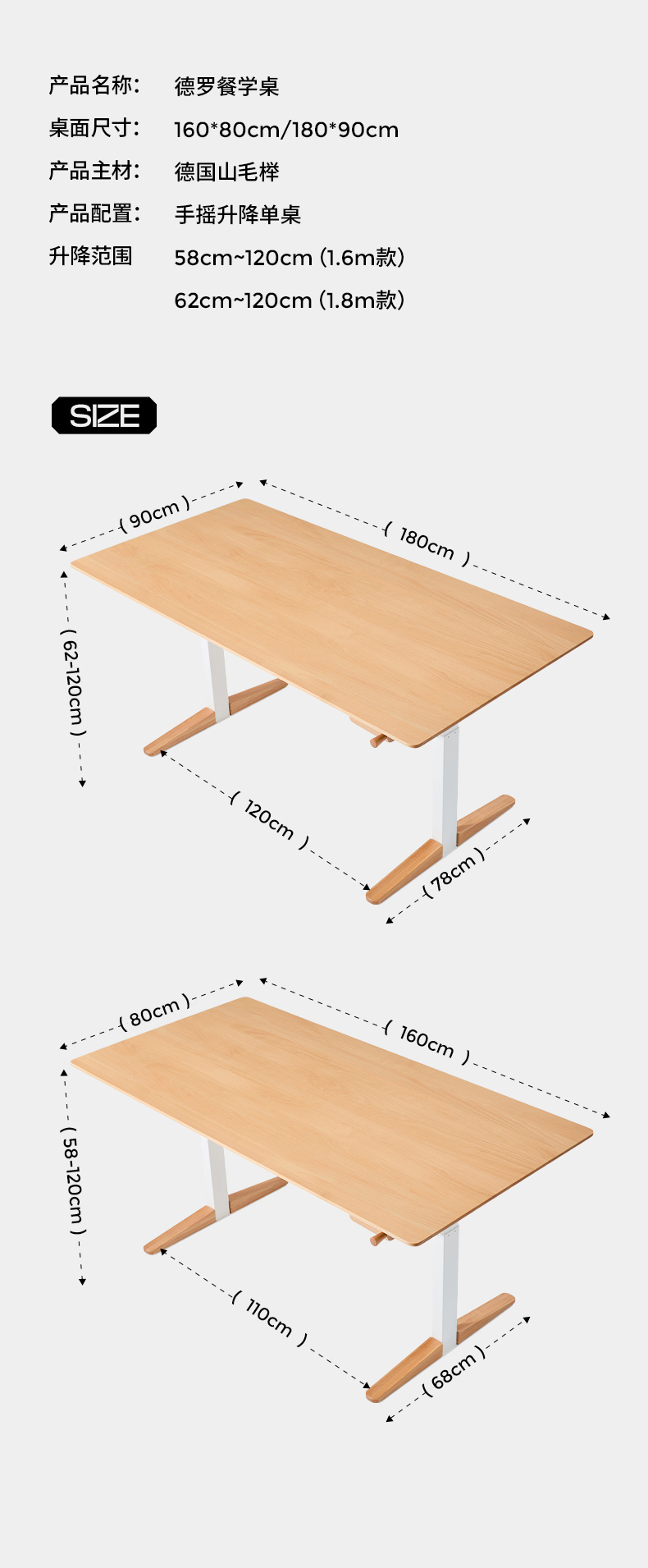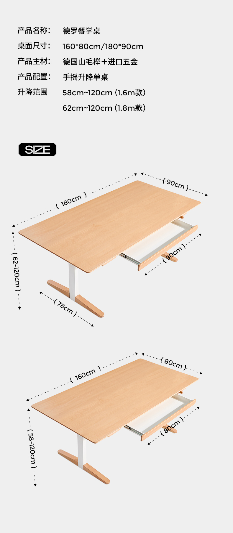 2平米可升降带收纳抽屉多功能餐学桌德罗多乐桌