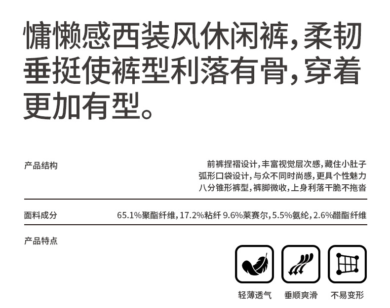 2025春夏新款女裤直筒垂感醋酸天丝TR高级质感慵懒八分休闲裤!