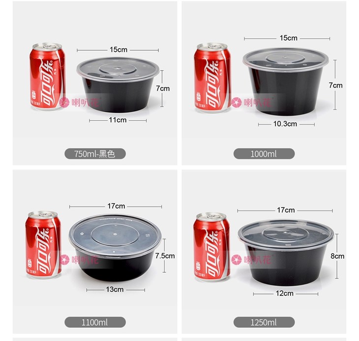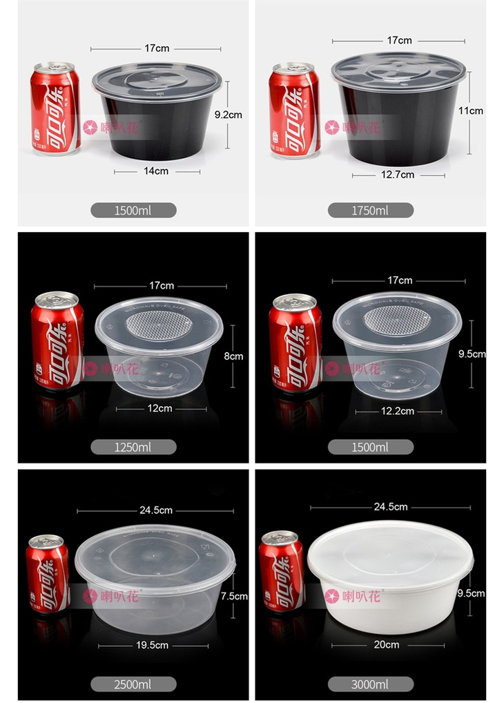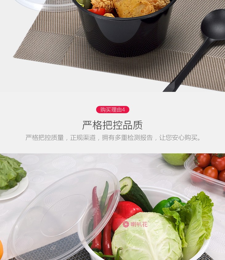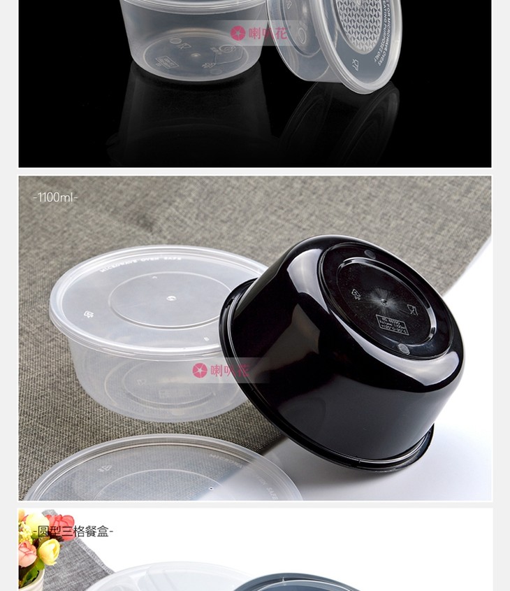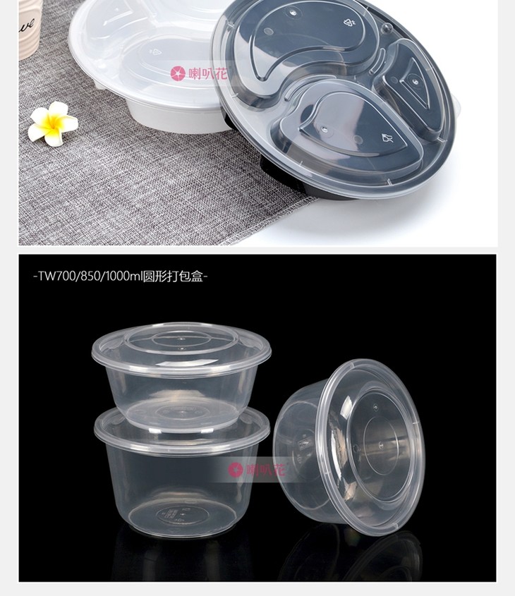 喇叭花圆形一次性餐盒便当盒外卖打包盒快餐盒汤碗透明塑料盒带盖