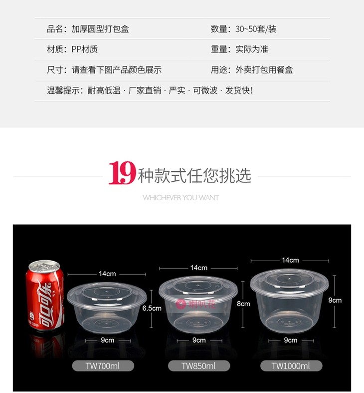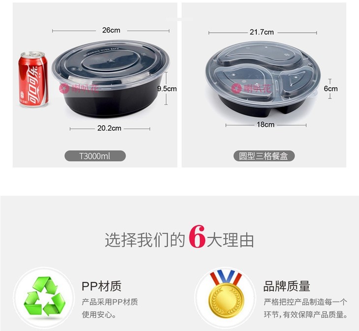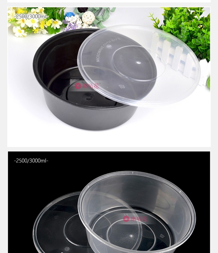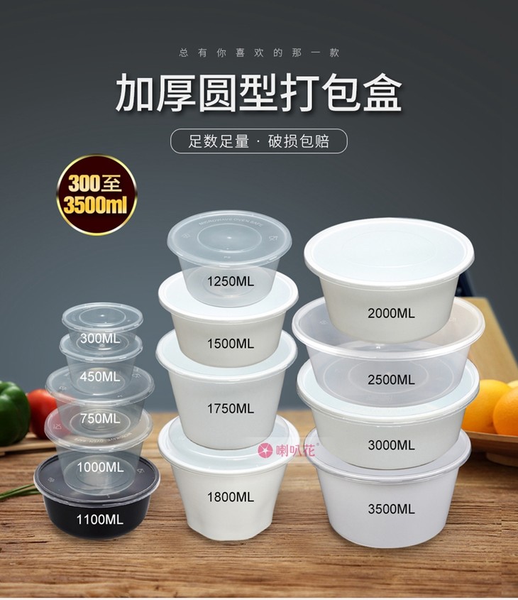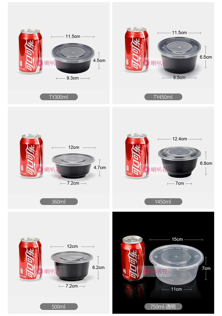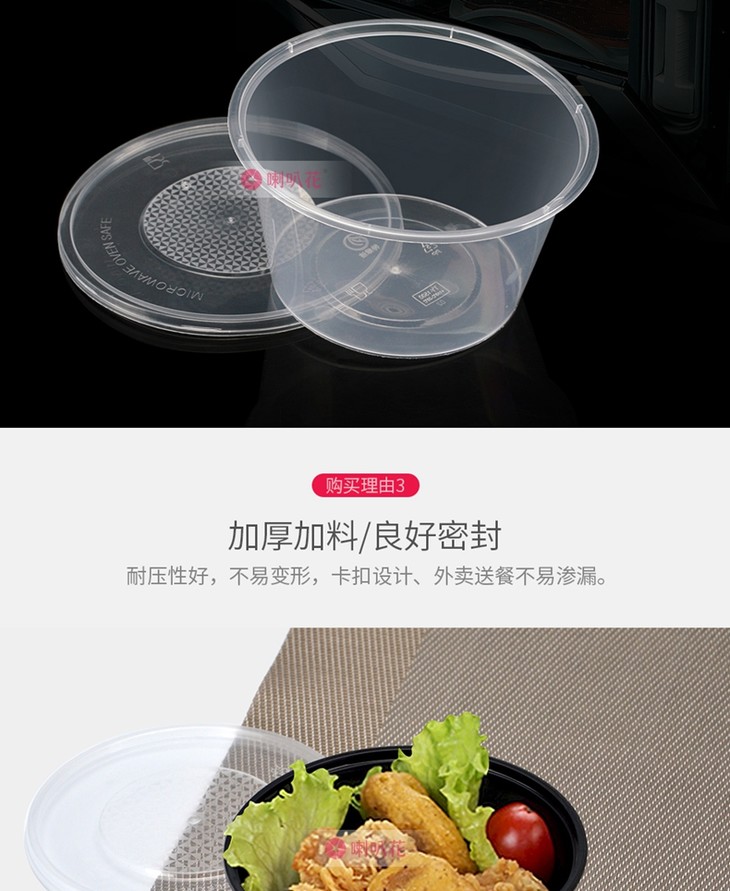 喇叭花圆形一次性餐盒便当盒外卖打包盒快餐盒汤碗透明塑料盒带盖