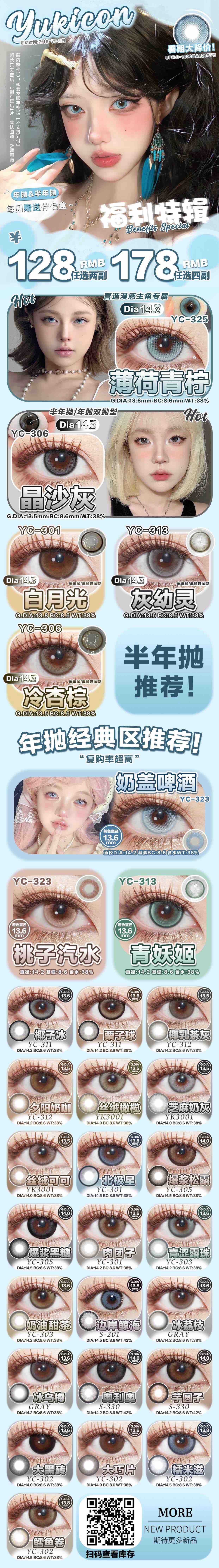 Yukicon&sntty半年抛/年抛活动 冻梨黑灰/冻梨冰蓝/薄荷青柠/晶沙灰/冷杏棕/白月光/灰幼灵/奶盖啤酒/桃子汽水/青妖姬/椰子冰/丝绒橄榄/爆浆黑糖/青涩露珠/边岸鲸海/奥利奥/糯米滋