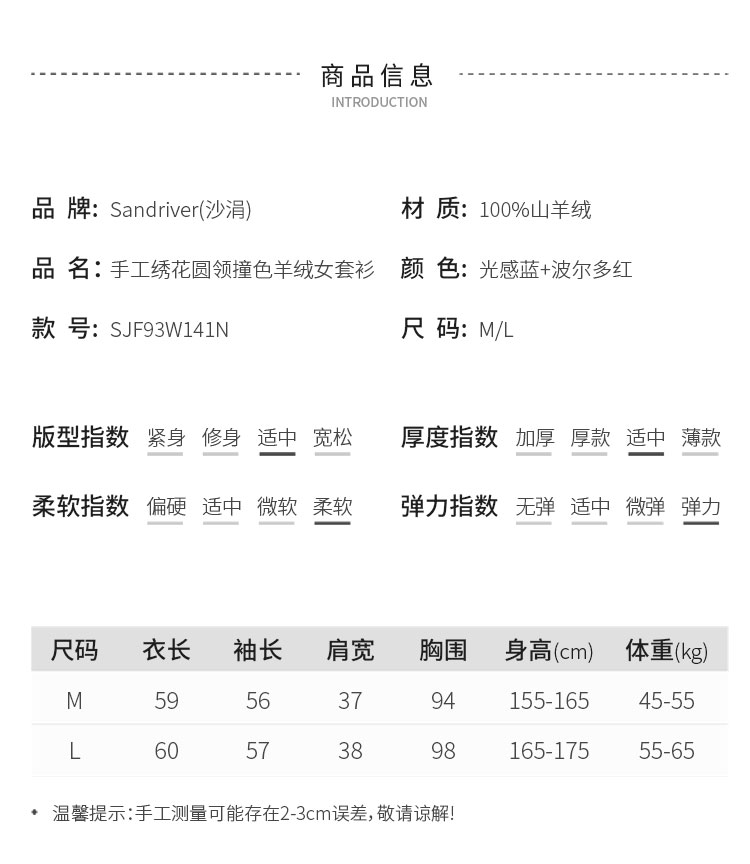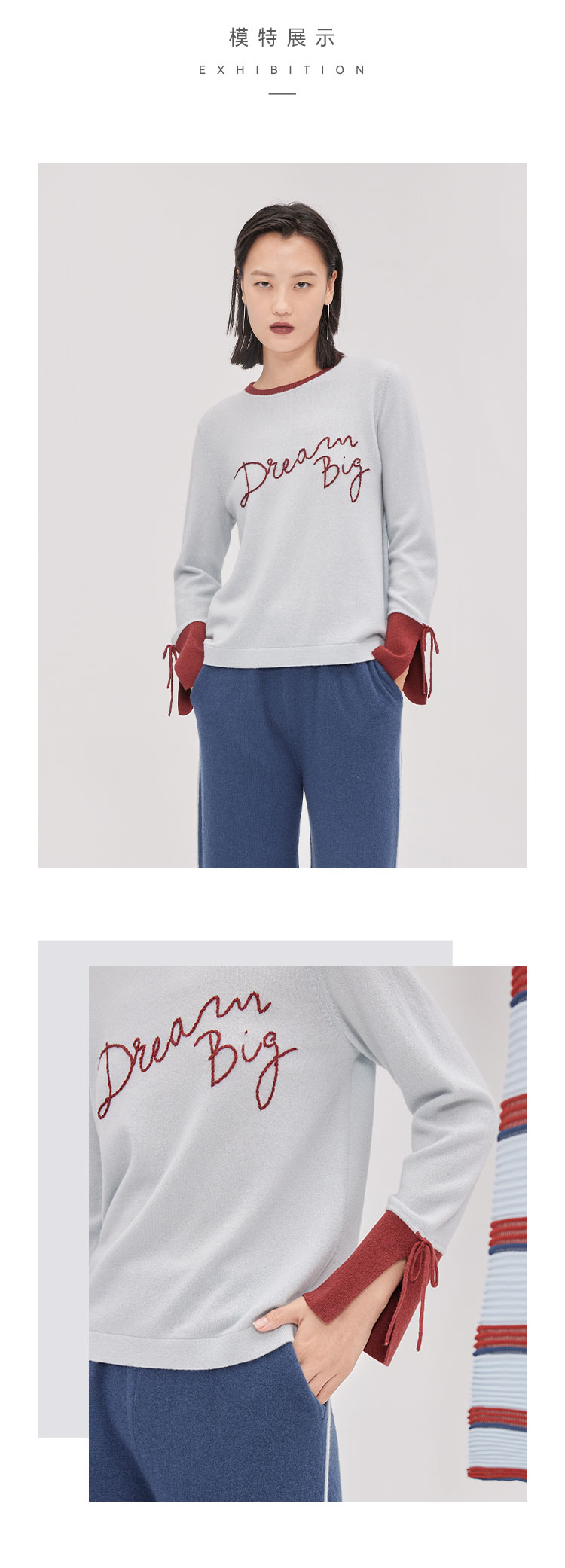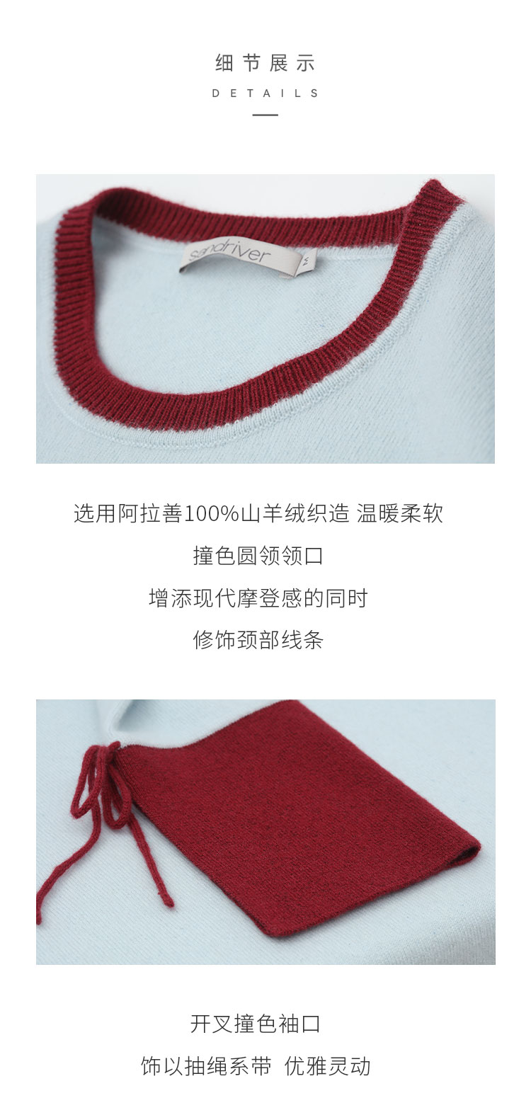 手工绣花圆领撞色羊绒女套衫 SJF93W141N