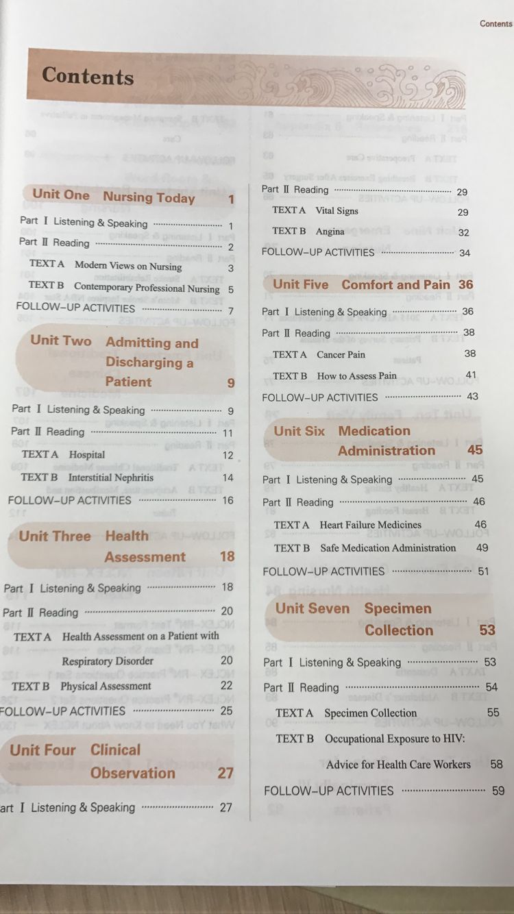本教材是基于护理专业知识的英语教材,兼具两个学科的特点。编写目的是帮助学生了解真实的国外或涉外护理工作场景,学习到最新的护理学概念和常识,具备基本的文献阅读和学术论文写作能力,并了解国外注册护士考试的内容、难度及语言要求。在十二五版教材的基础上,本版教材重新整理了章节目录,删除了部分章节,并新增了更具时效性的内容。本版教材共十五章,每一章节增加了视听说(配视频或音频)部分;课文(尤其TEXT A部分)改变比较大,采用了与特定疾病关联的护理学专业内容;同时请上海外语教育出版社对课文进行录音;除此之外还增加了紧扣课文内容的习题,以及国际护士资格考试等内容。无论学生是否在今后是否有涉外工作的机会,这版教材都帮助他们基本掌握英语语境下临床应用及科研读写的能力,了解最新学科理念和动态,把握护理人才未来的发展方向。