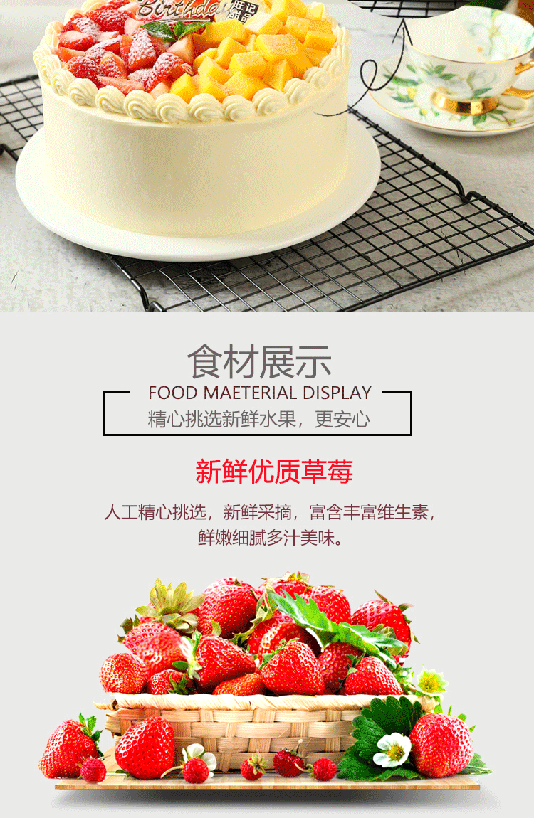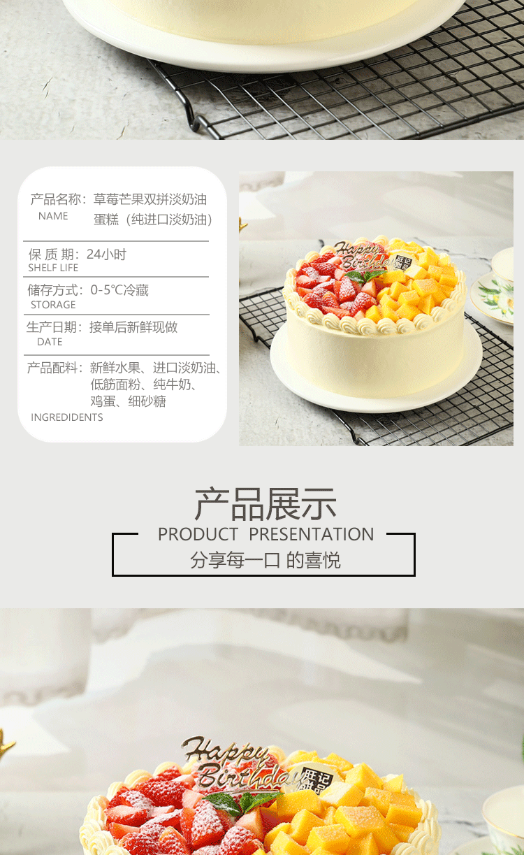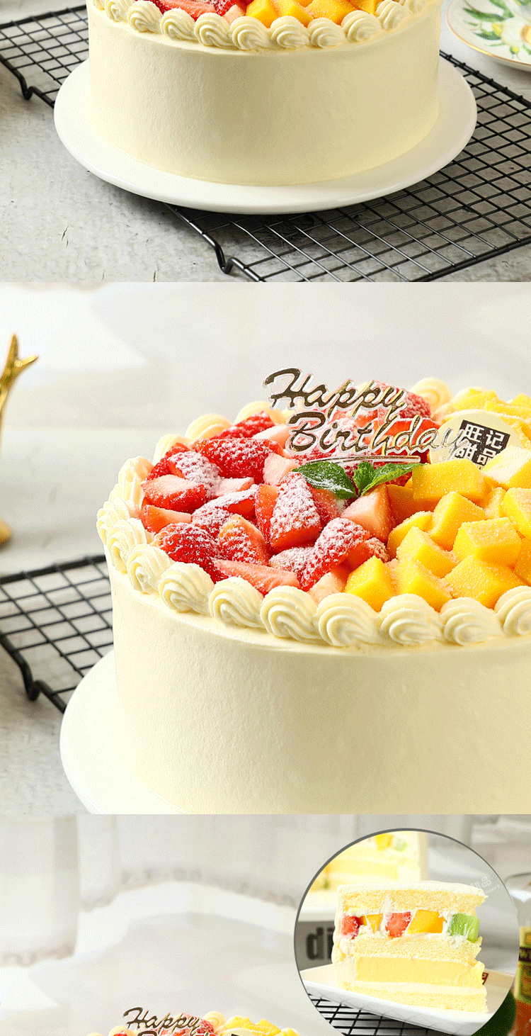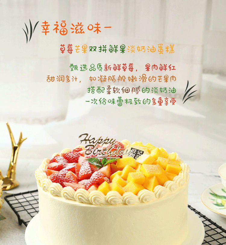 幸福滋味-草莓芒果双拼,纯进口动物奶油蛋糕【惠州】