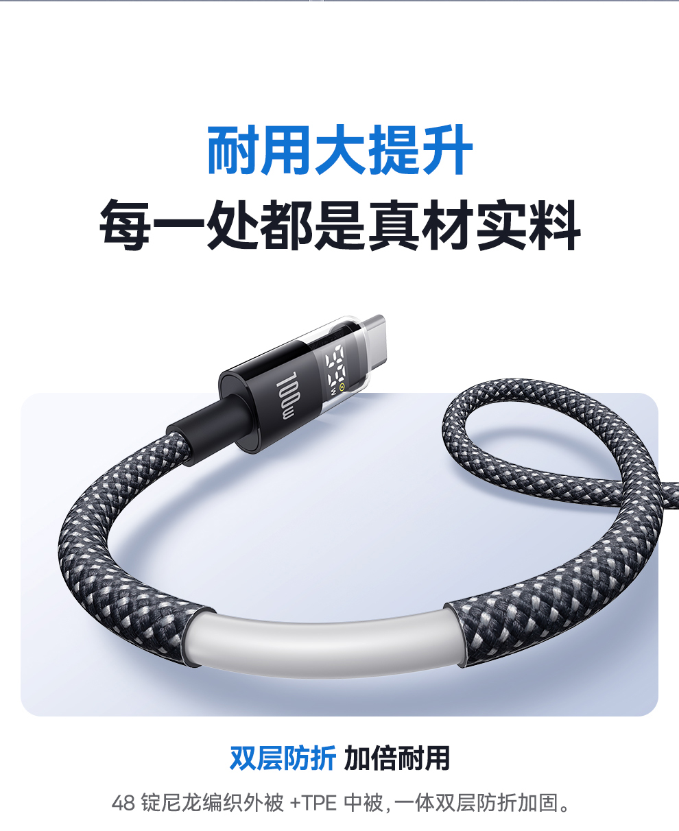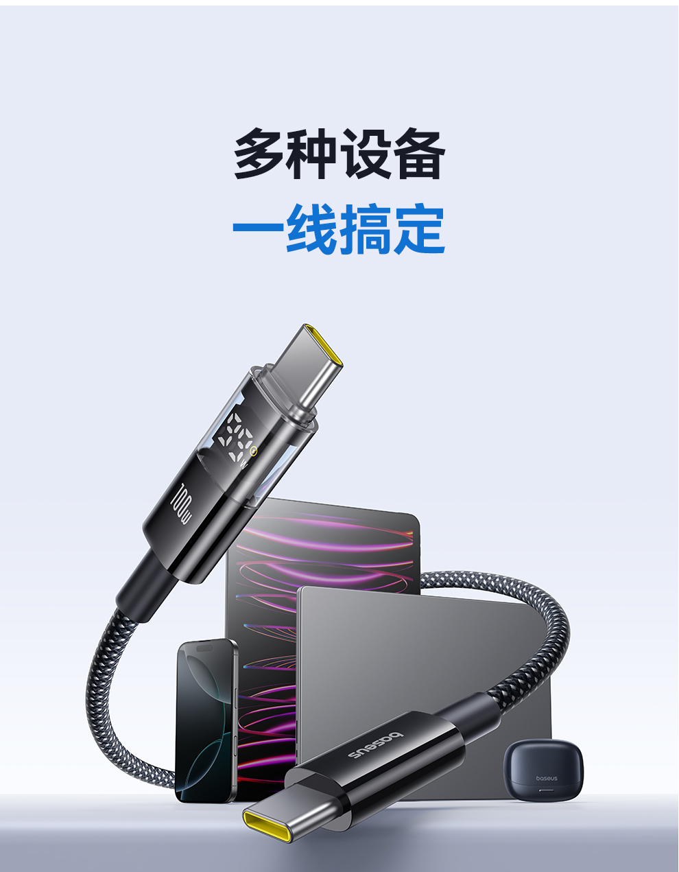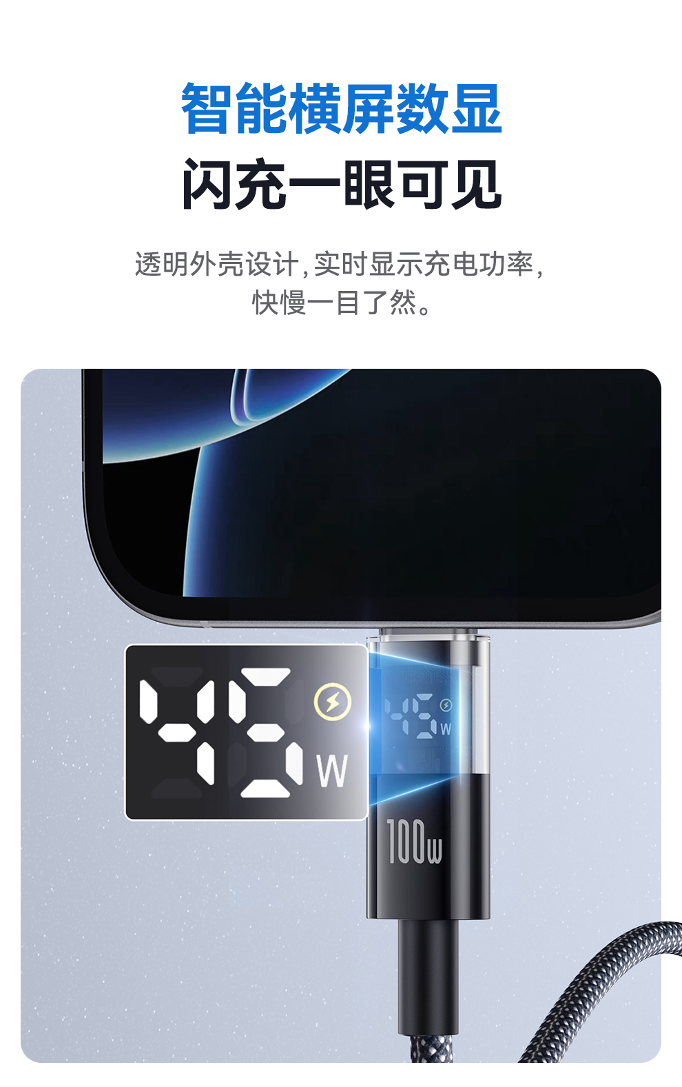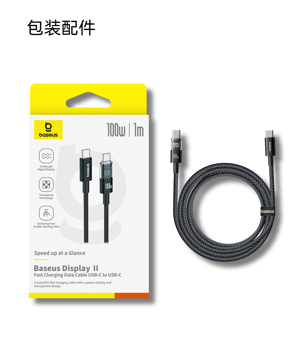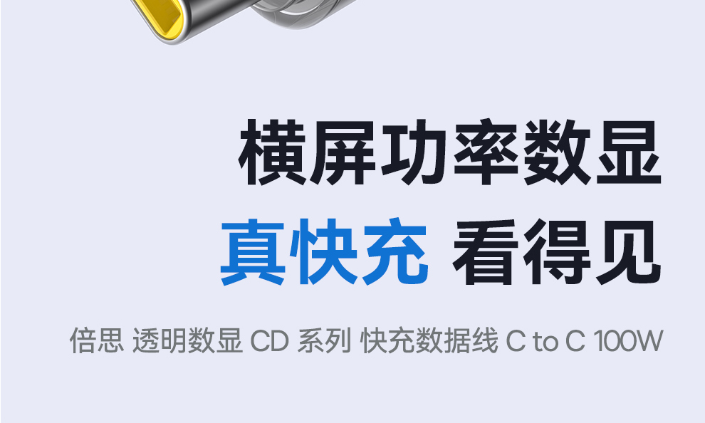 倍思 透明数显CD系列 快充数据线 Type-C to Type-C 100W 支持苹果15/16