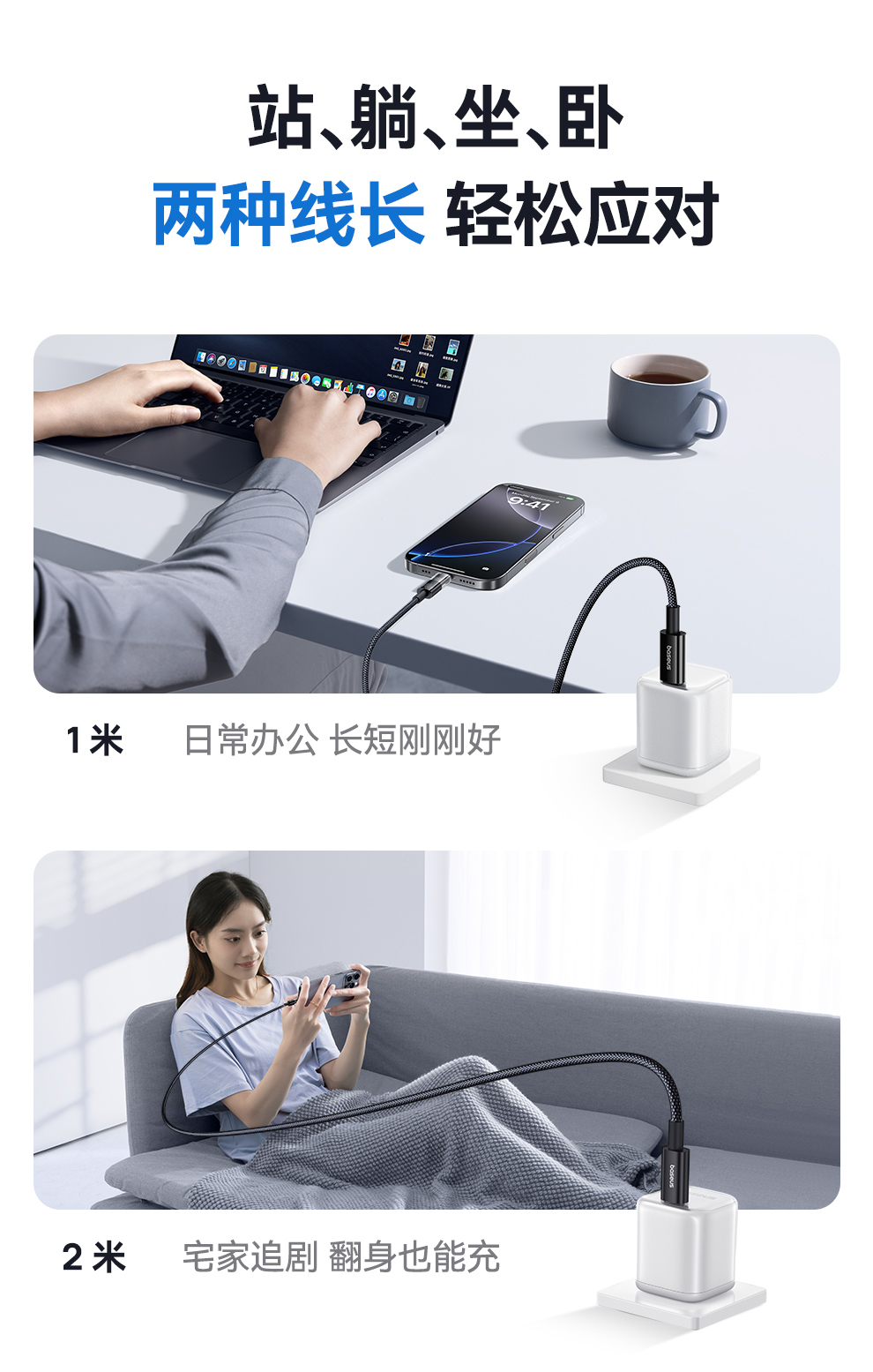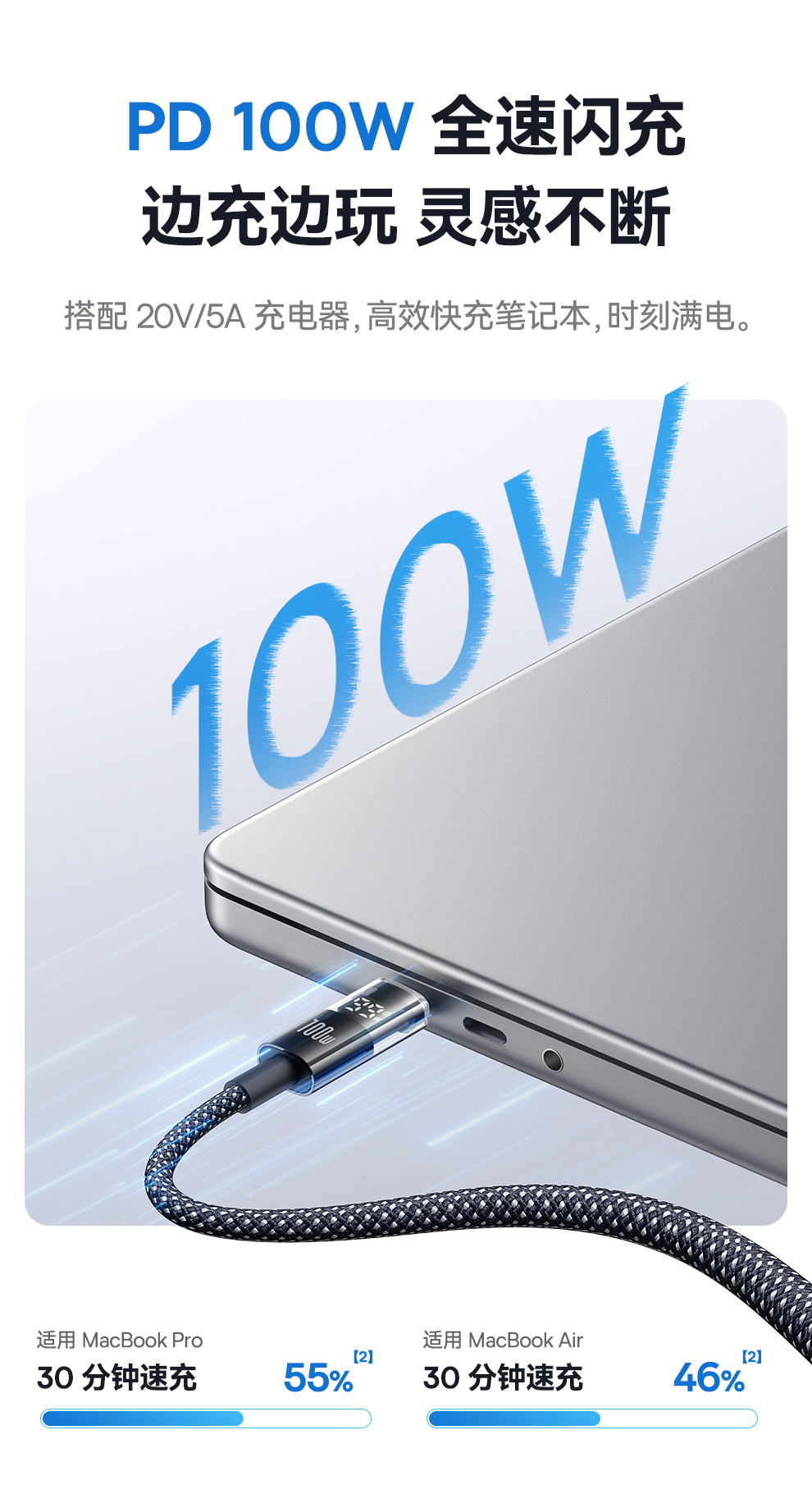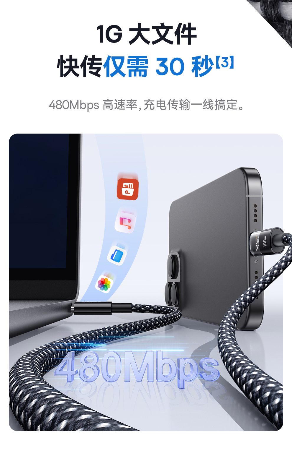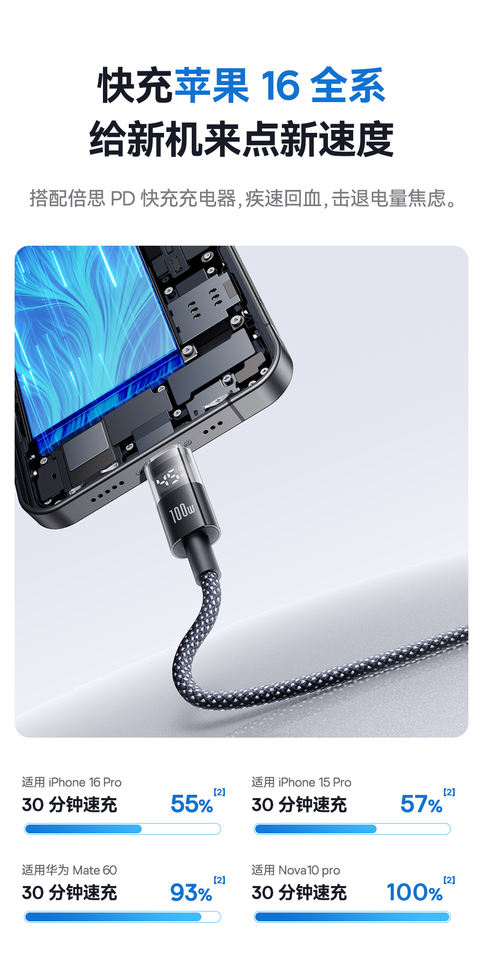 倍思 透明数显CD系列 快充数据线 Type-C to Type-C 100W 支持苹果15/16