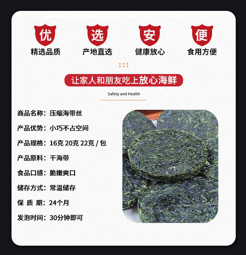 霞浦压缩海带丝圆饼泡发烘干海带片无沙免煮免洗非裙带菜干货批发