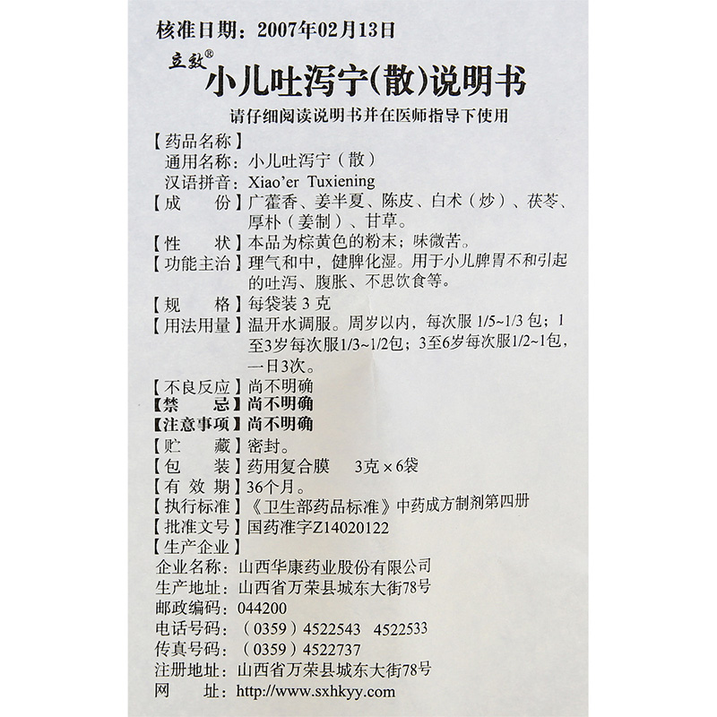 立效 小儿吐泻宁(散) 3g*6袋/盒 理气和中 健脾化湿 小儿脾胃不和 吐泻 腹胀 不思饮食