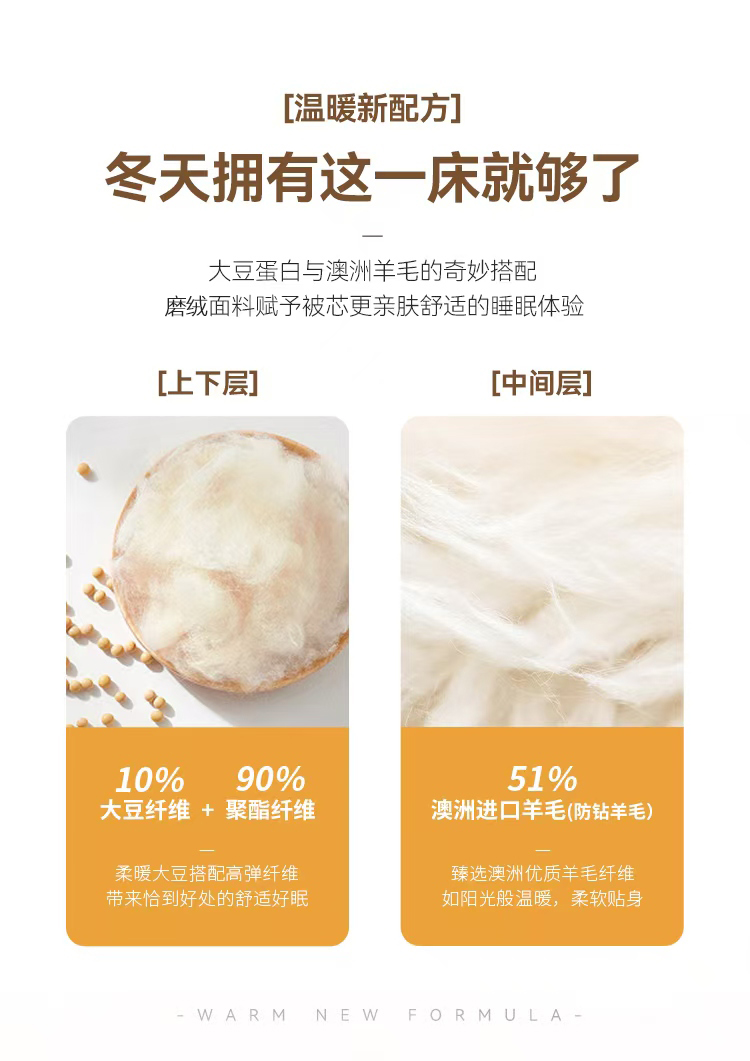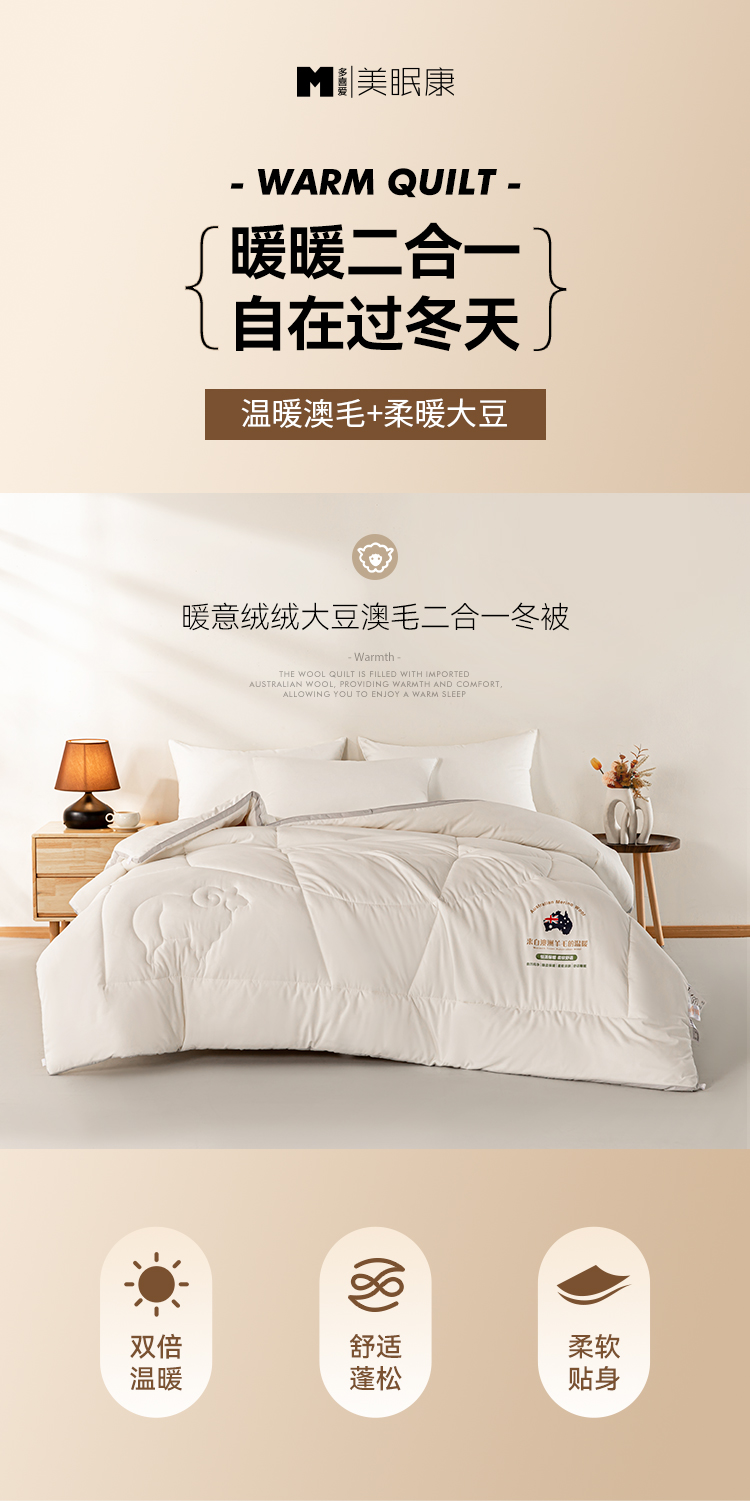 多喜爱 美眠康 暖意绒绒大豆澳毛二合一冬被DZ