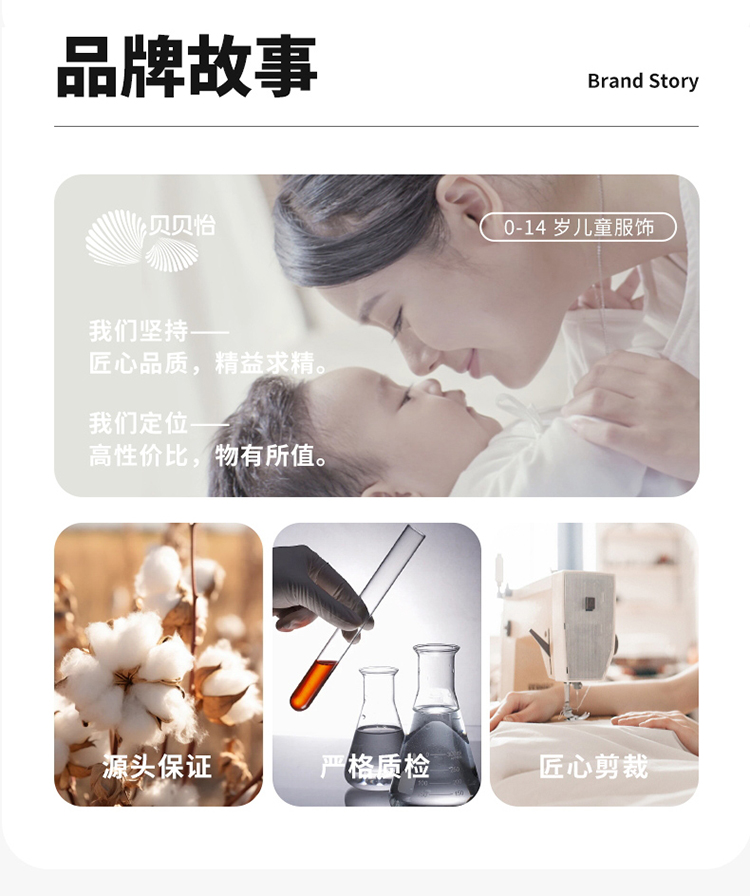 - 贝贝怡专注0-6岁婴幼儿服饰,坚持安全、柔软、舒适的产品理念,为千万中国家庭提供超高品质、安全可靠的婴幼儿服饰产品,妈妈放心,宝宝开心!