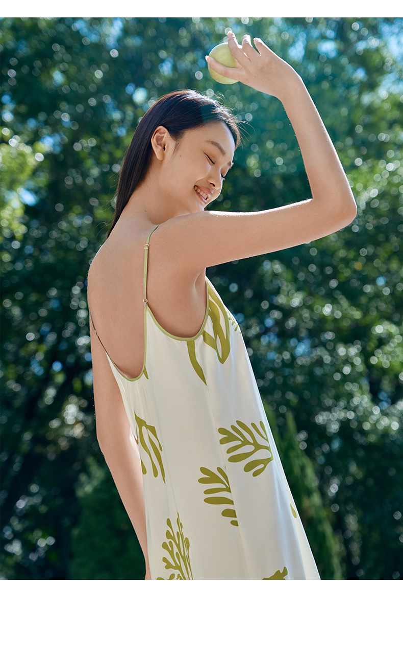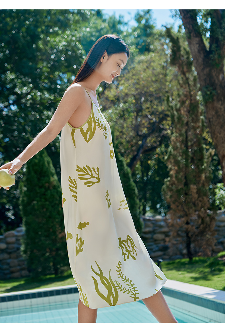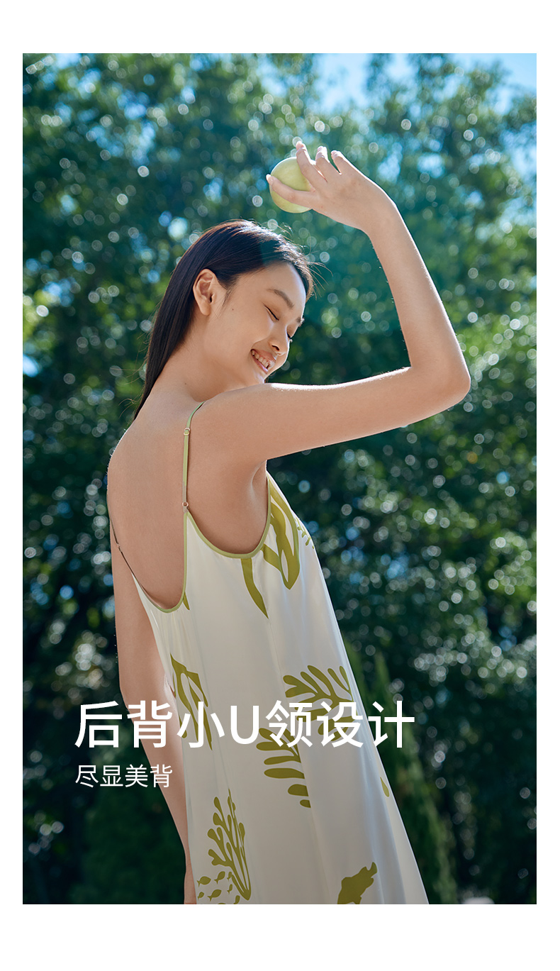 金三塔真丝睡裙女100%桑蚕丝凉感无袖美背印花吊带裙家居睡裙新品 YSFFB304