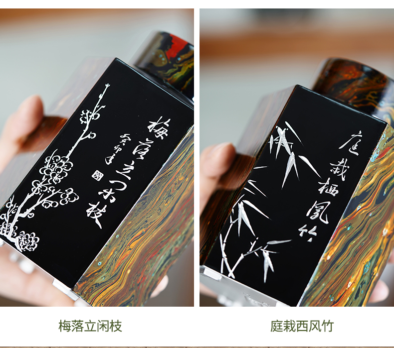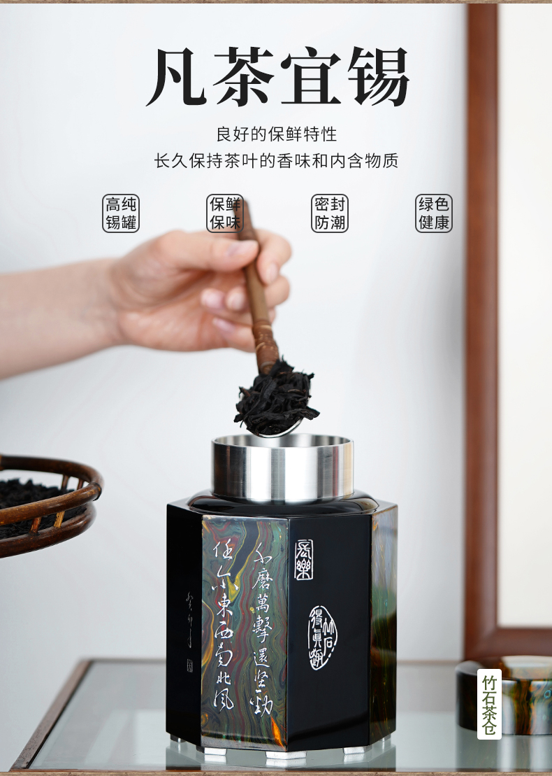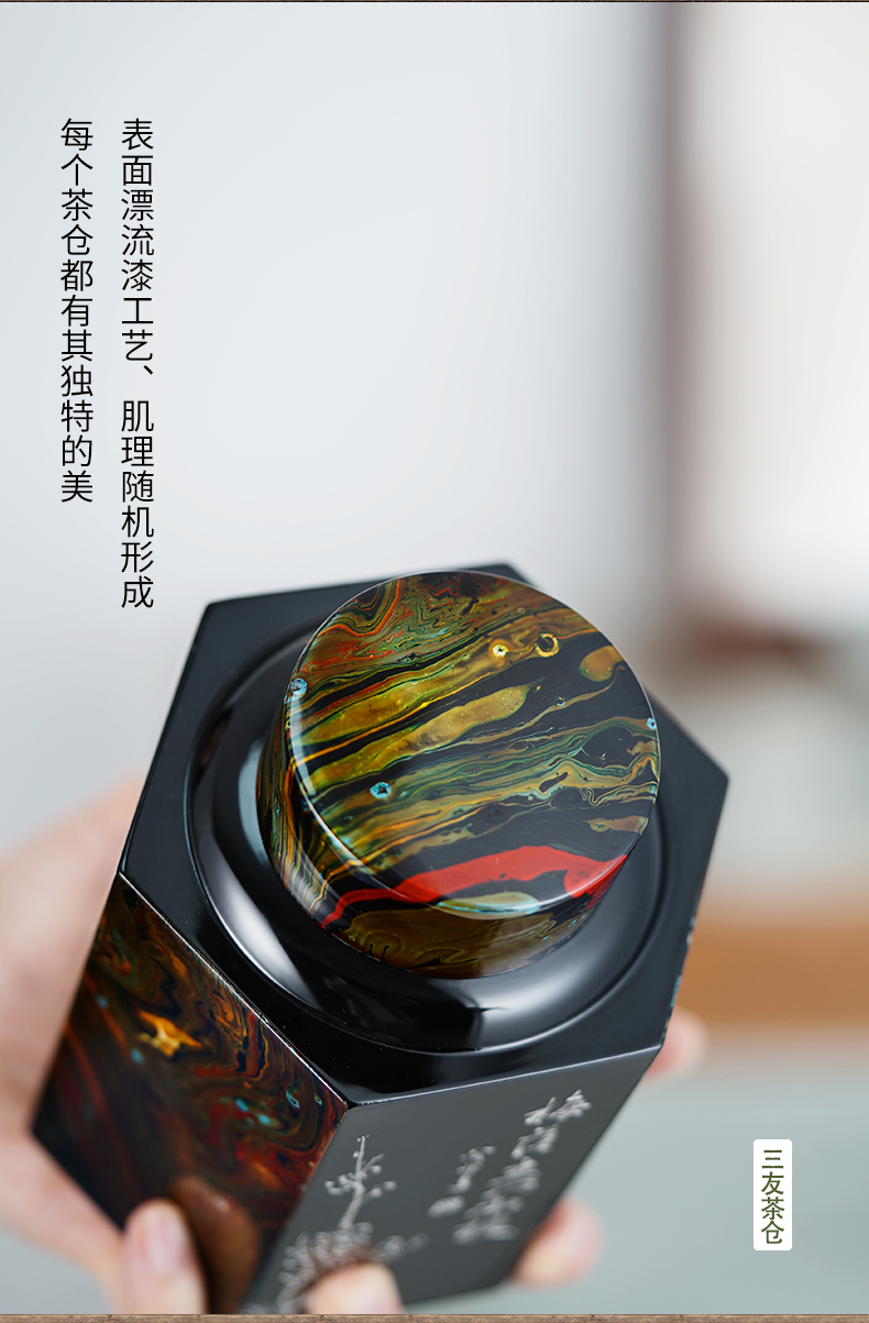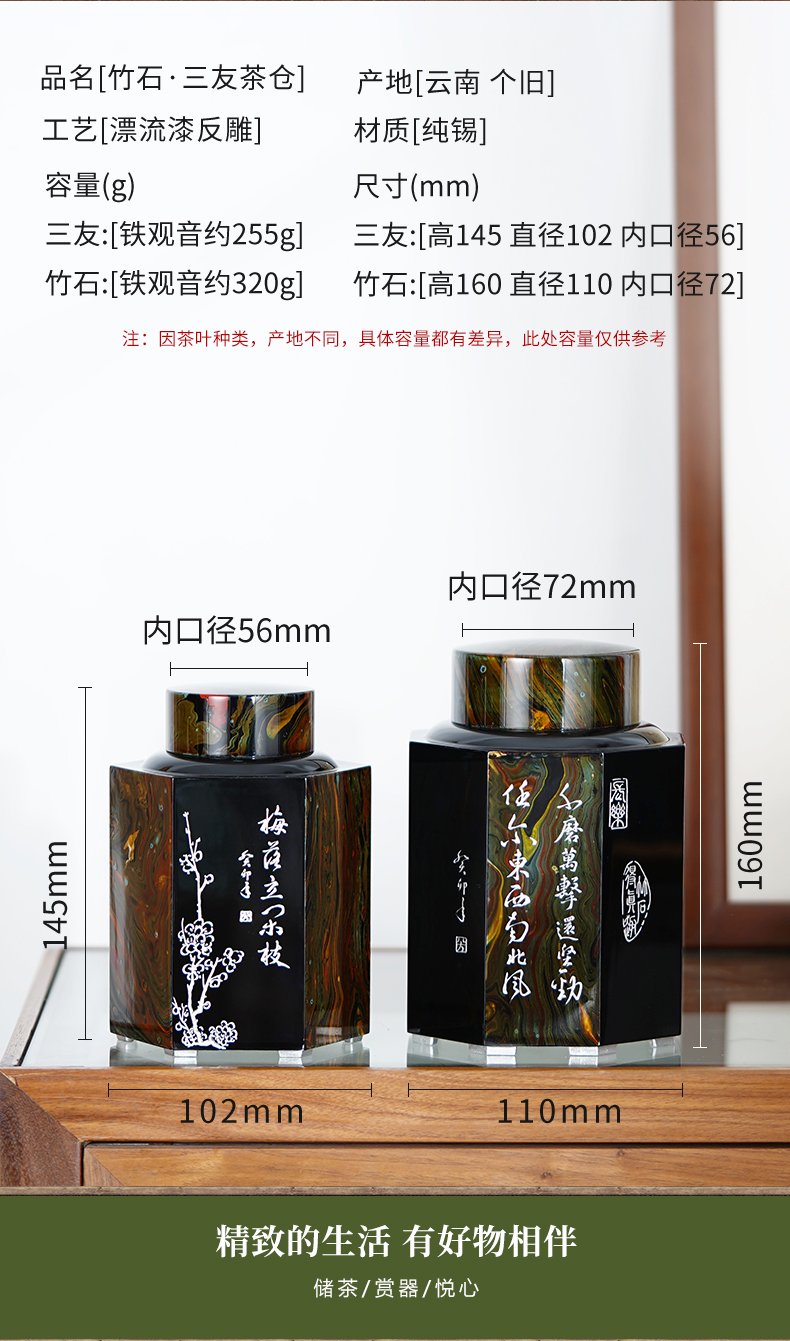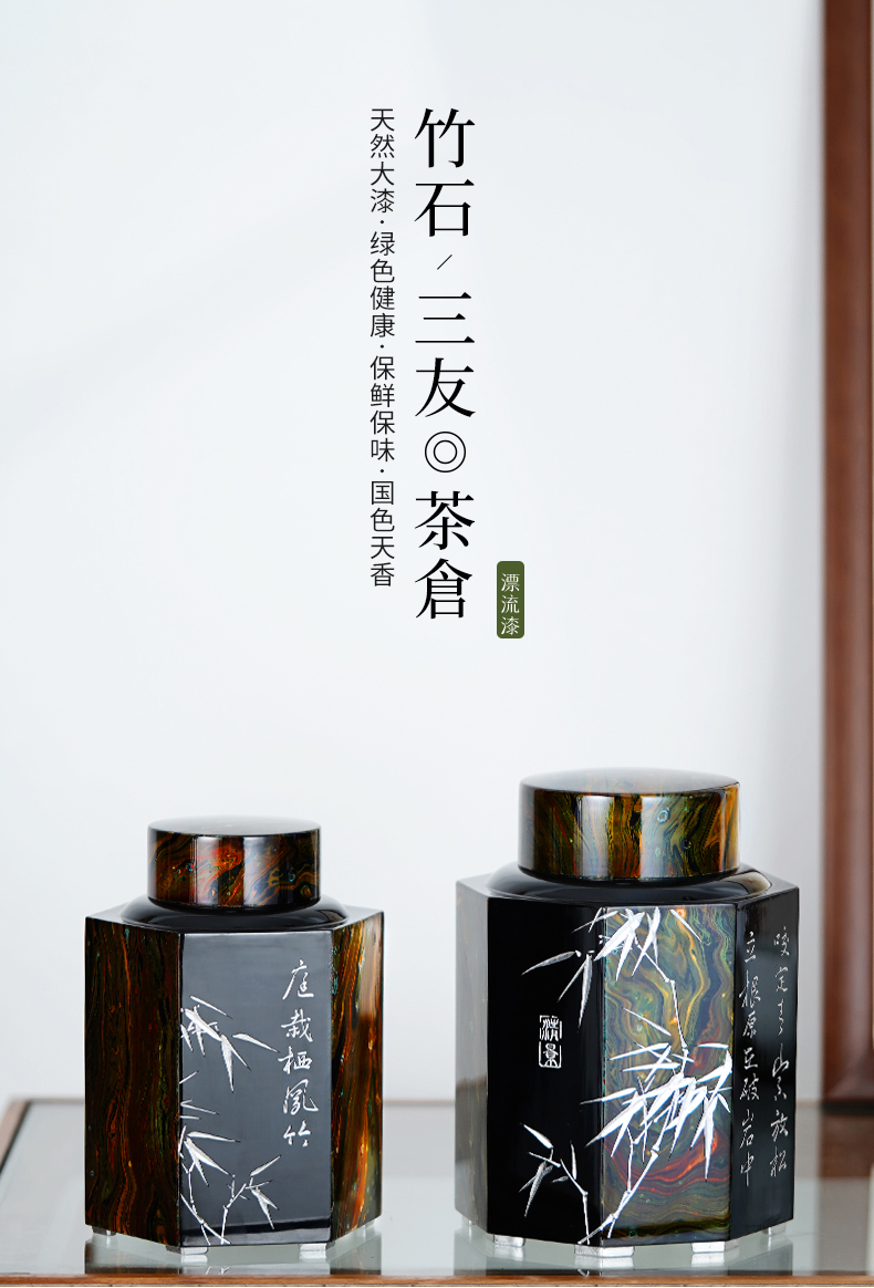 三友竹石茶仓(漂流漆反雕)-斑锡龙