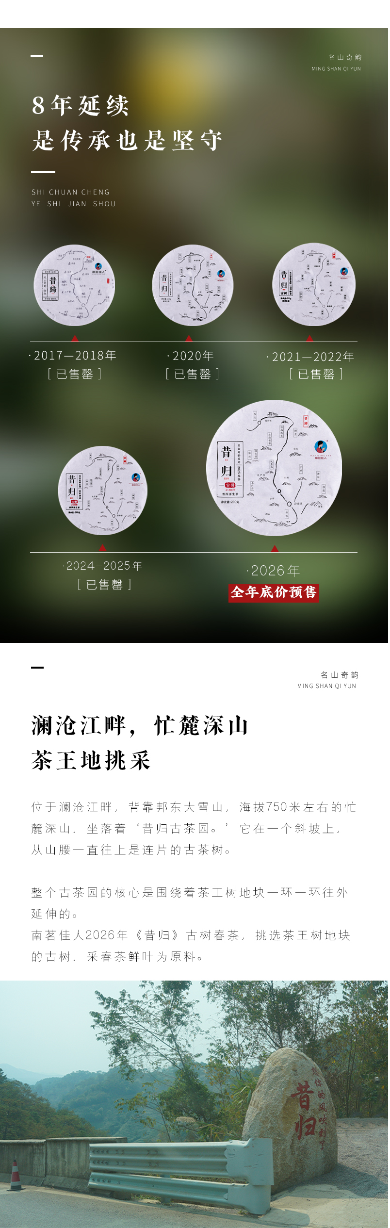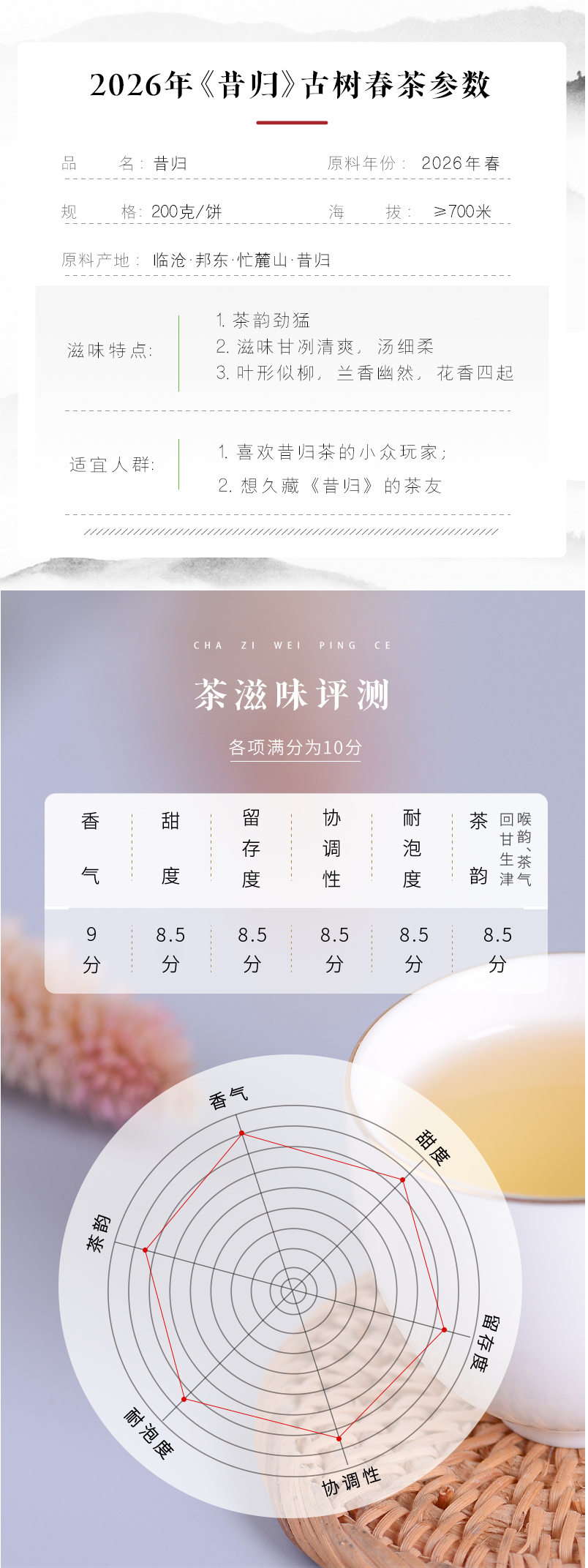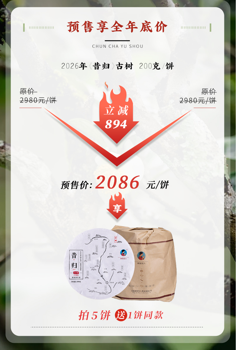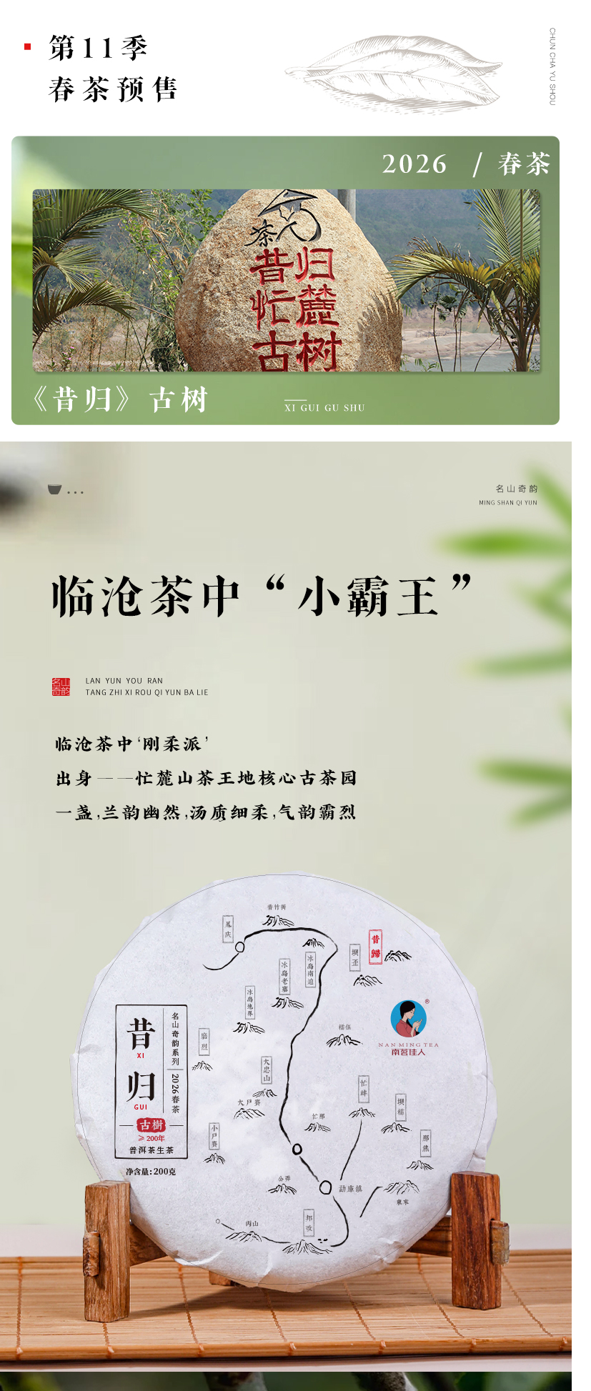 【预售7折,买5送1】2026《昔归》古树春茶 生茶 200克*1饼