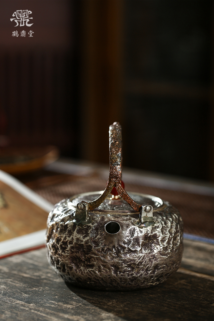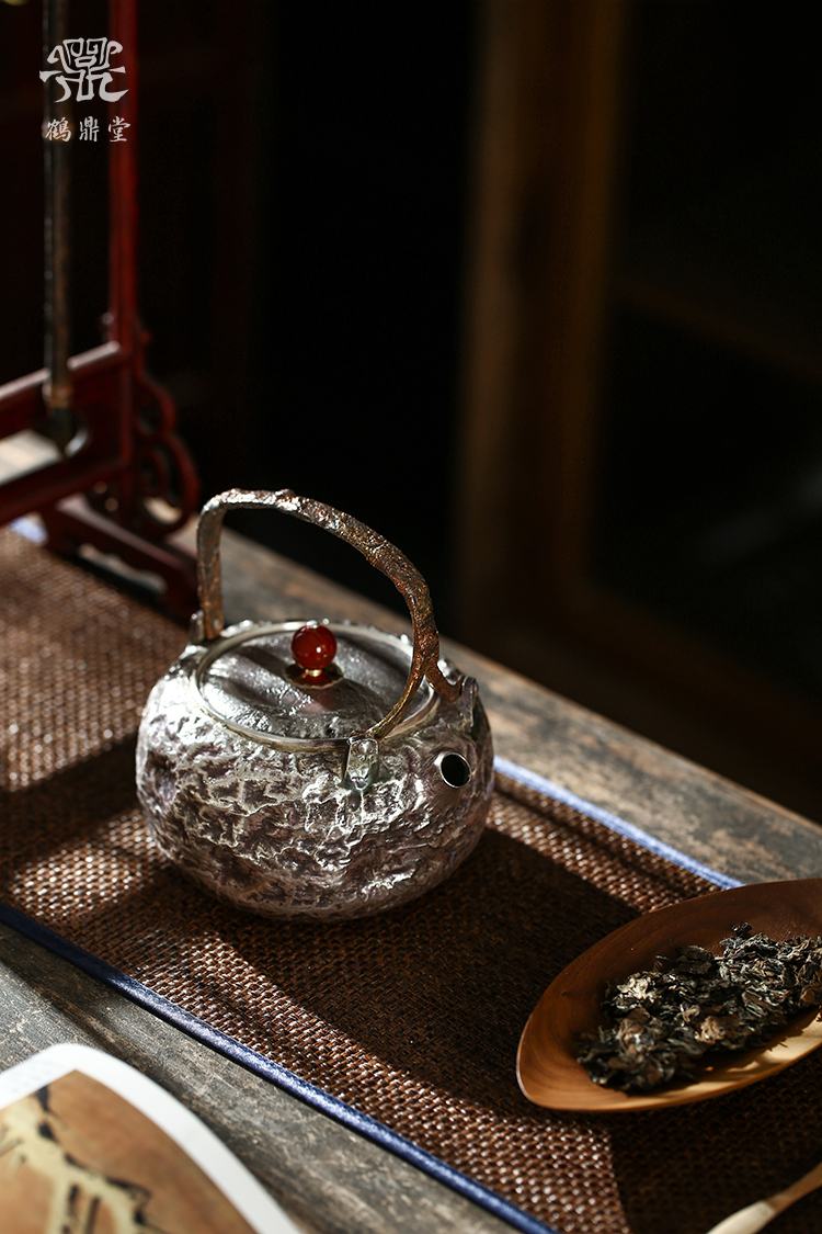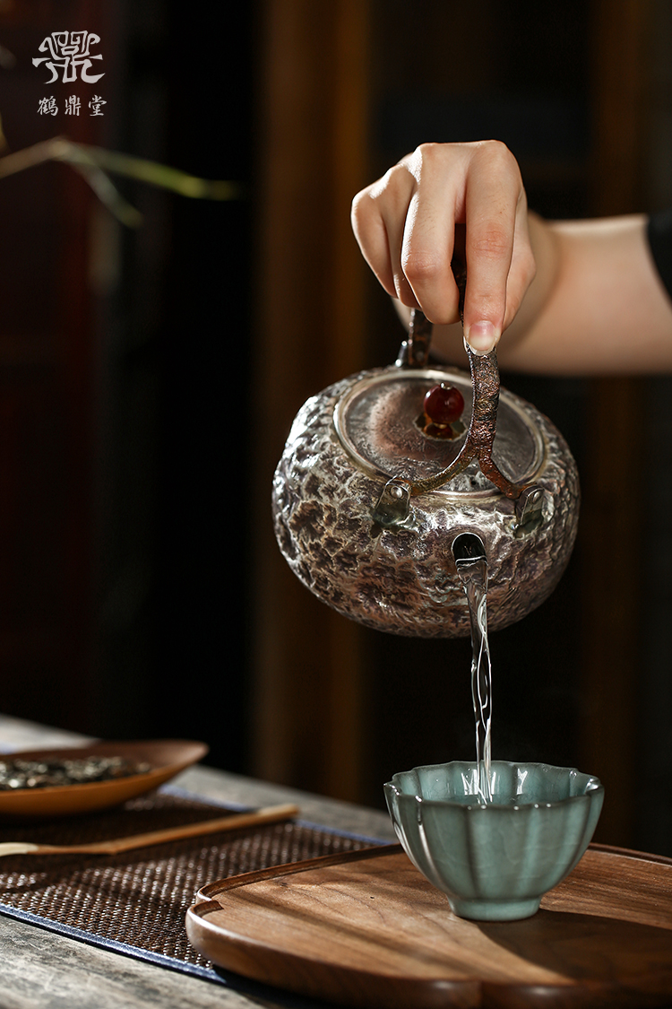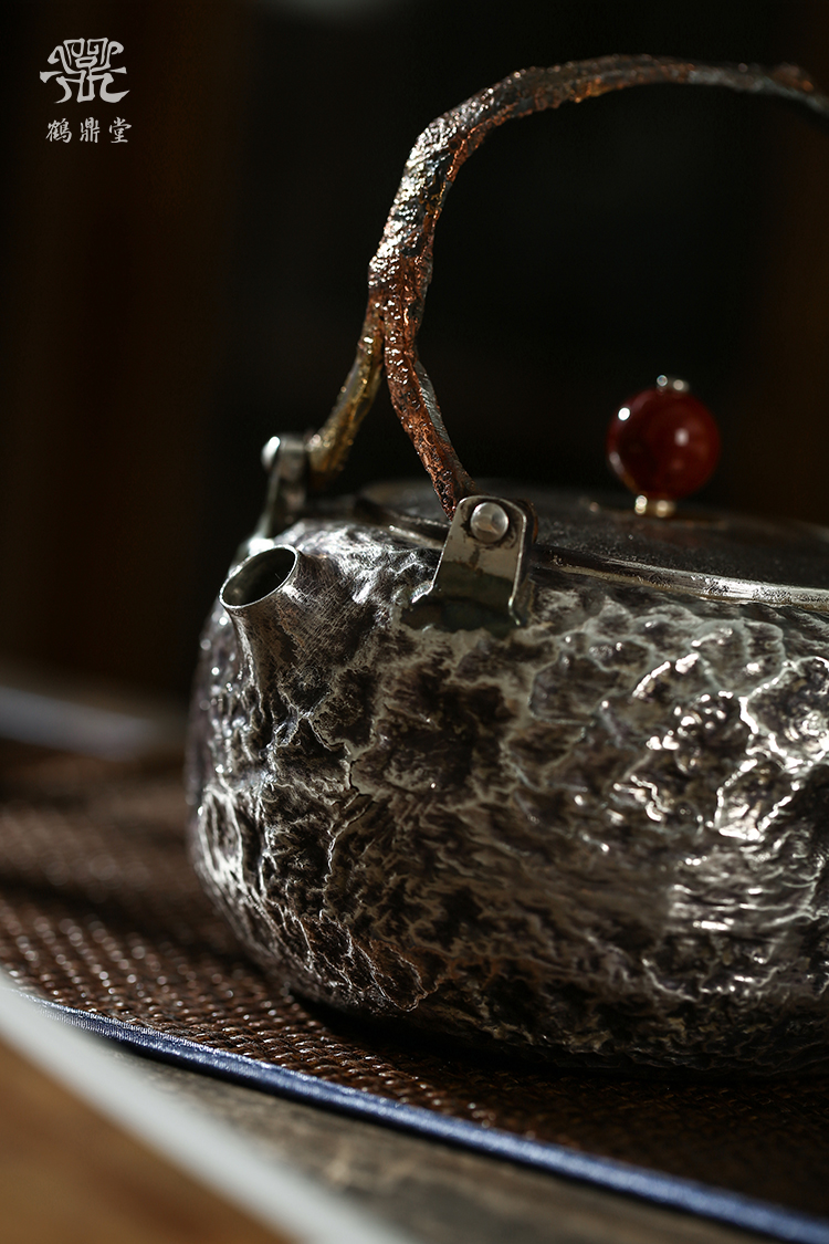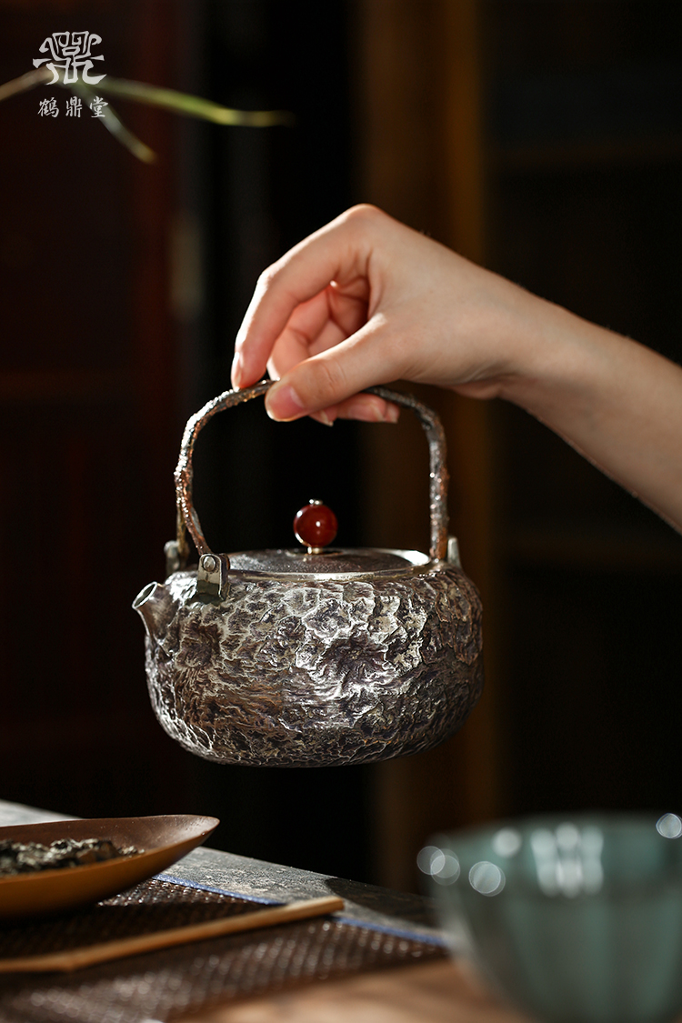 鹤鼎堂银壶于鹤系列望之汤沸搥岩纹(银色)(缺货)