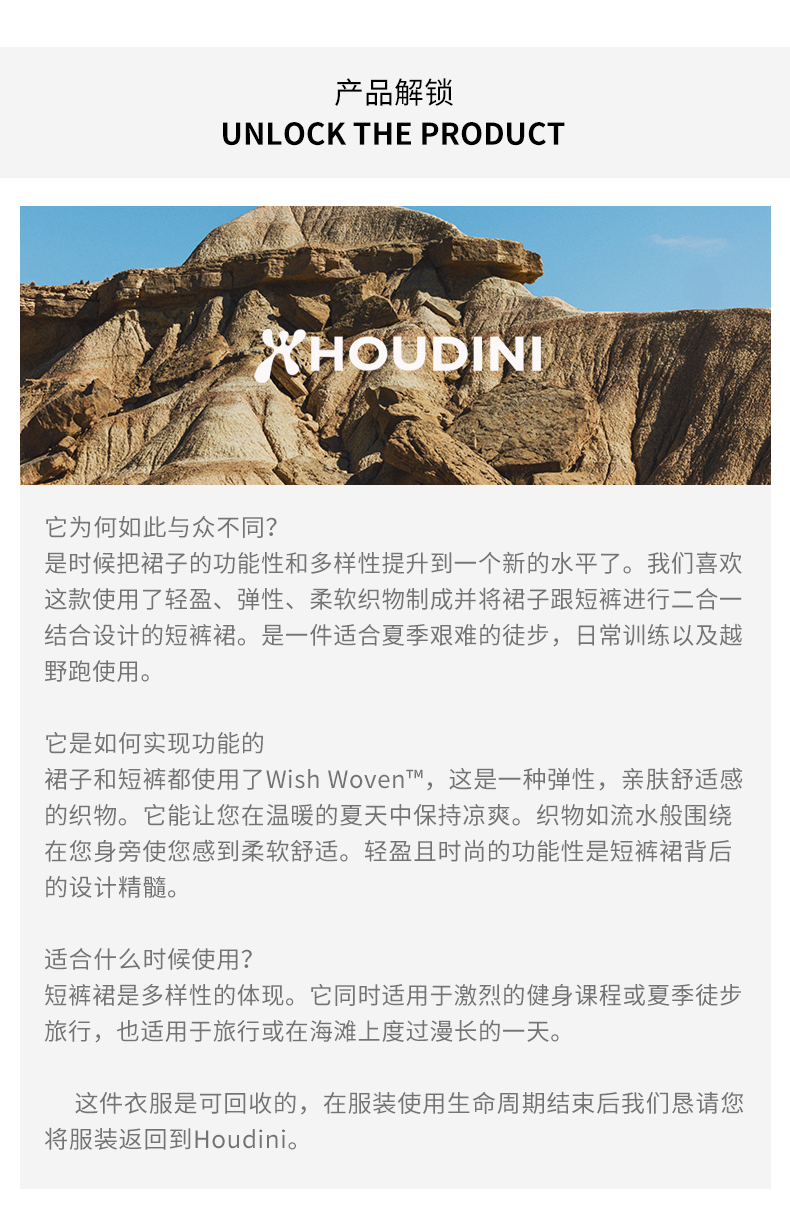HOUDINI胡丁尼 Skort 心愿 女户外轻薄快干弹性休闲运动裤裙短裙 860006