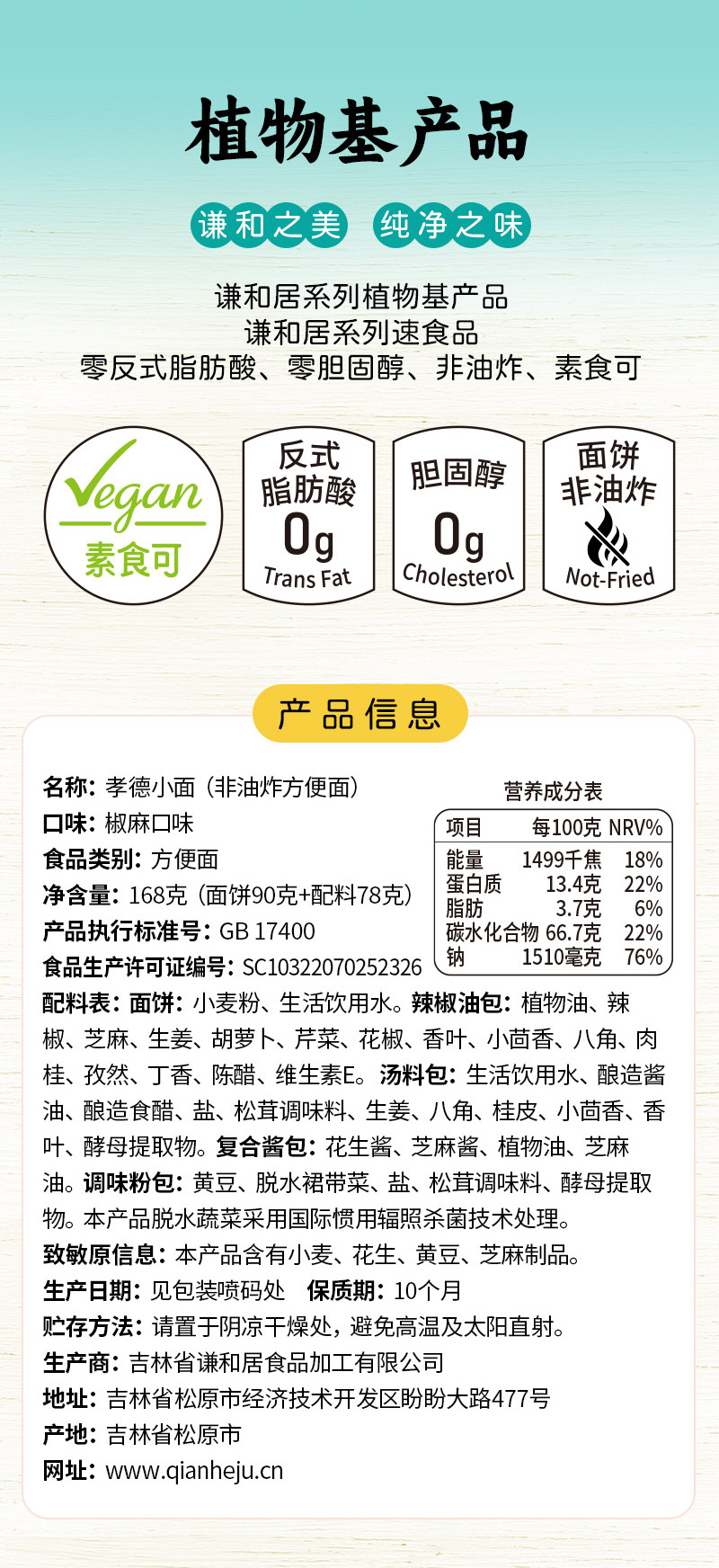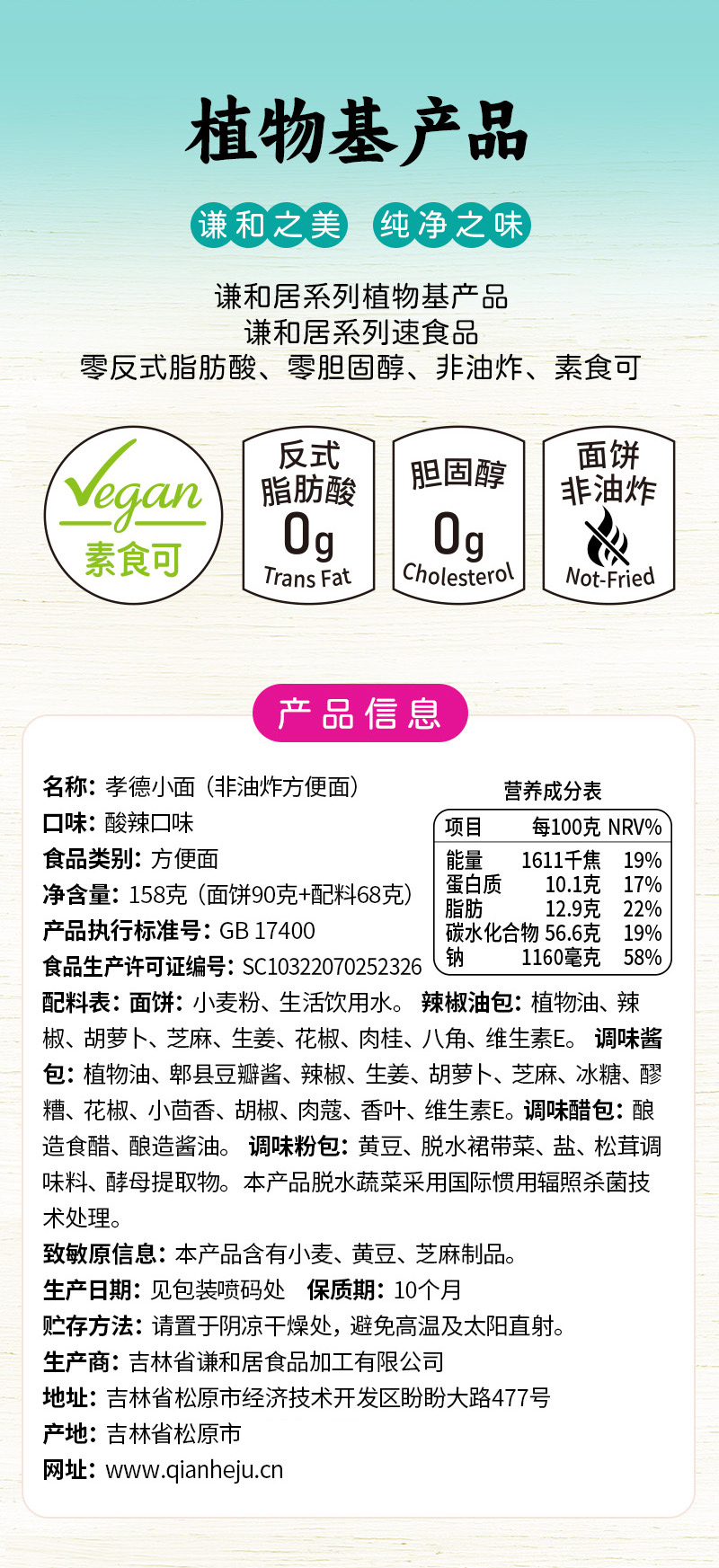 谦和居 植物基孝德小面 新鲜原料 精湛工艺 无添加 谦和之美 纯净之味