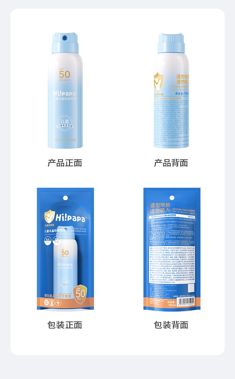 海龟爸爸 儿童专用水晶防晒喷雾100ml 一喷快速成膜高倍防晒 海边户外旅游必备