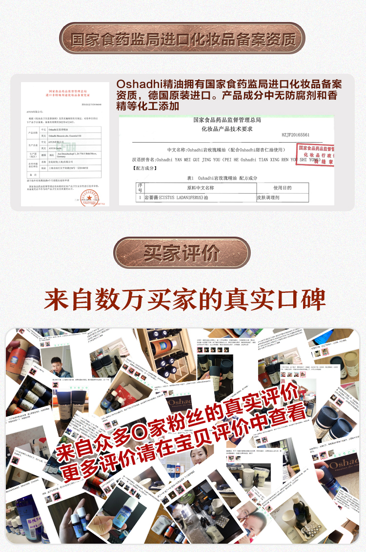 德国O家岩玫瑰精油 护肤精油 稀释做面部精华油 身体按摩油