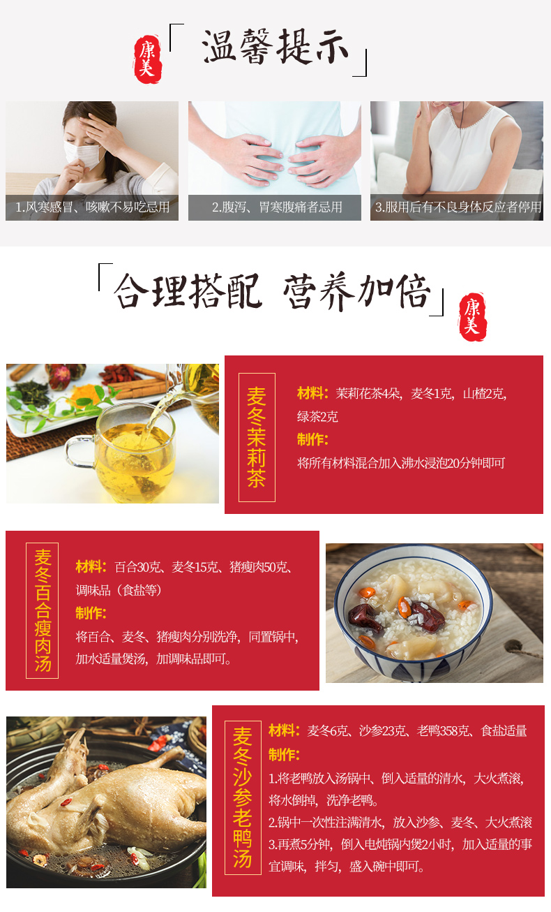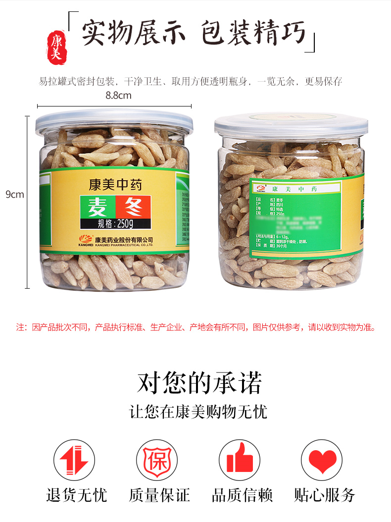 康美药业麦冬250g/瓶 罐装中药饮片 可搭配菊花黄芪党参枸杞等代茶饮煲汤