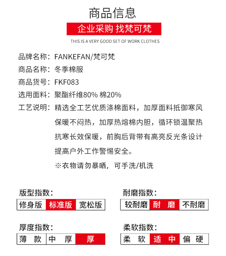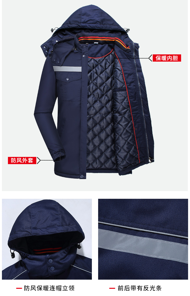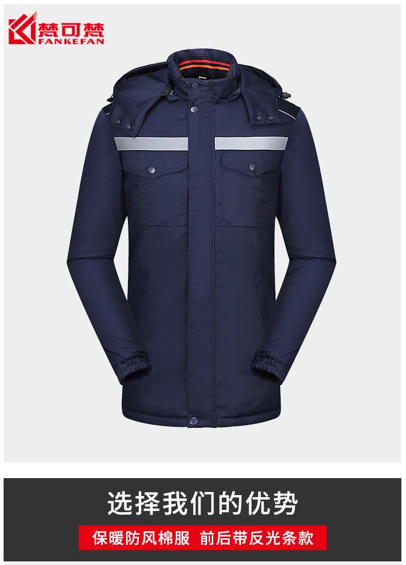 梵可梵工作服冬季冷库棉服棉衣劳保服加厚中长款反光条工服防寒服