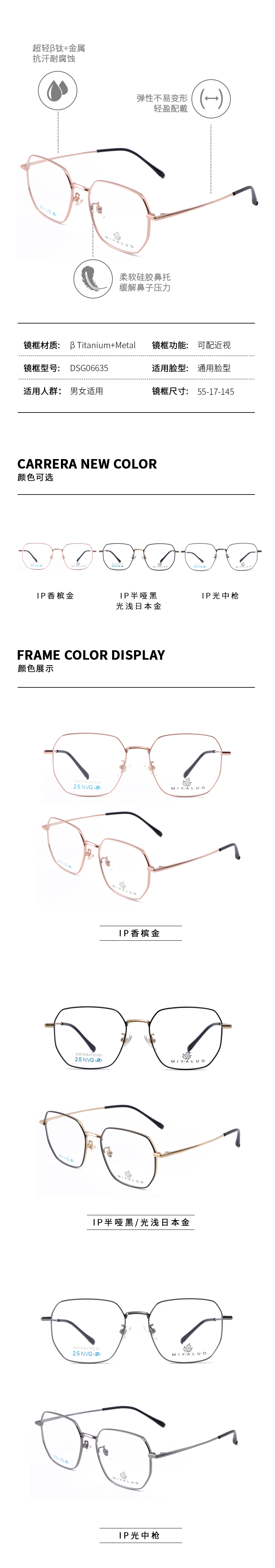 DSG06635 米亚罗MIYALUO 新款光学镜架 全钛合金钛架 DSG06635