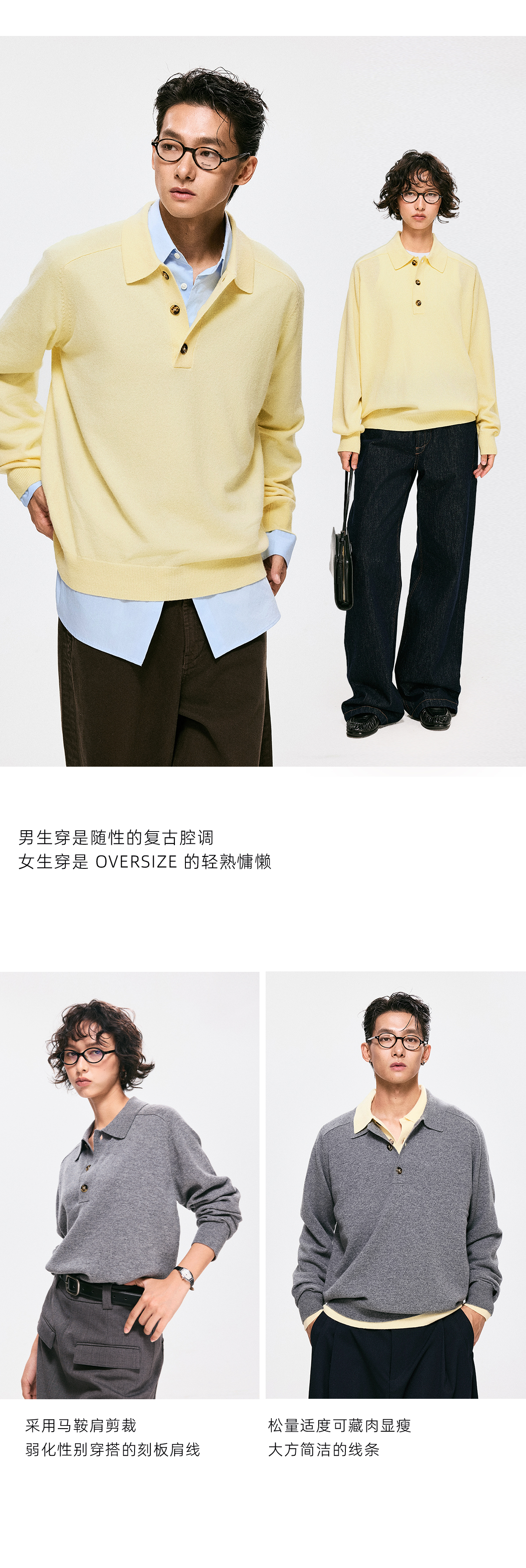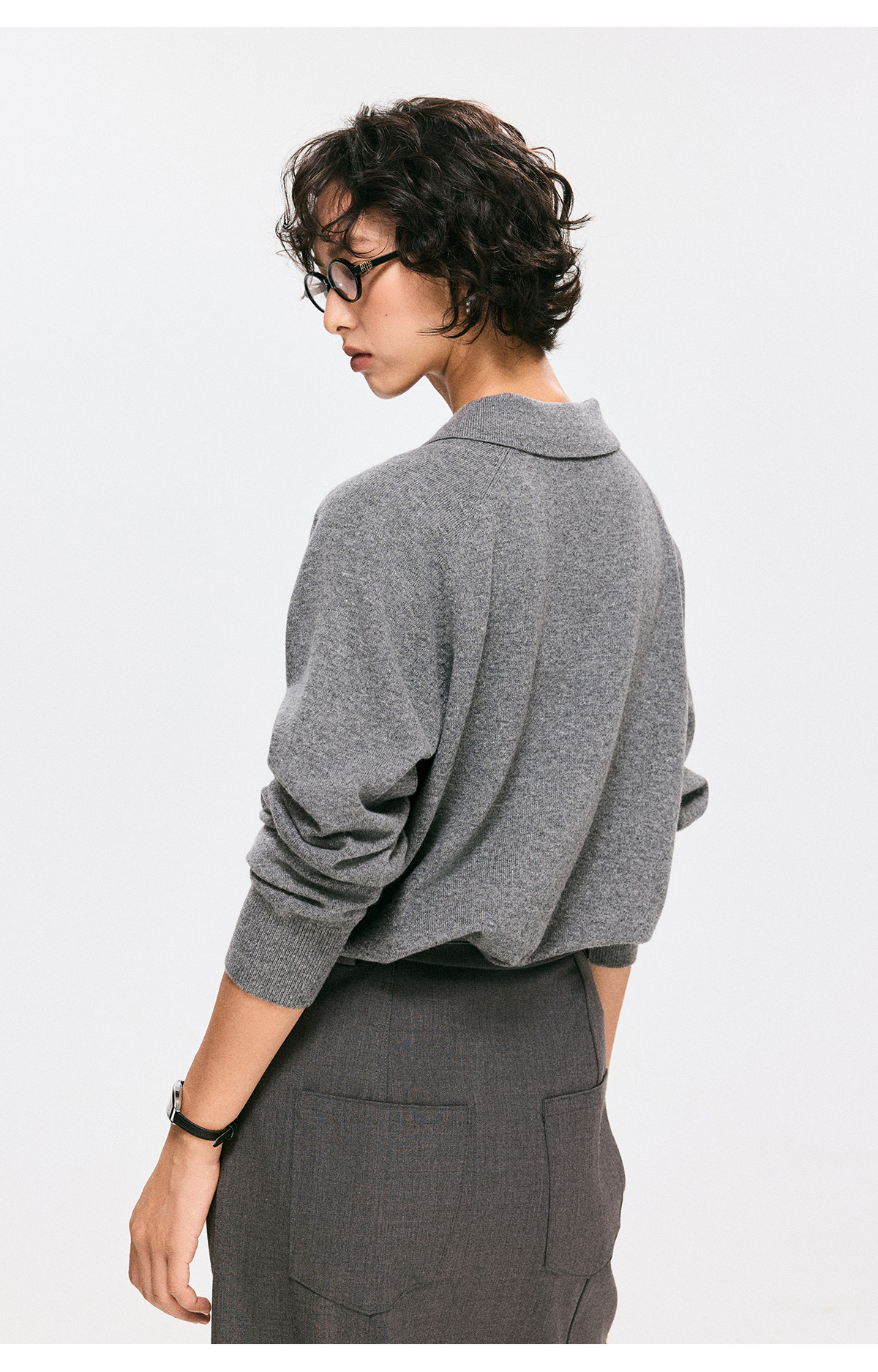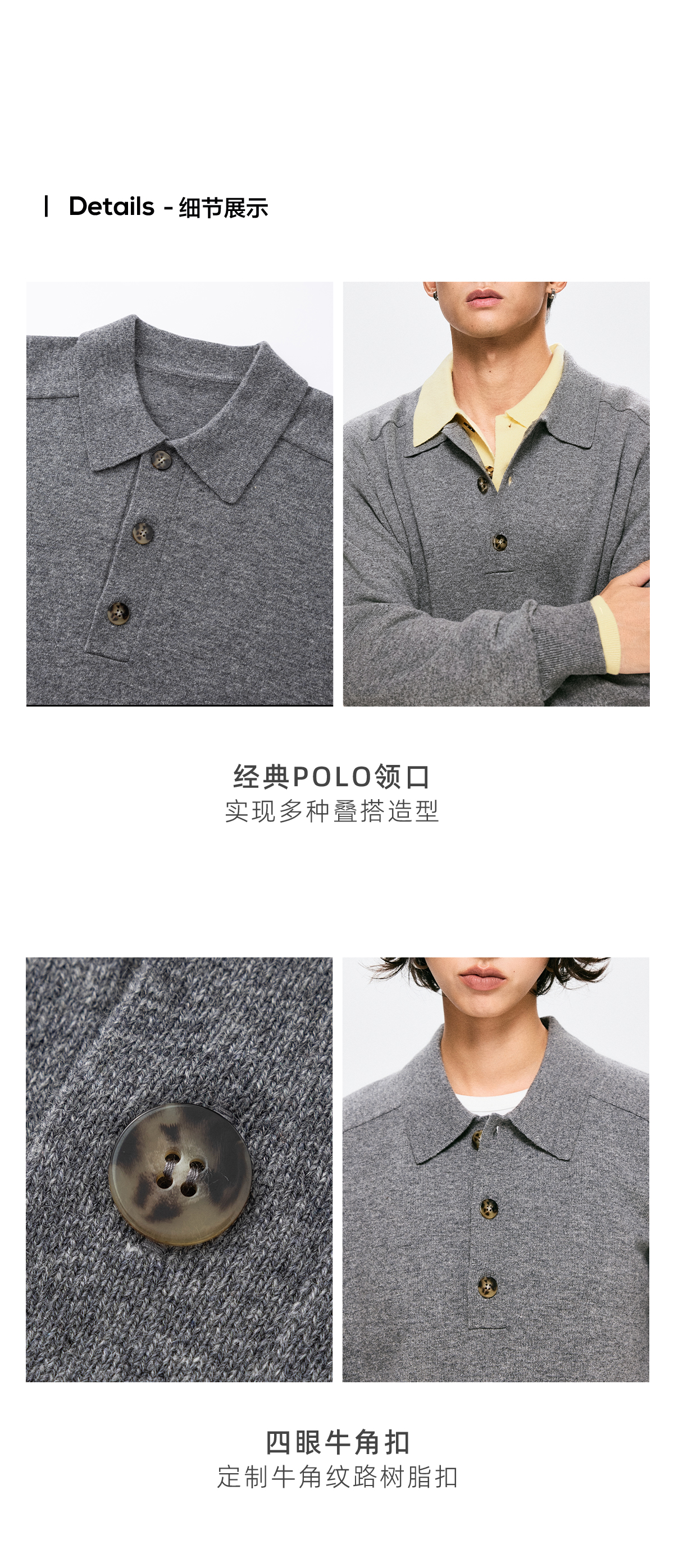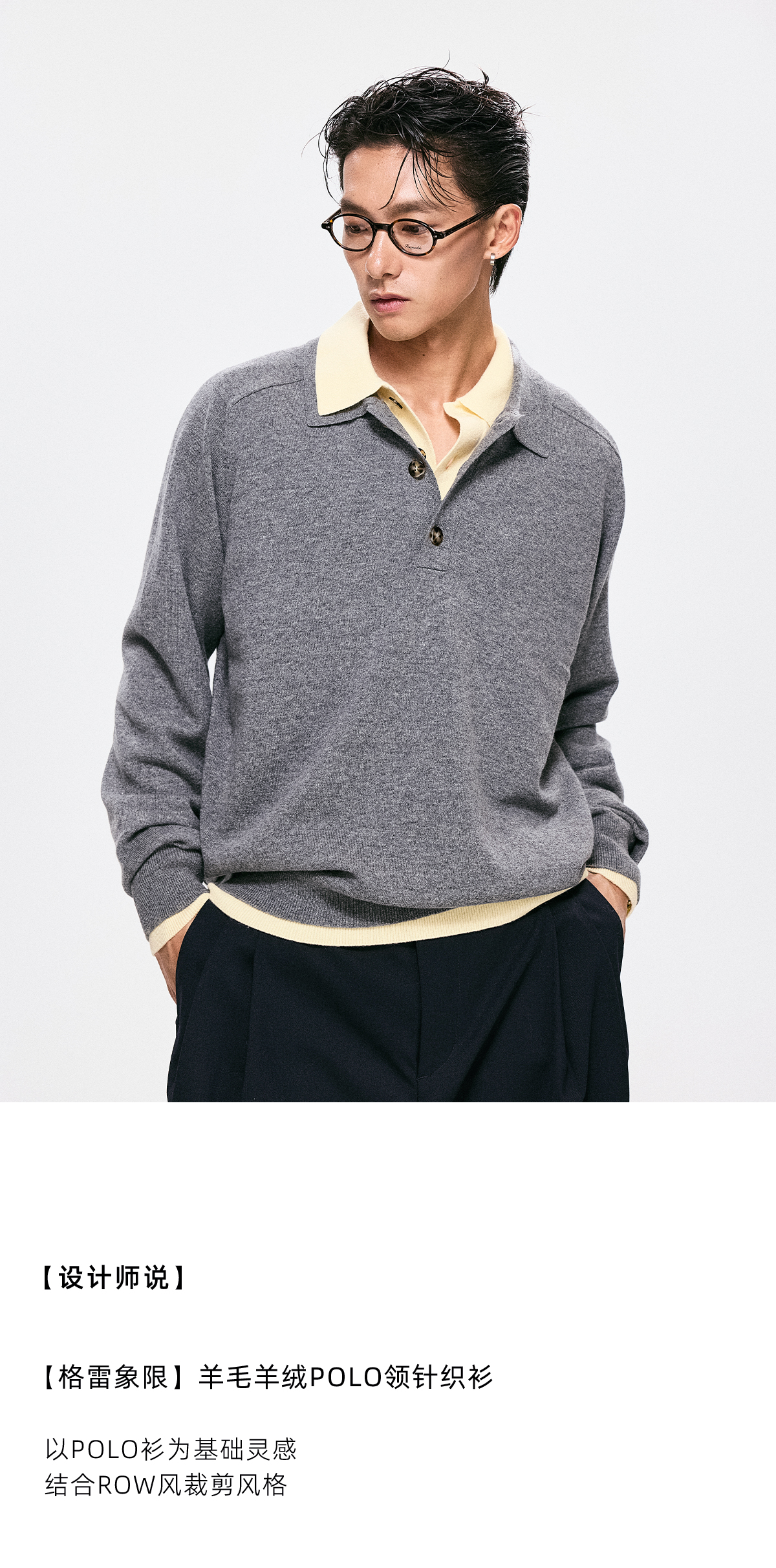 棉仓3671026010-【格雷象限】羊毛羊绒POLO领针织衫马鞍肩知识分子毛衣