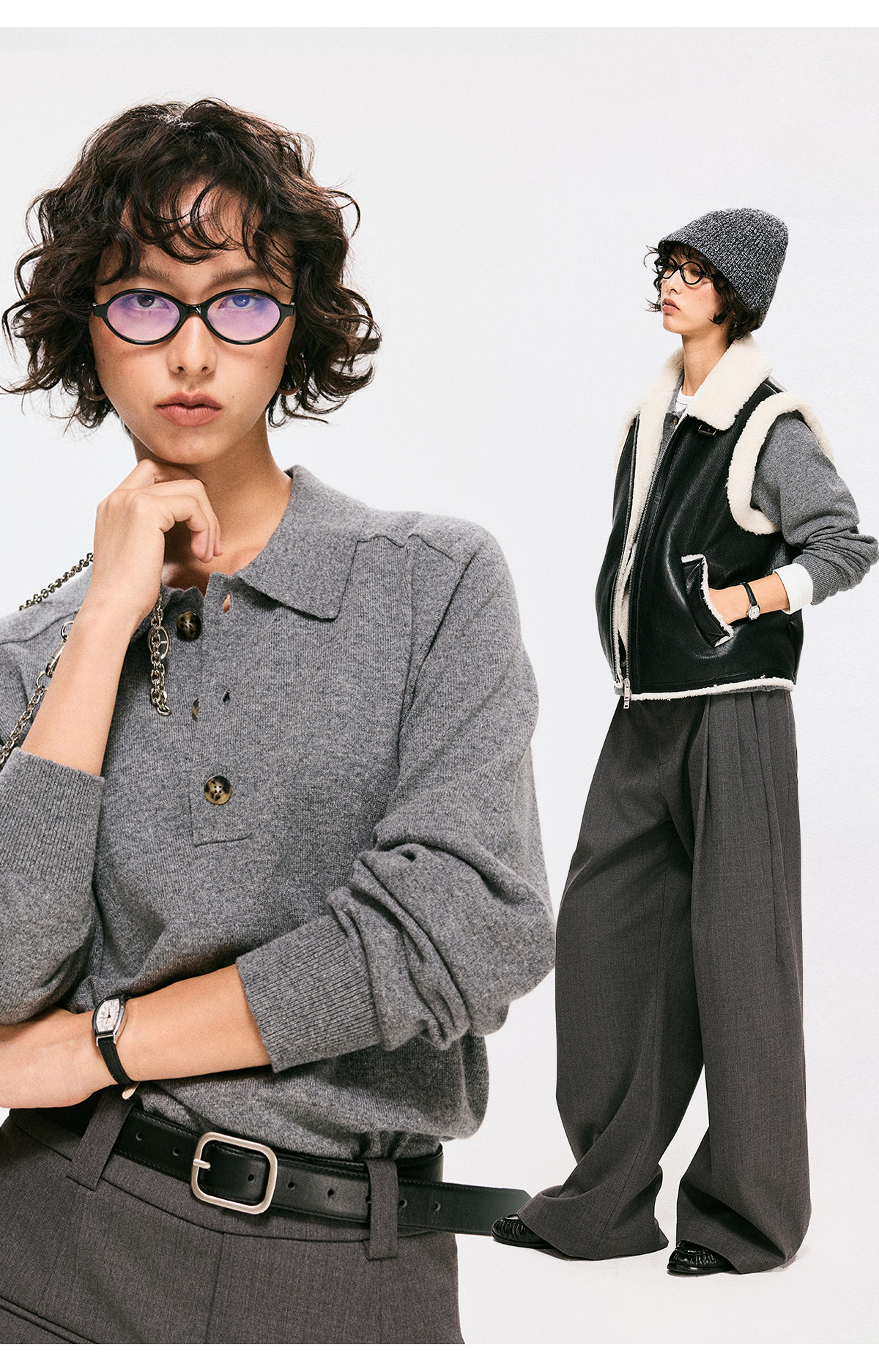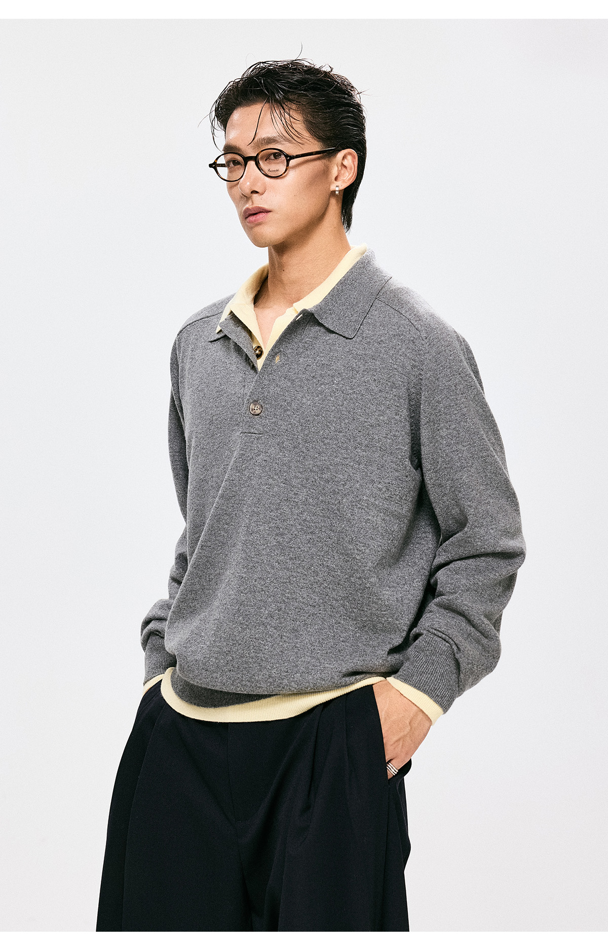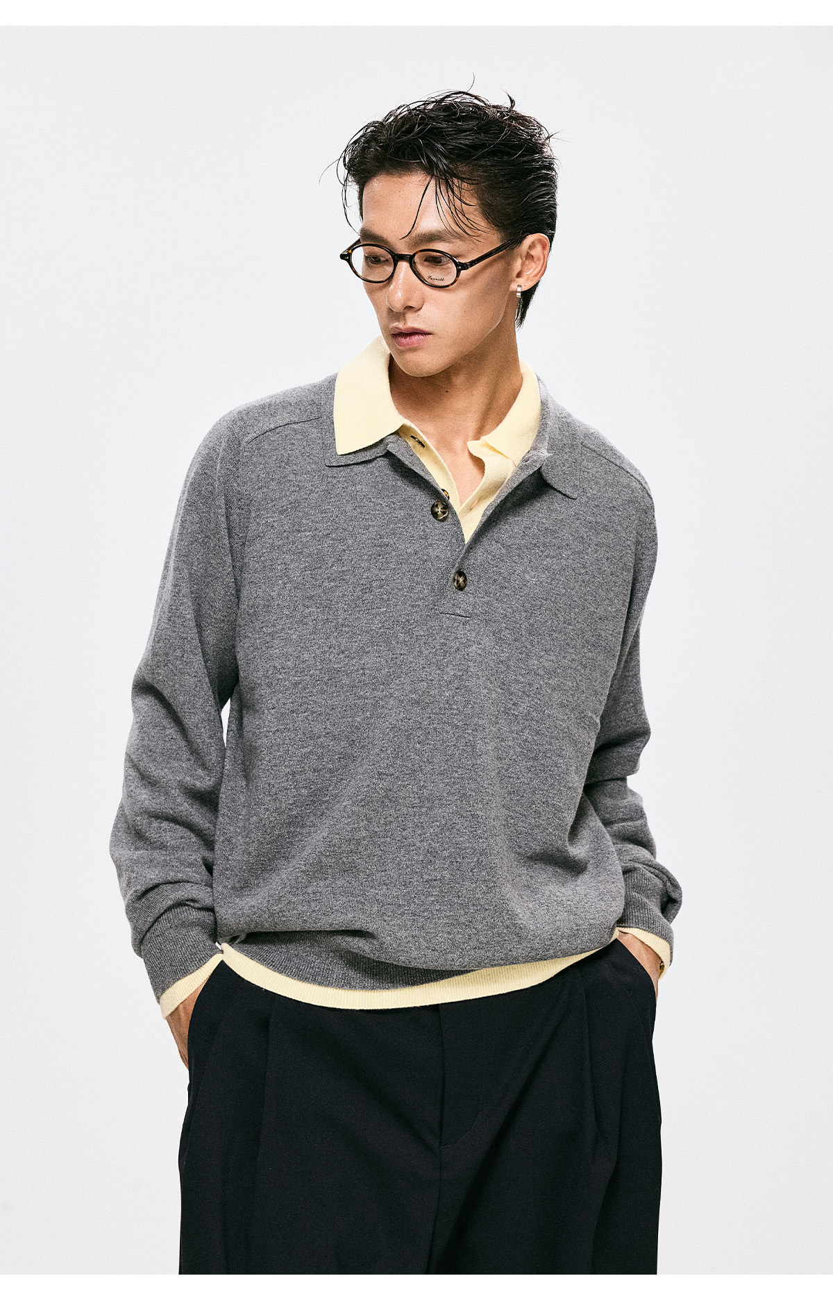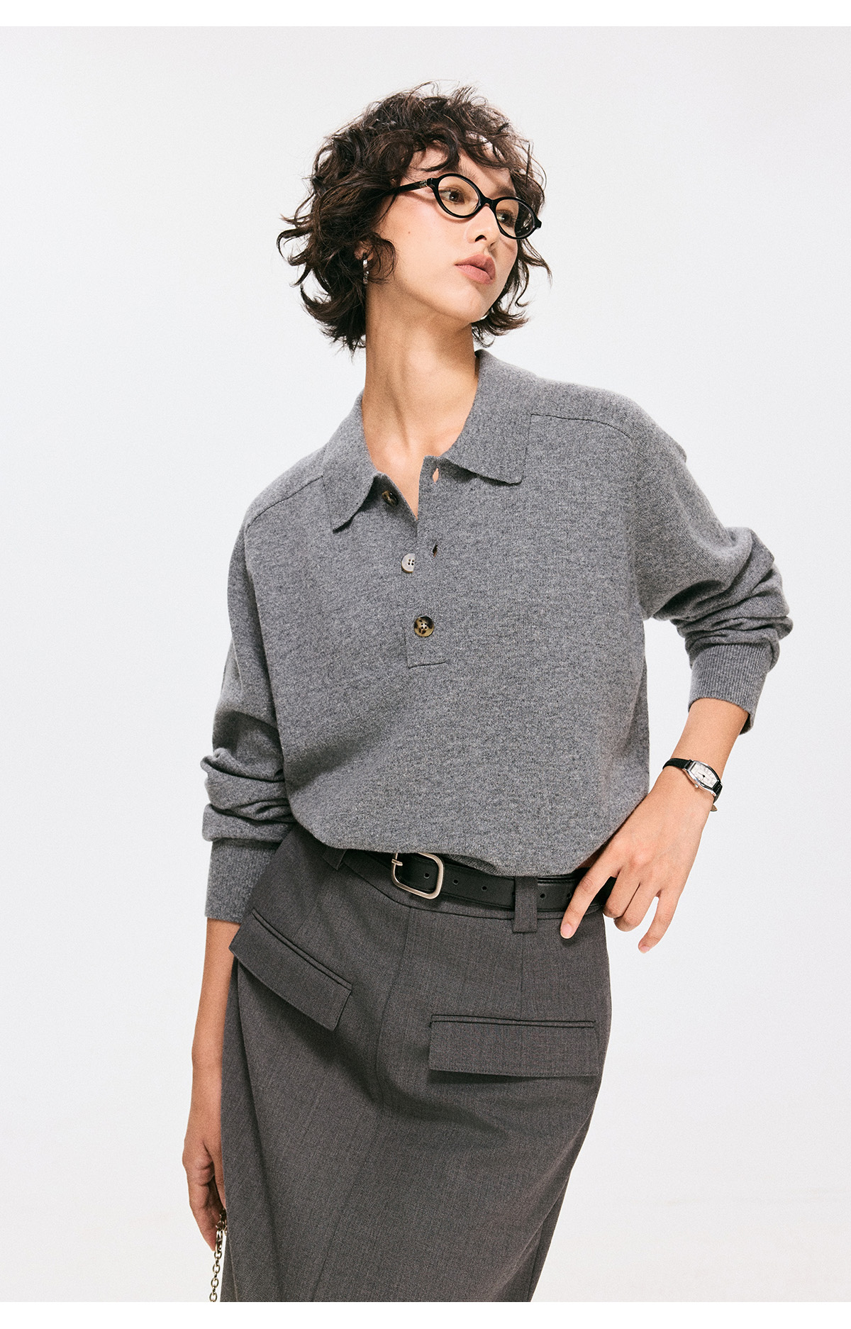 棉仓3671026010-【格雷象限】羊毛羊绒POLO领针织衫马鞍肩知识分子毛衣