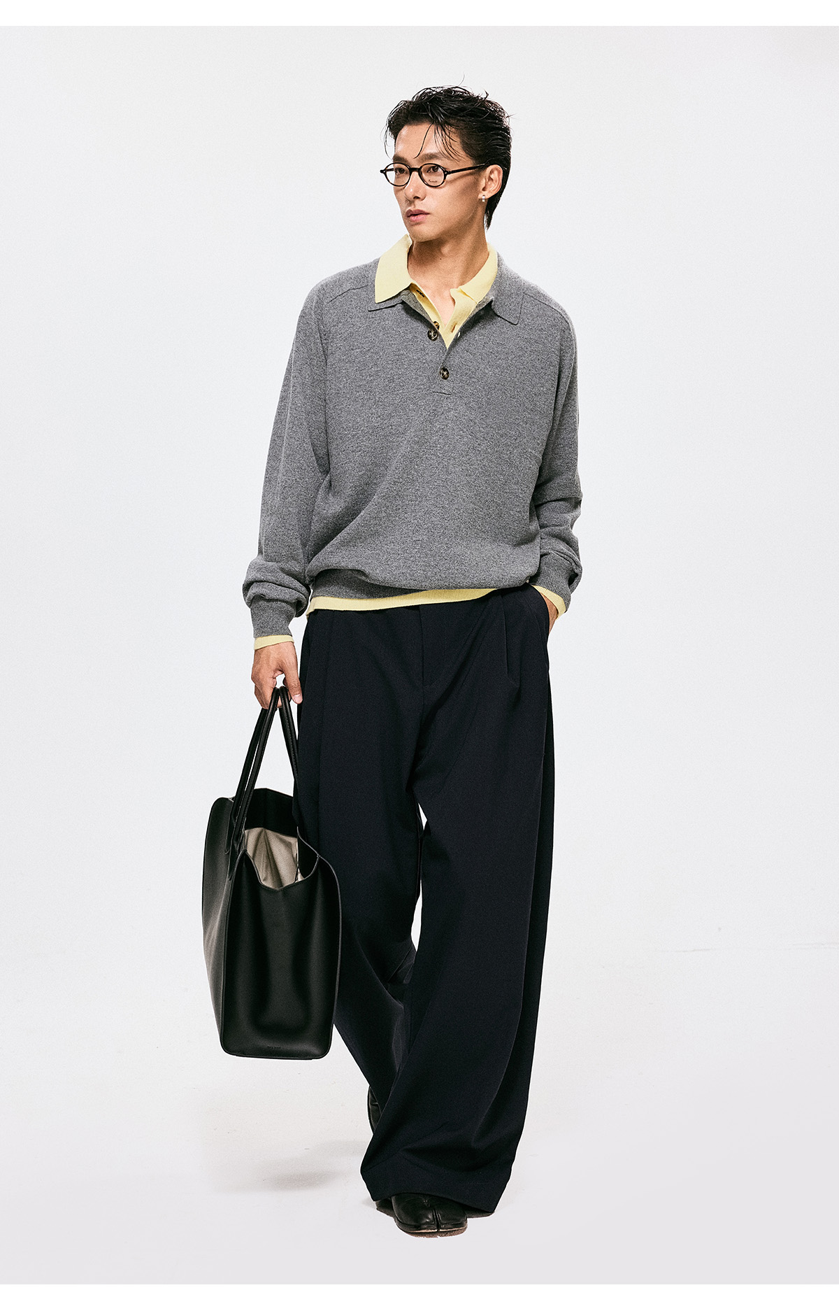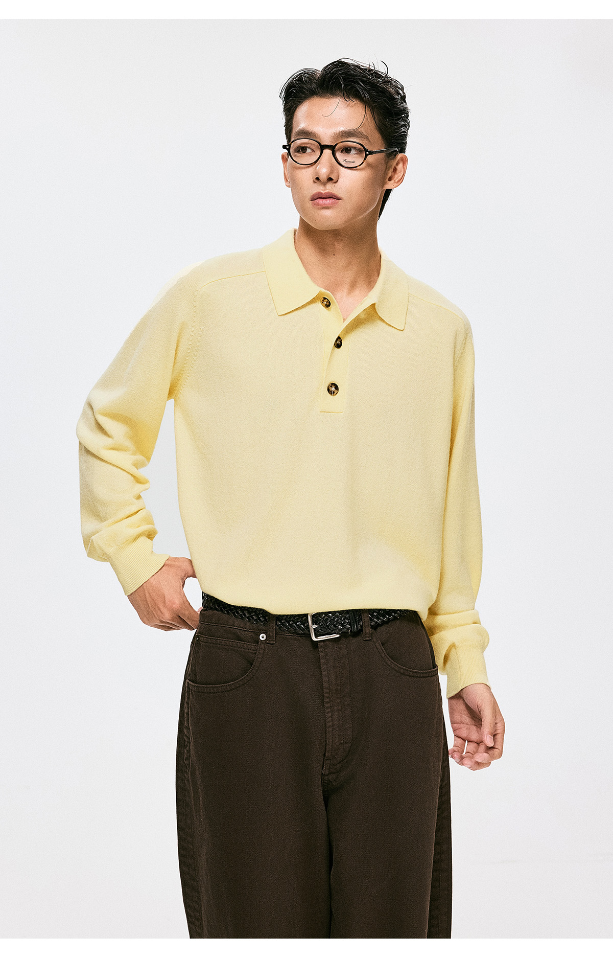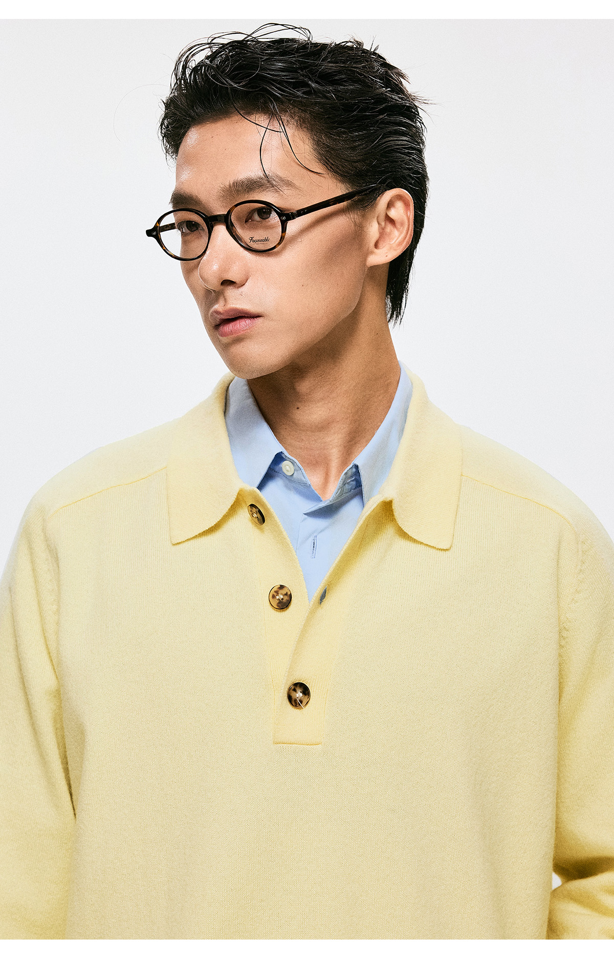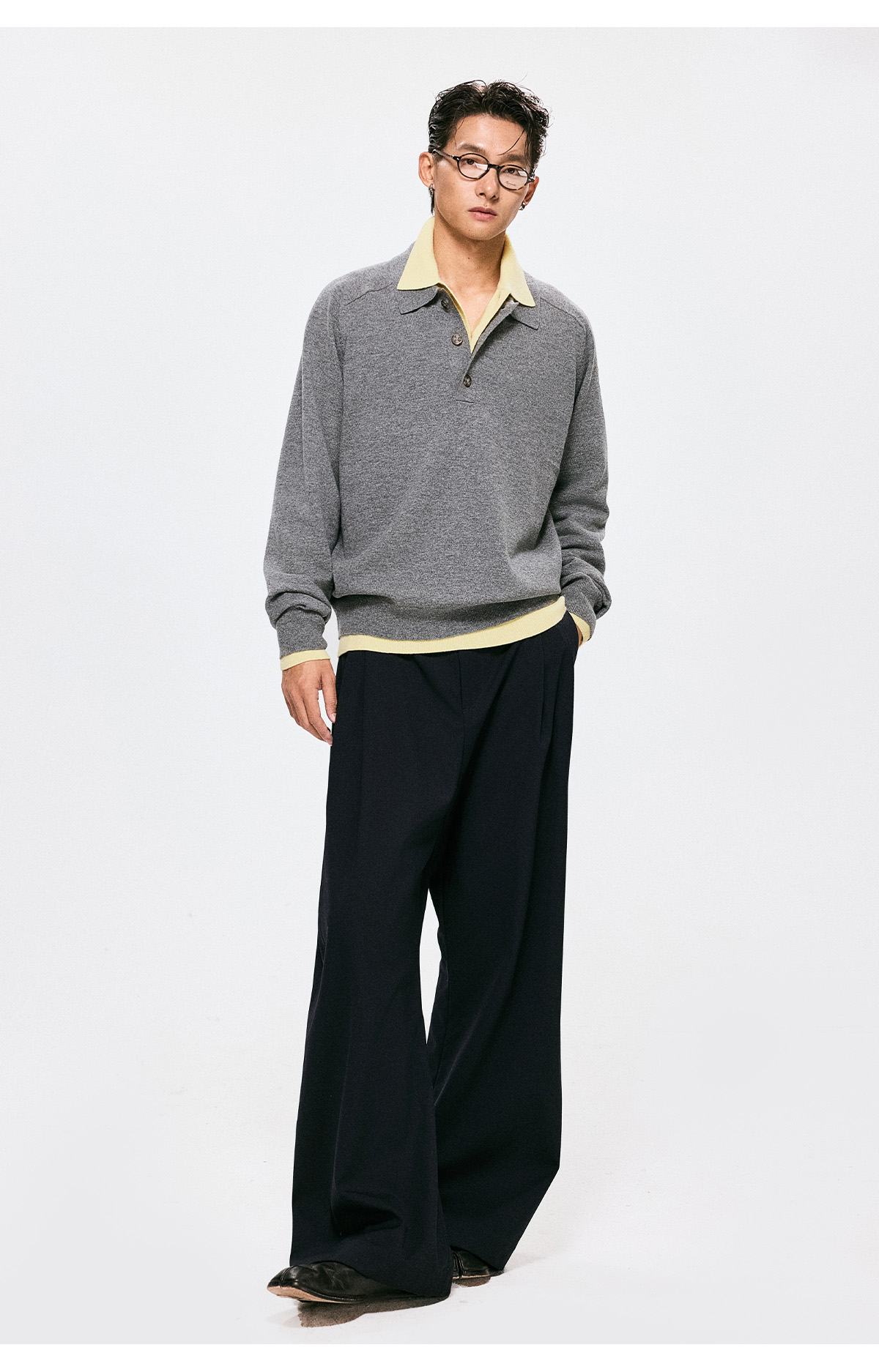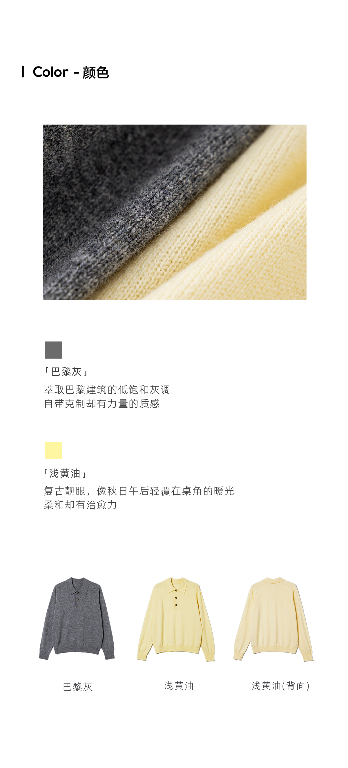棉仓3671026010-【格雷象限】羊毛羊绒POLO领针织衫马鞍肩知识分子毛衣