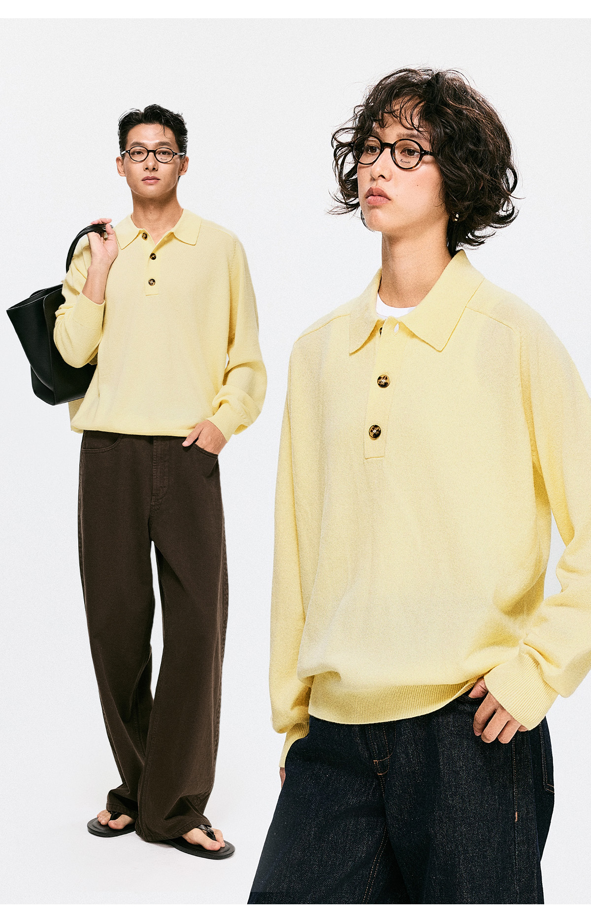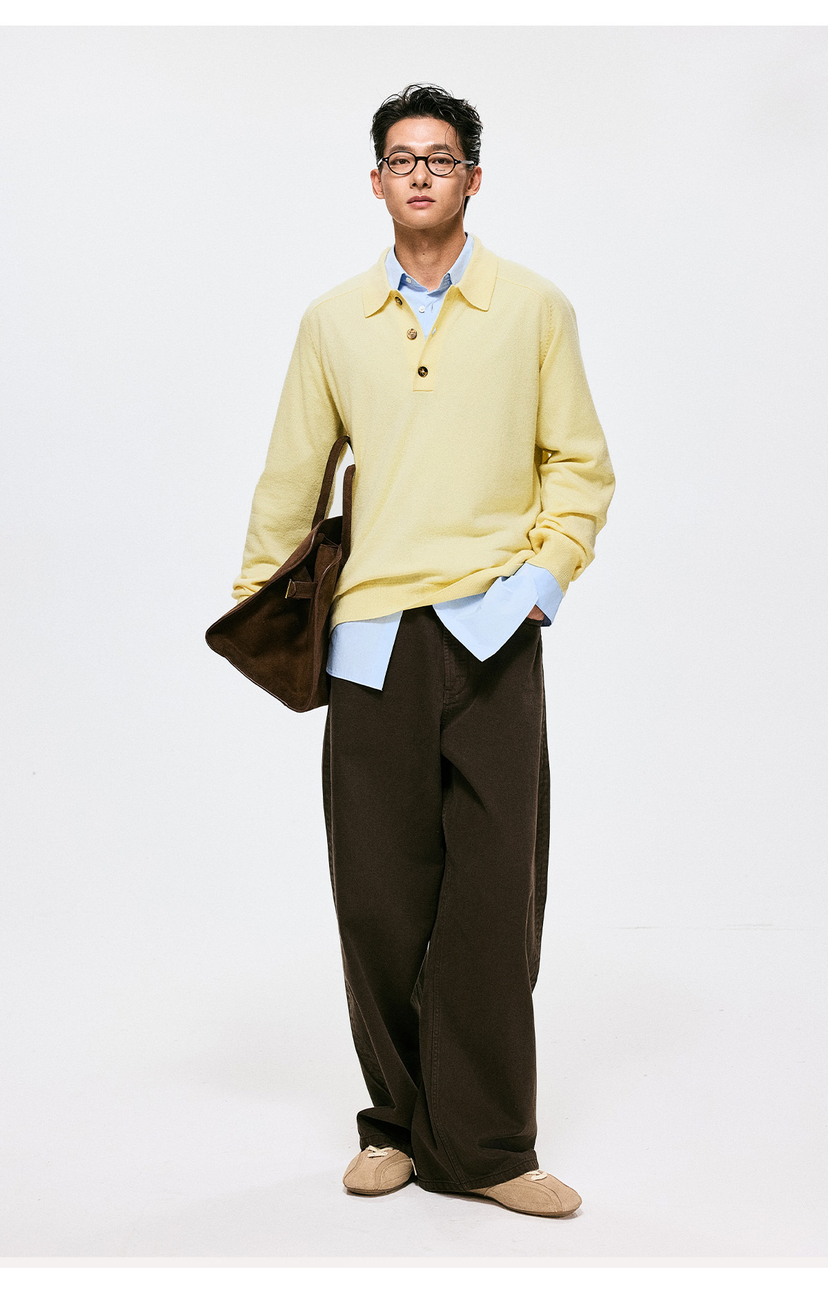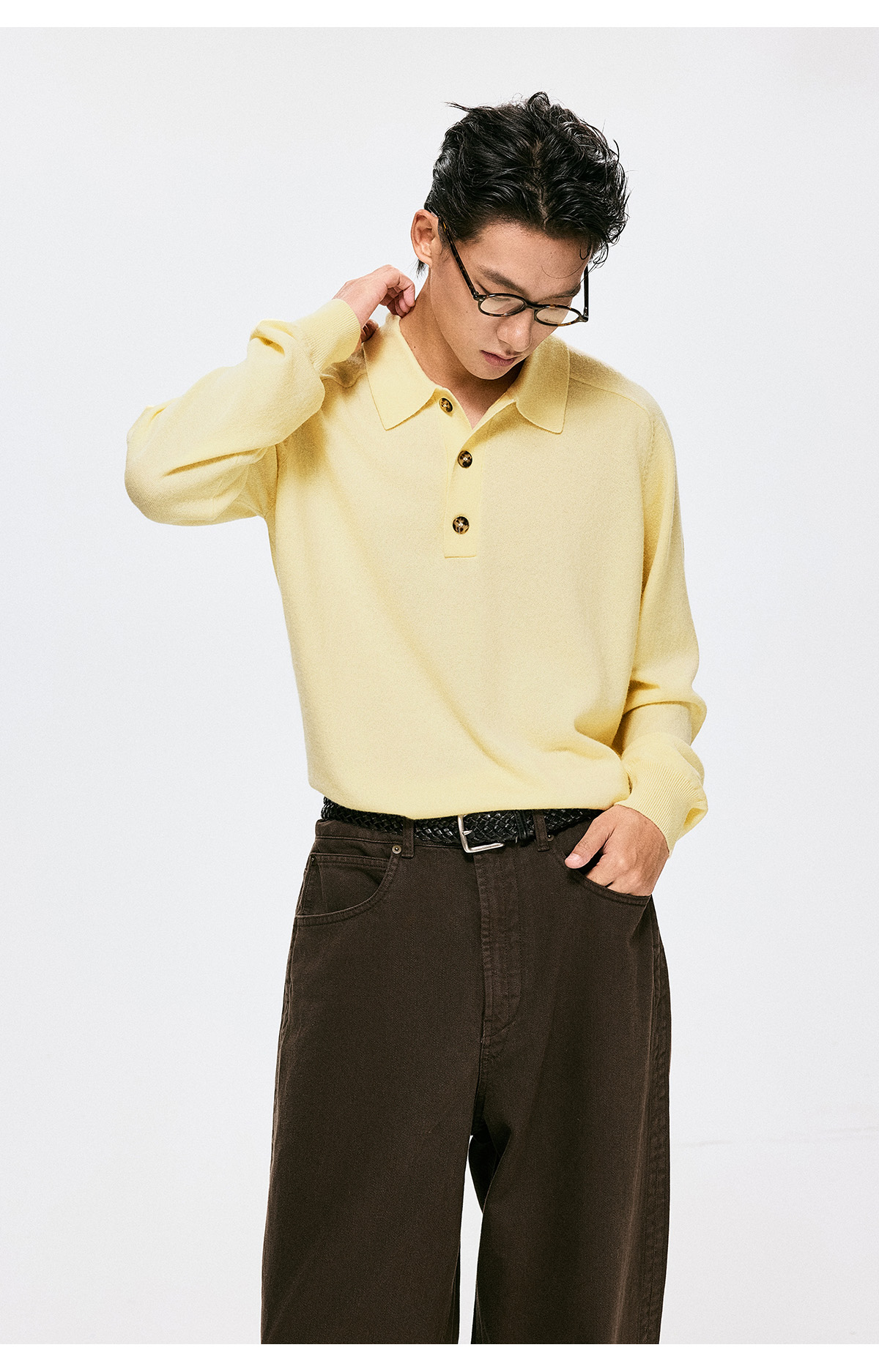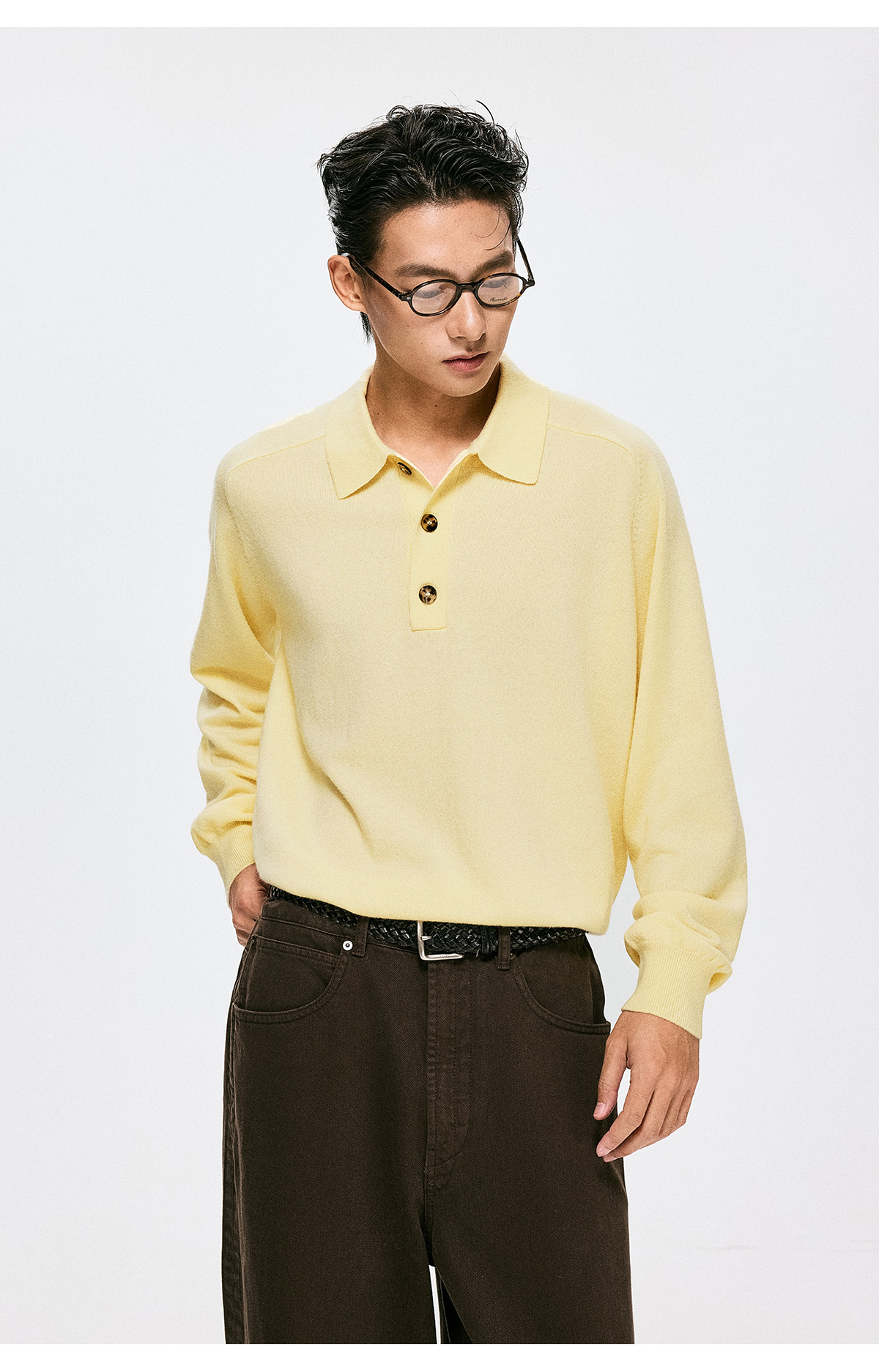 棉仓3671026010-【格雷象限】羊毛羊绒POLO领针织衫马鞍肩知识分子毛衣