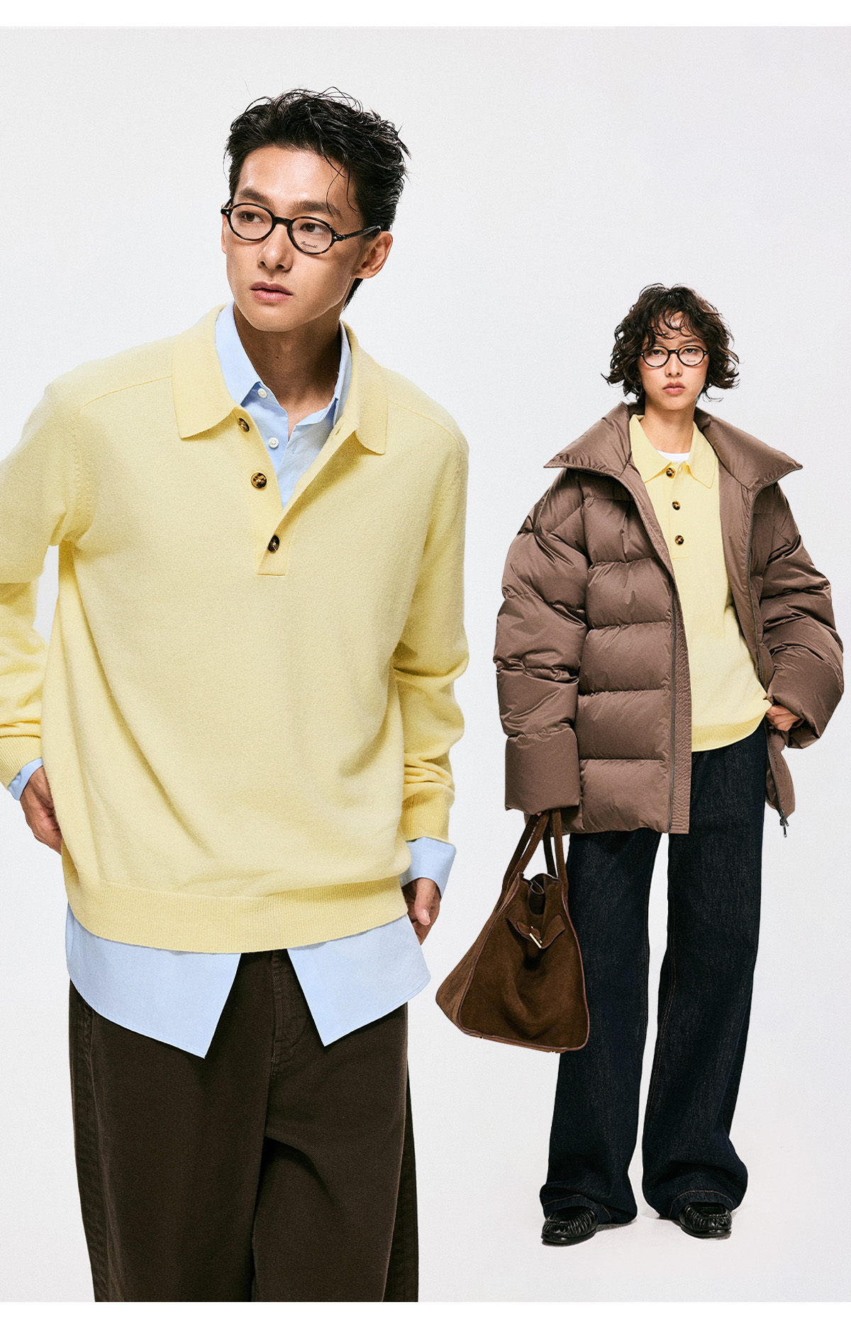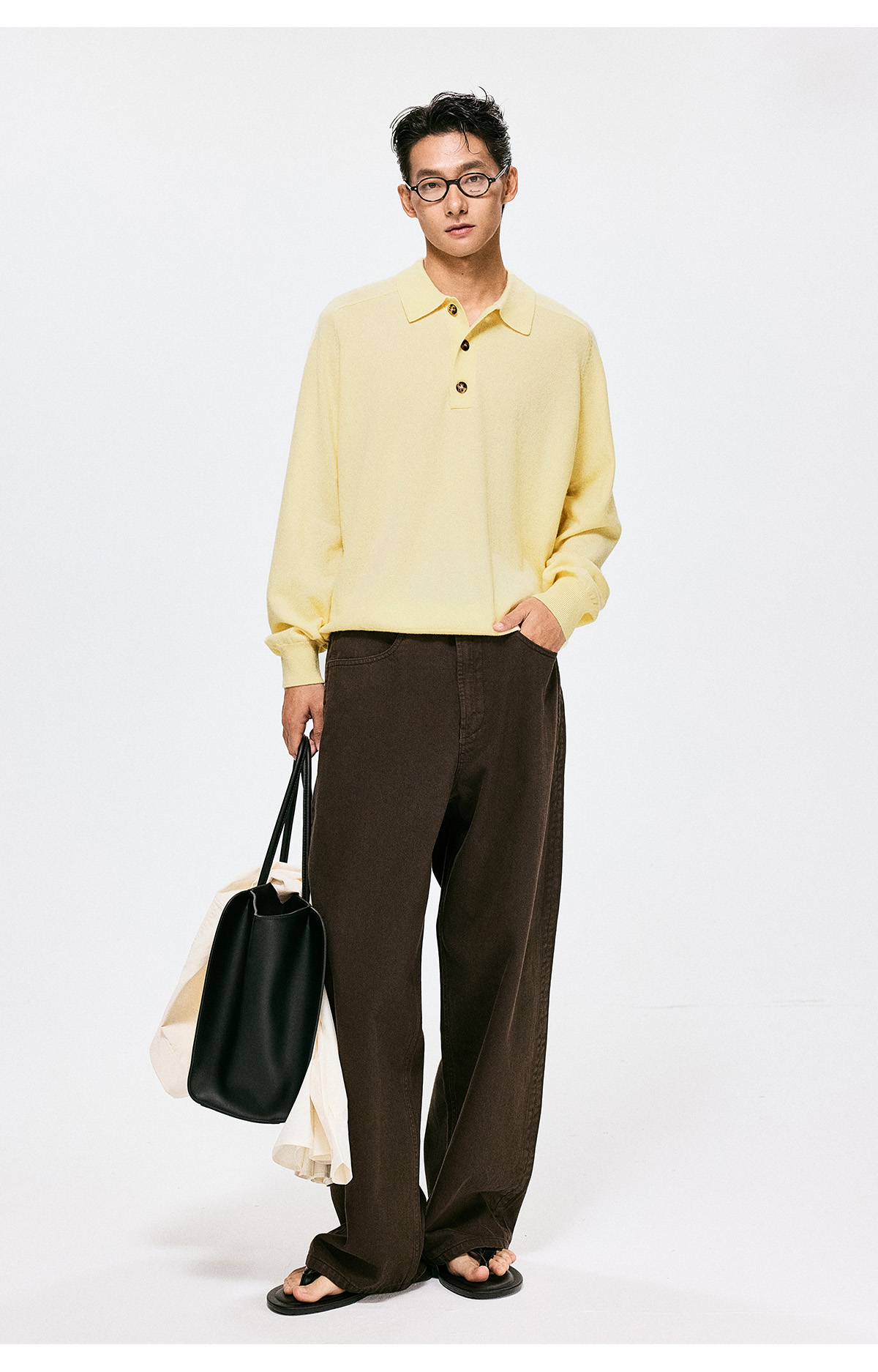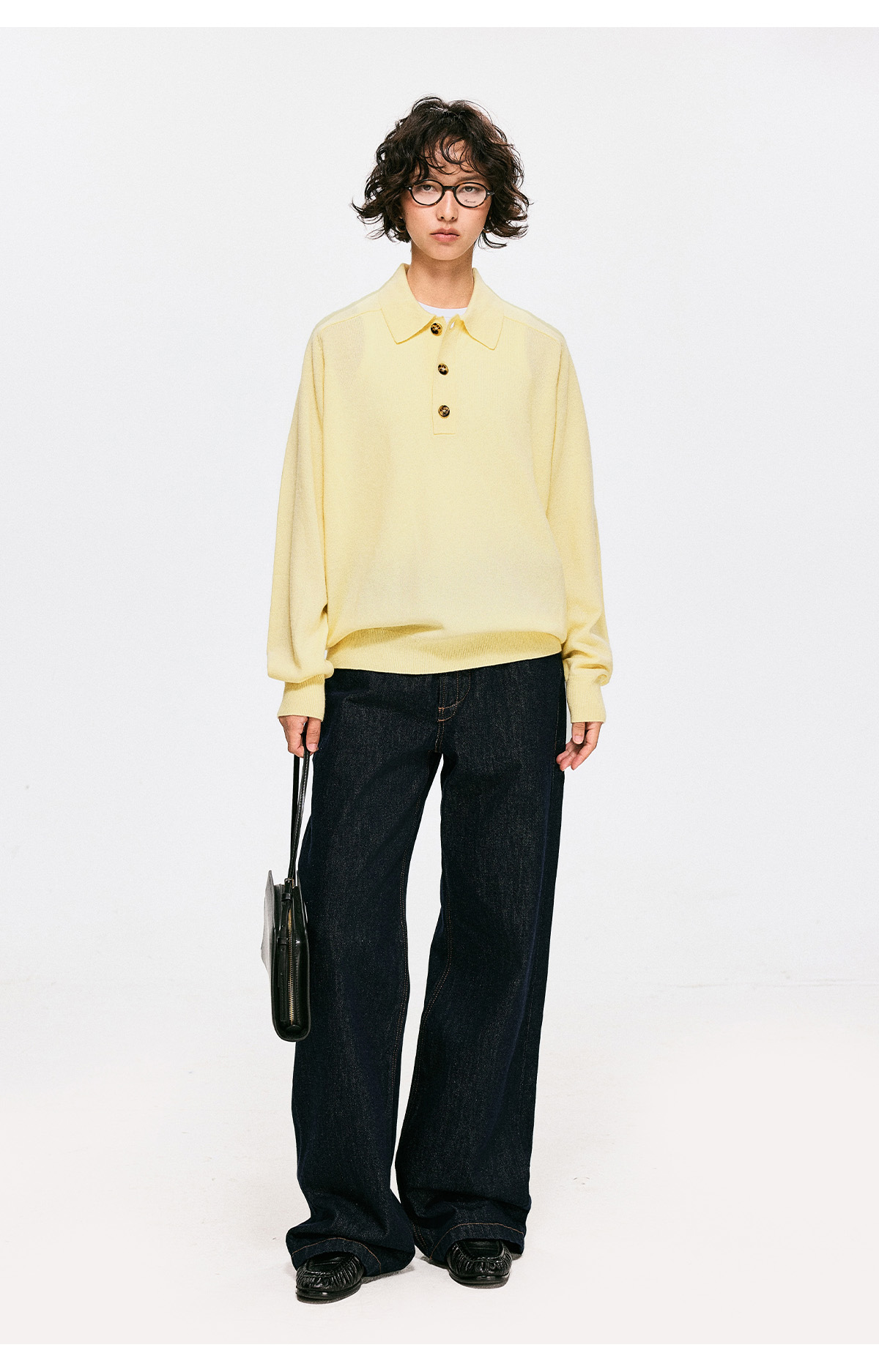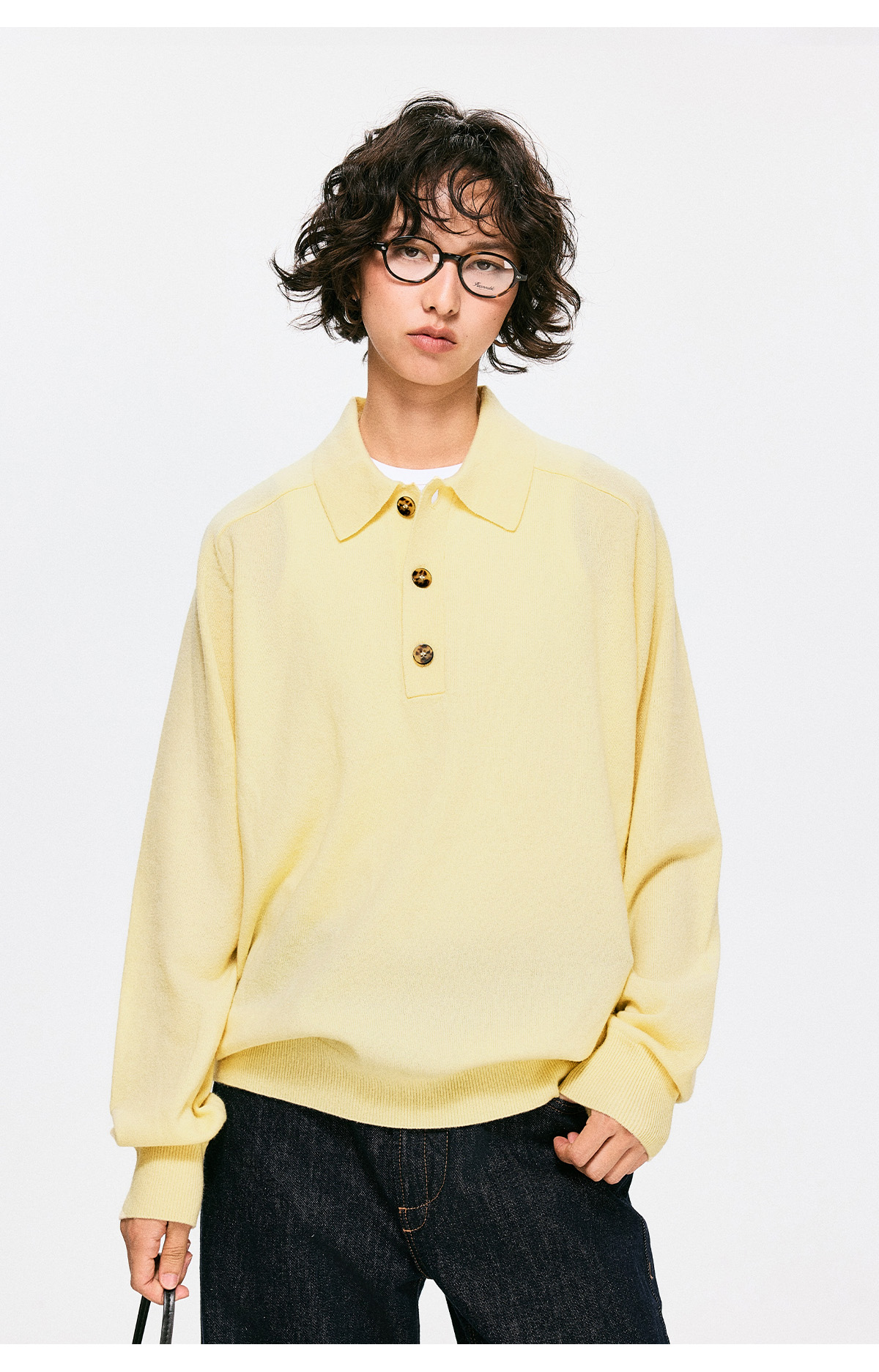 棉仓3671026010-【格雷象限】羊毛羊绒POLO领针织衫马鞍肩知识分子毛衣
