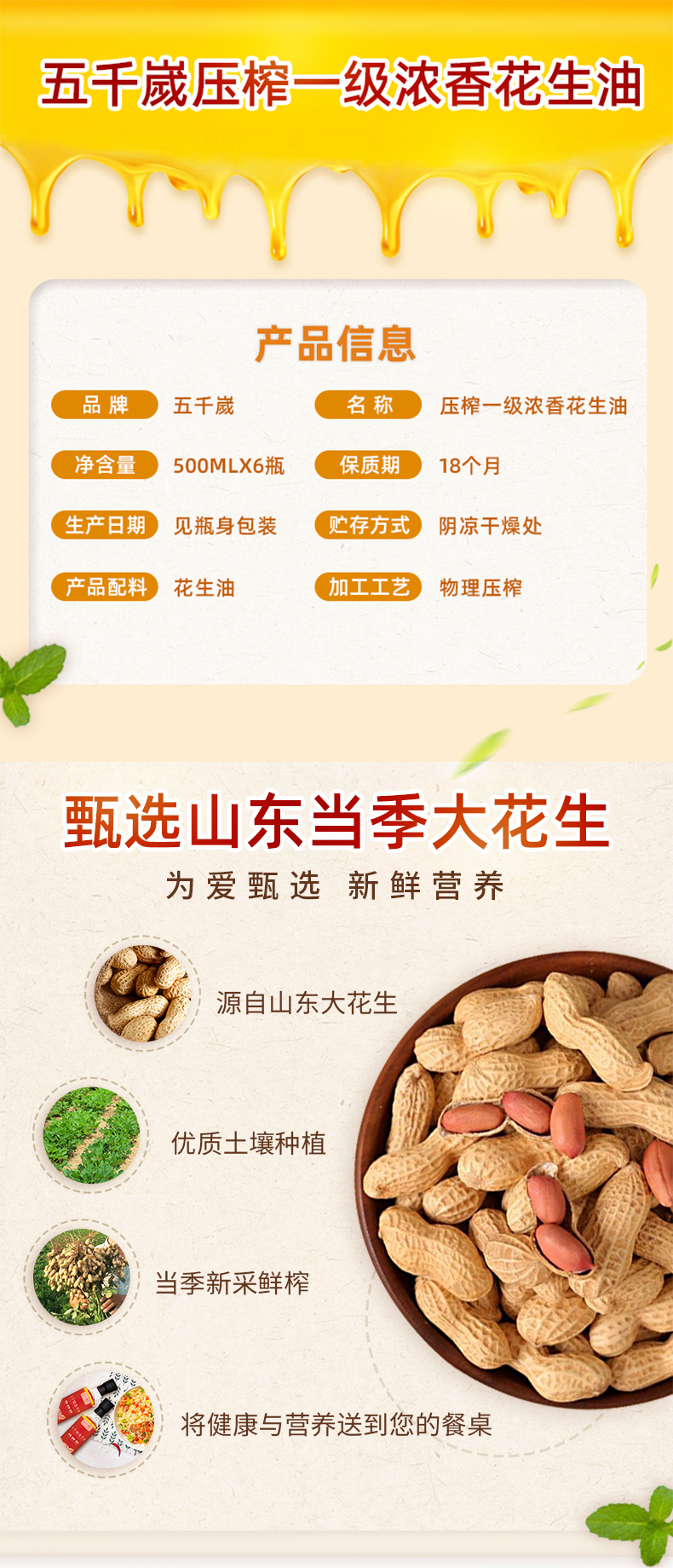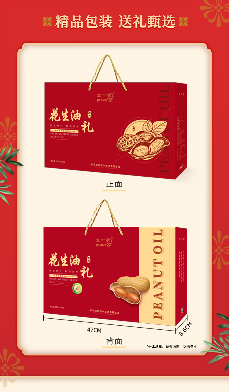 五千岁压榨一级浓香纯正花生油食用油礼盒装送礼礼物 500mlX6