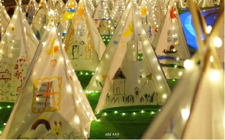 原本单调的帐篷在小朋友们的手下