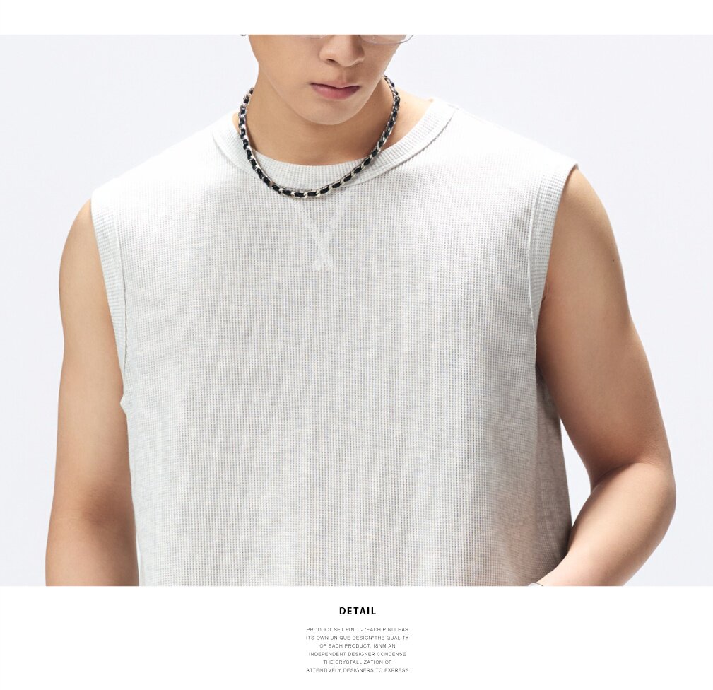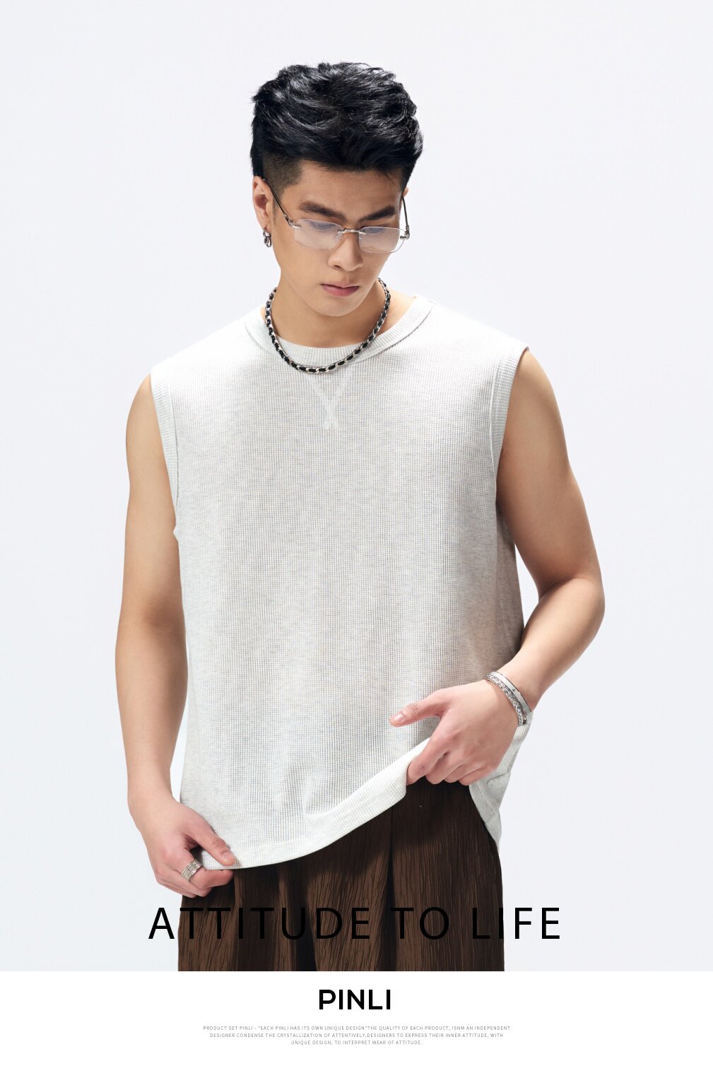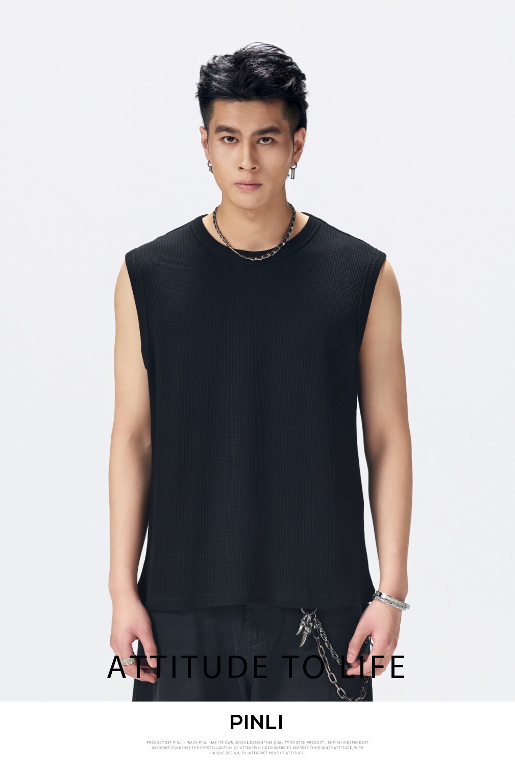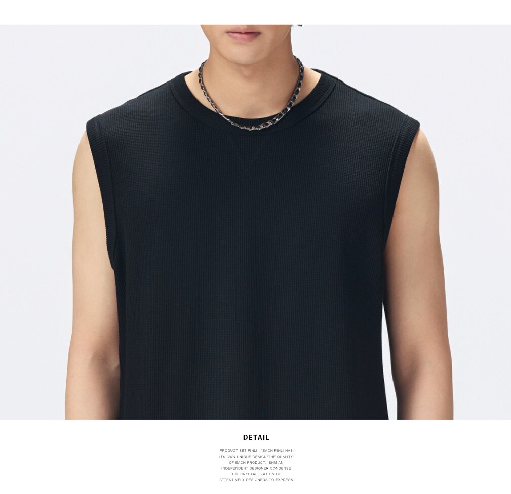 PINLI品立2026夏季新款宽松圆领无袖T恤打底衫运动健身汗背心男士GD262114048