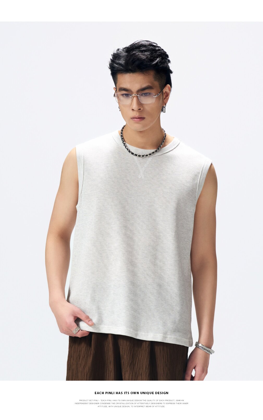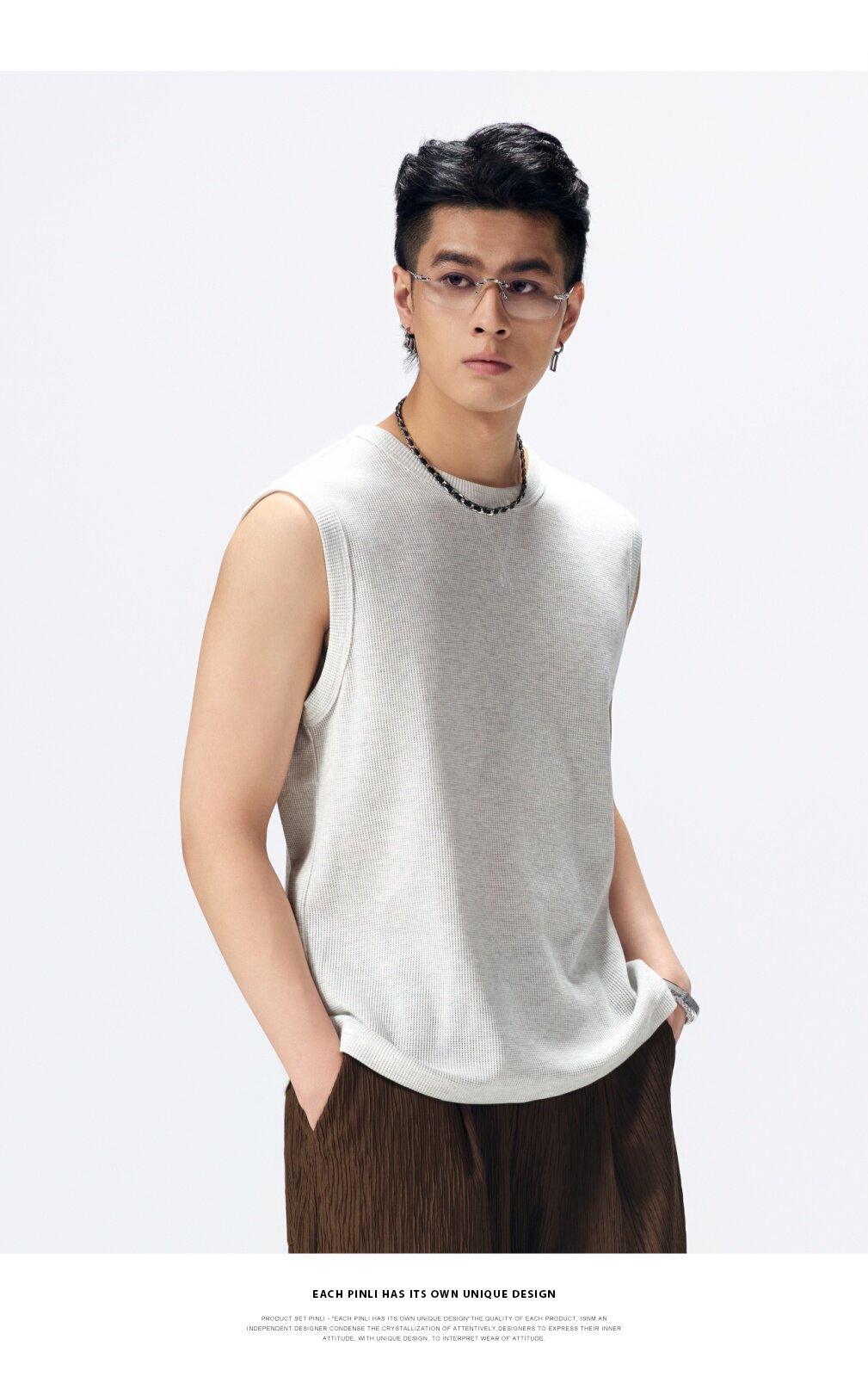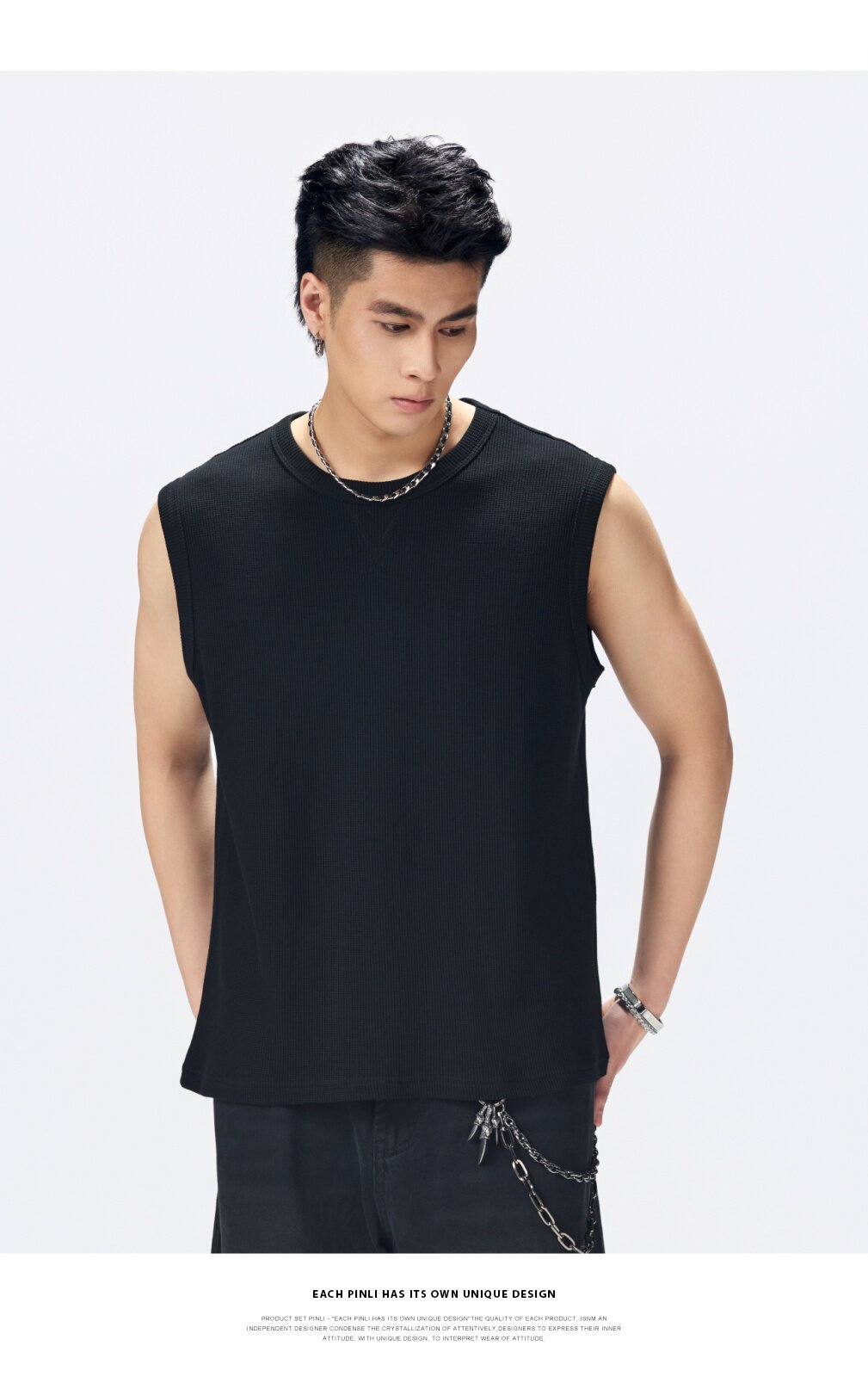 PINLI品立2026夏季新款宽松圆领无袖T恤打底衫运动健身汗背心男士GD262114048