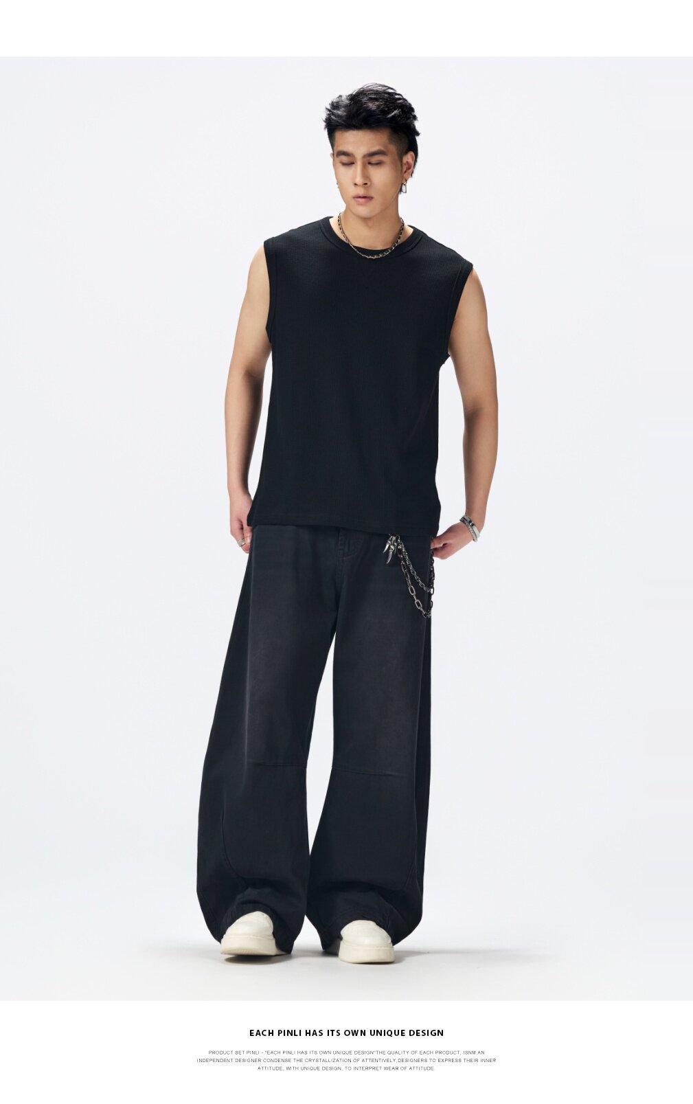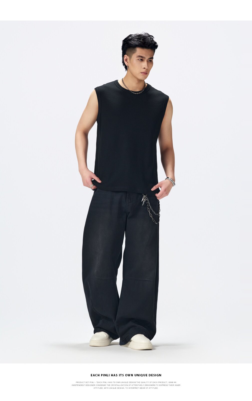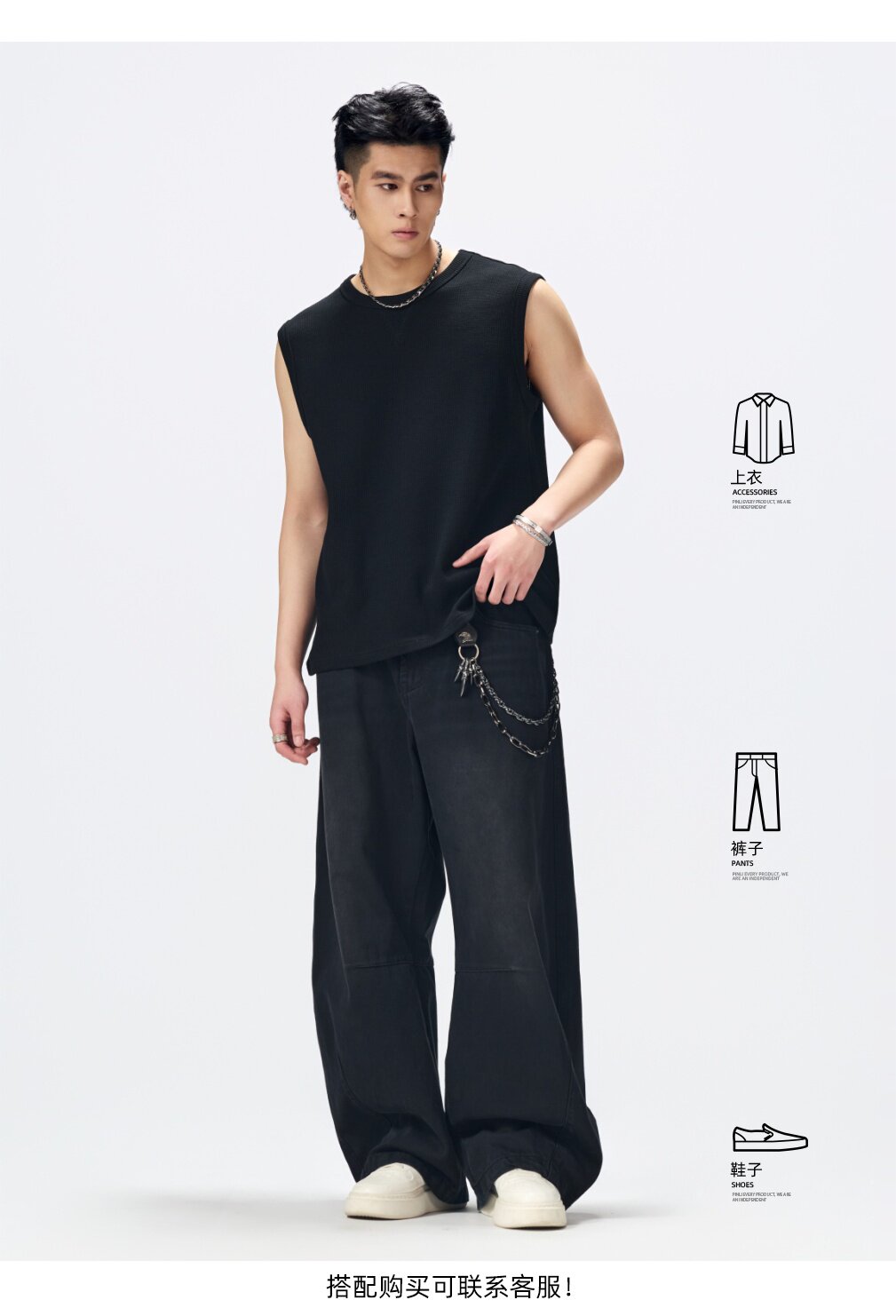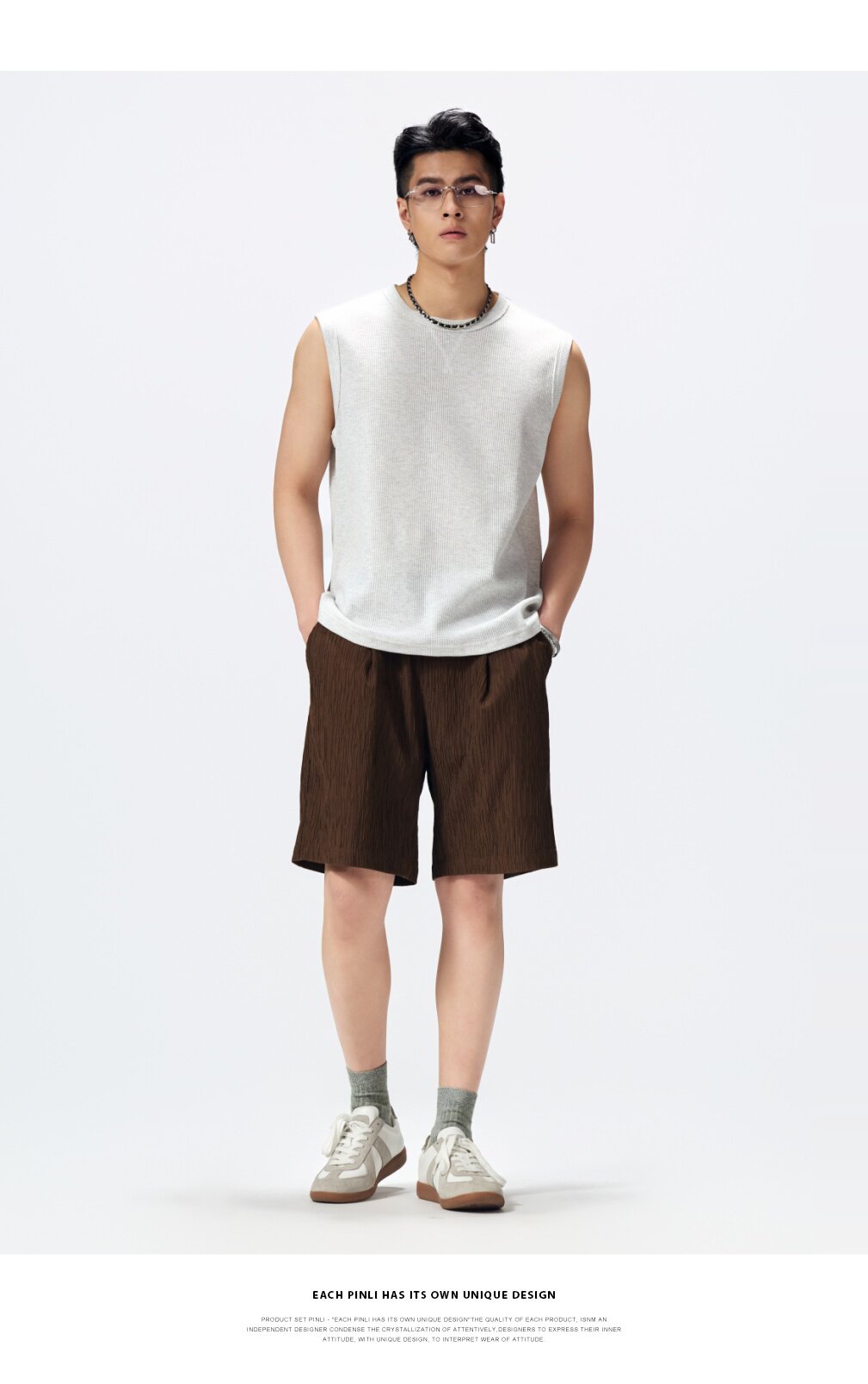 PINLI品立2026夏季新款宽松圆领无袖T恤打底衫运动健身汗背心男士GD262114048