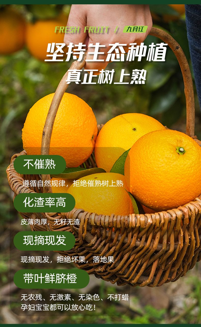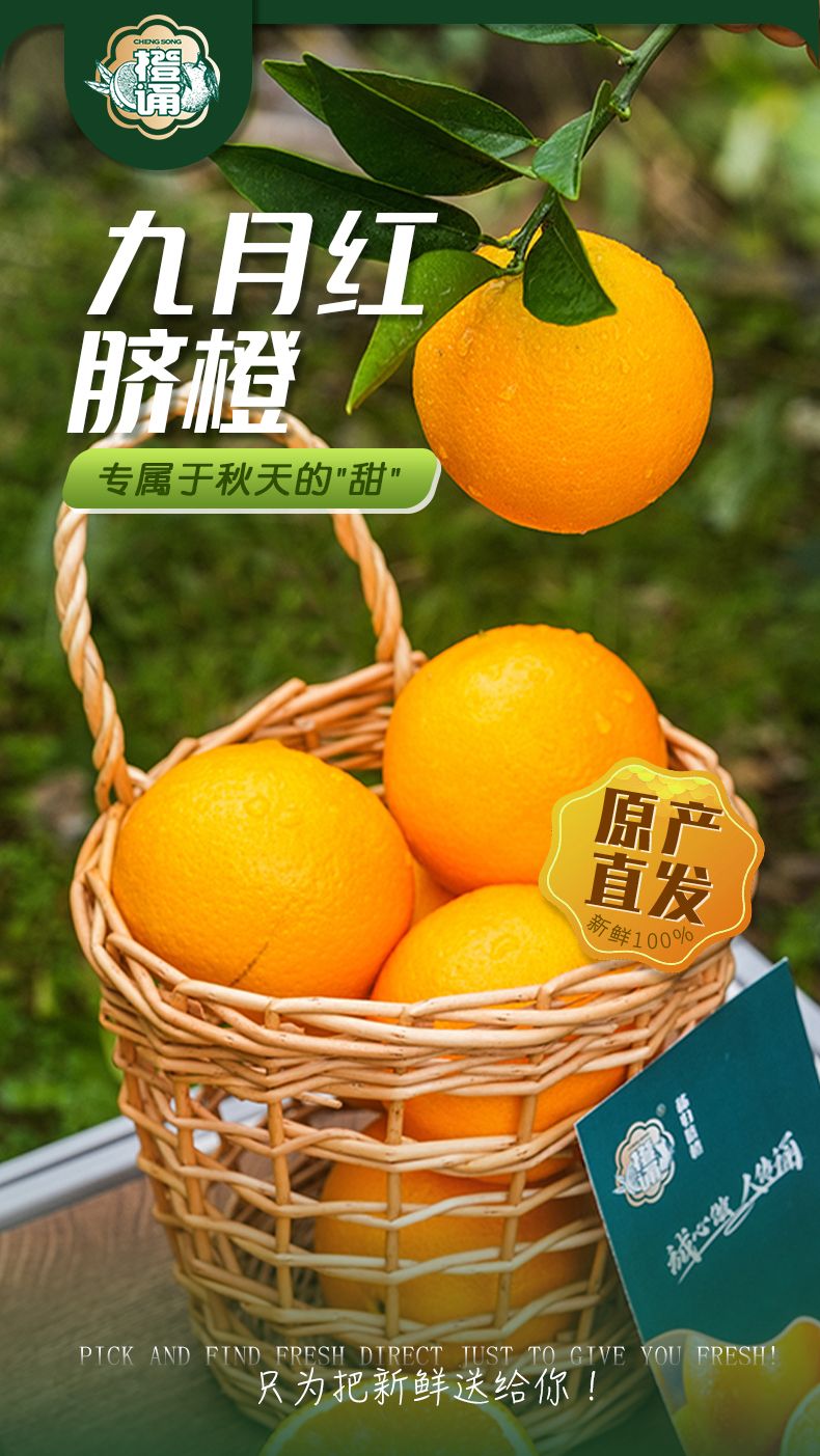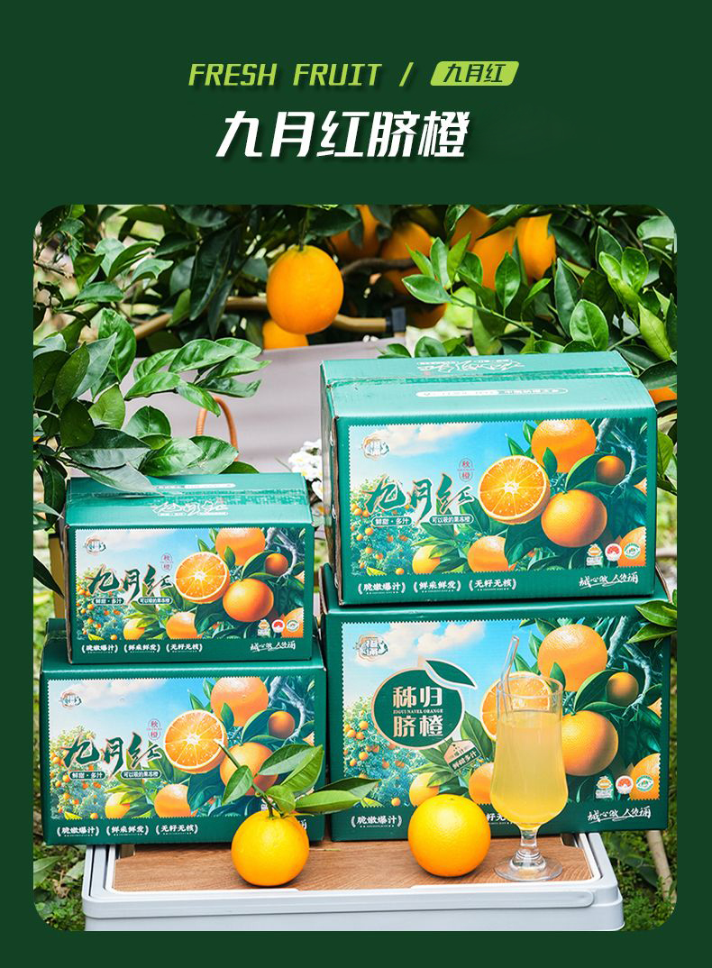 【九月红—秭归脐橙】一口爆汁的橙色,多汁肉嫩、细嫩无渣、酸甜可口、橙香浓郁