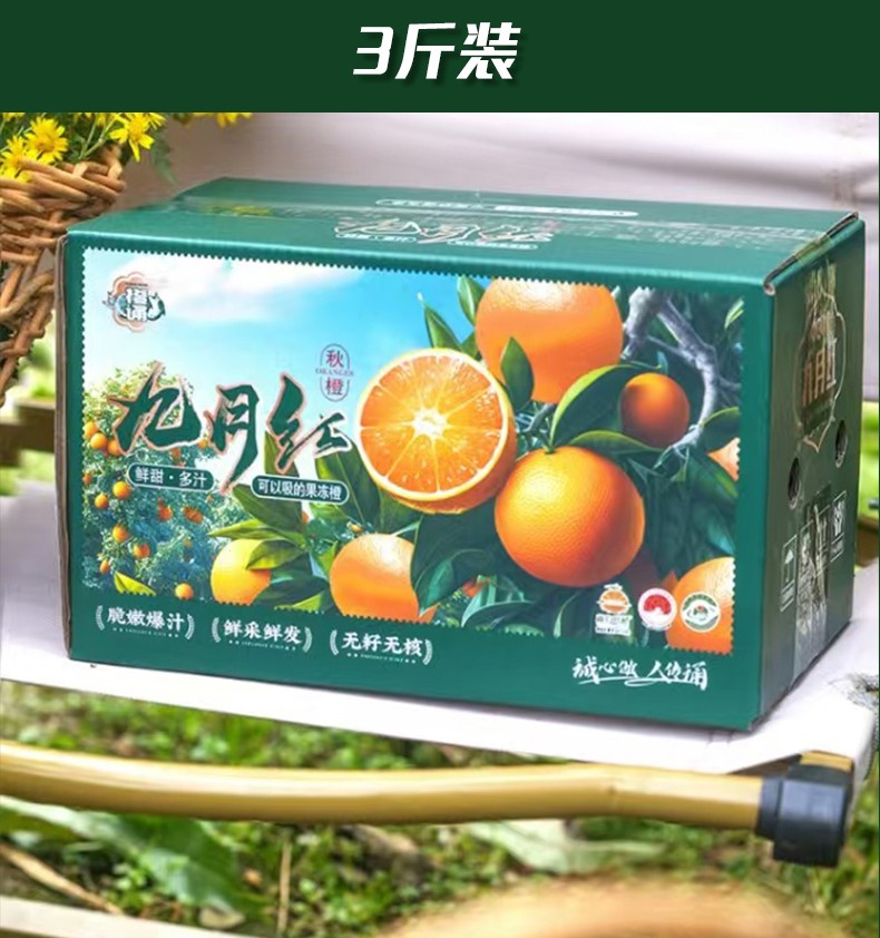 | 品名:九月红—秭归脐橙 规格1:5斤中果 规格2:5斤大果 规格3:5斤特大果 规格4:10斤中小果 规格5:10斤中果 规格6:10斤大果 规格7:10斤特大果 规格8:天地盖礼盒 包装:网套+纸箱&彩箱快递:极兔快递 发货时效:48小时 发货地/产地:湖北秭归 运费模板:新疆、西藏、港澳台不发货;内蒙、黑龙江、吉林、辽宁、甘肃、 宁夏 、青海+5元(保温发货);其他地区包邮 售卖期:11-2月 周六周天、节假日除外,早上八点之前的订单是48小时发货 ,到货时间约为2-5天,请您耐心等待 。 |