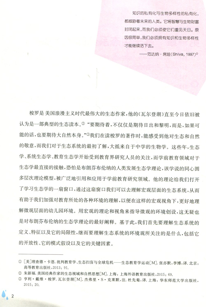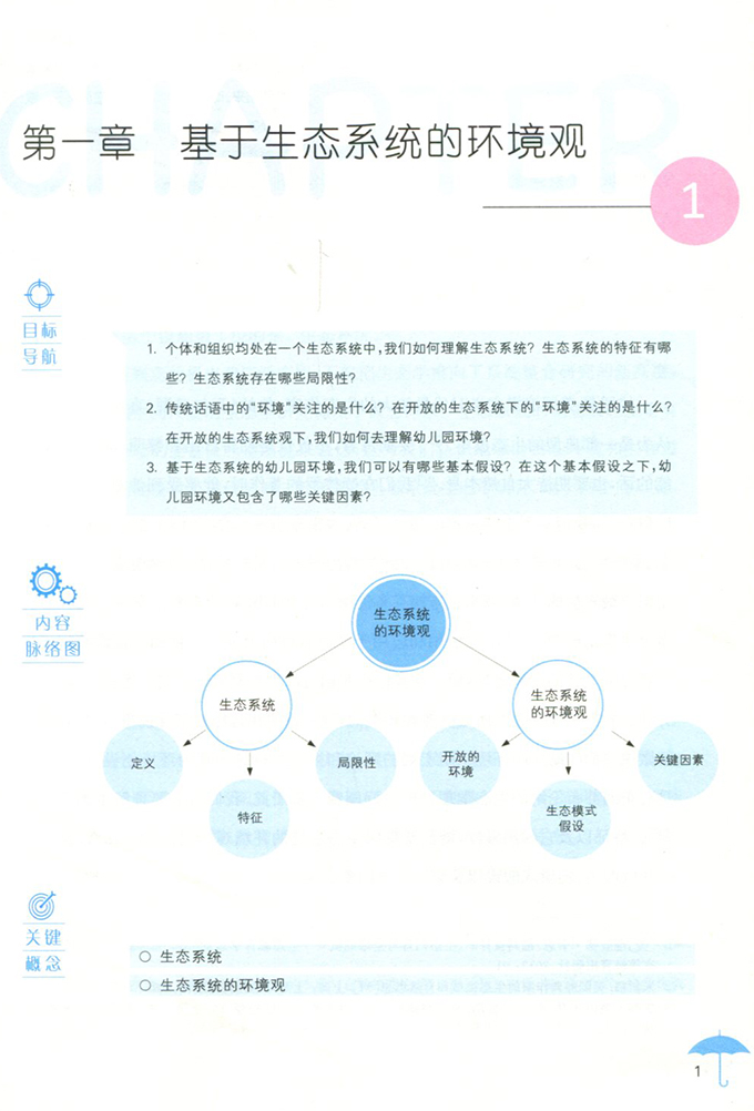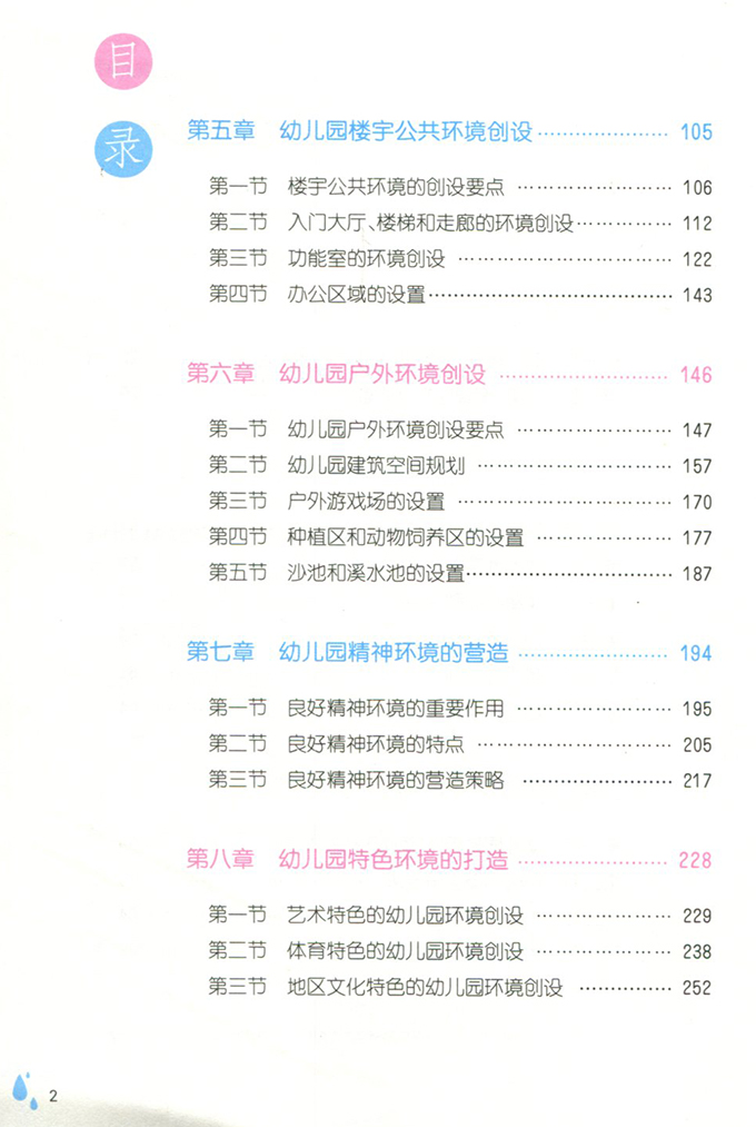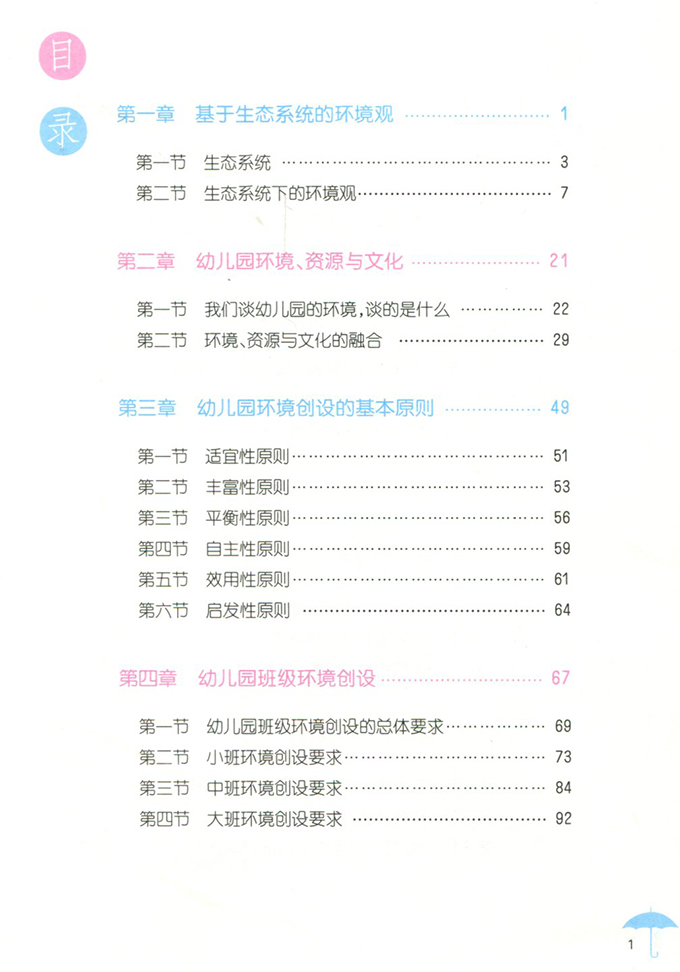 本教材基于生态系统的环境观阐述了环境的重要性和创设优质的幼儿园教育环境应该尊重的基本原则,以提高学生学习该门课程的内在动机,并把握环境创设与利用的正确方向。本教材根据《3-6岁儿童学习与发展指南》精神与目标,从三个年龄段提出了创建大中小班班级环境的要求。与此同时对幼儿园楼宇公共环境创设和幼儿园户外场地环境创设提出了建议。