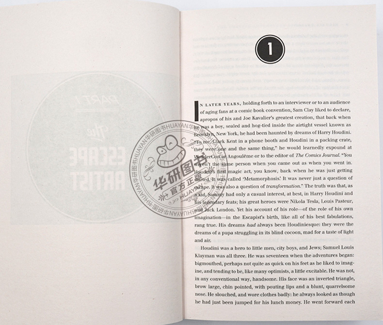 IN LATER YEARS, holding forthto an interviewer orto an audience of aging fans at acomic book convention, Sam Clay liked to declare, apropos of his and Joe Kavalier’s greatest creation, that back when he was a boy, scaled and hog-tied inside the airtight vessel known as Brooklyn, New York, he had been haunted by dreams of Harry Houdini.“To me, Clark Kent in a phone booth and Houdini in a packing crate, they were one and the same thing,” he wouldlearnedly expound at WonderCon or Angouleme or to the editor of The Comics Journal.“You weren’t the same person when you came out as when you went in. Houdini’s first magic act, you know, back when he was just getting started. It was called‘Metamorphosis.’ It was never just a question of escape. It was also a question of transformation.” The truth was that, as a kid, Sammy had only a casual interest, at best, in Harry Houdini and his legendary feats; his great heroes were Nikola Tesla, Louis Pasteur, and Jack London. Yet his account of his role—of the role of his own imagination—in the Escapist’s birth, like all of his best fabulations, rang true. His dreams had always been Houdiniesque: they were the dreams of a pupa struggling in its blind cocoon, mad for a taste of light and air. Houdini was a hero to little men, city boys, and Jews; Samuel Louis Klayman was all three. He was seventeen when the adventures began: bigmouthed, perhaps not quite as quick on his feet as he liked to imagine, and tending to be, like many optimists, a little excitable. He was not, in any conventional way, handsome.