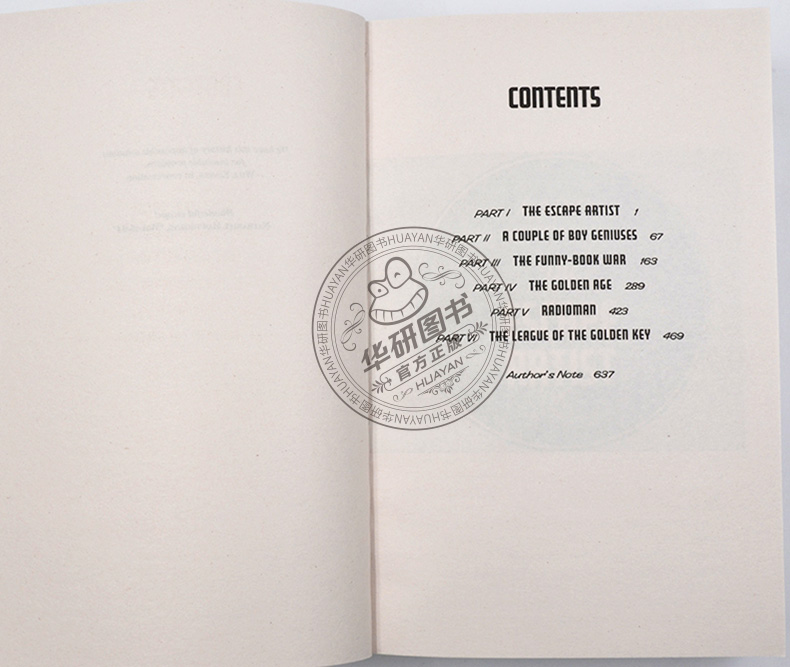 Part I The Escape Artist Part II A Couple of Boy Geniuses Part III The Funny-Book War Part IV The Golden Age Part V Radioman Part VI The League of the Golden Key