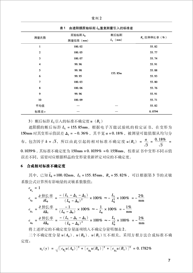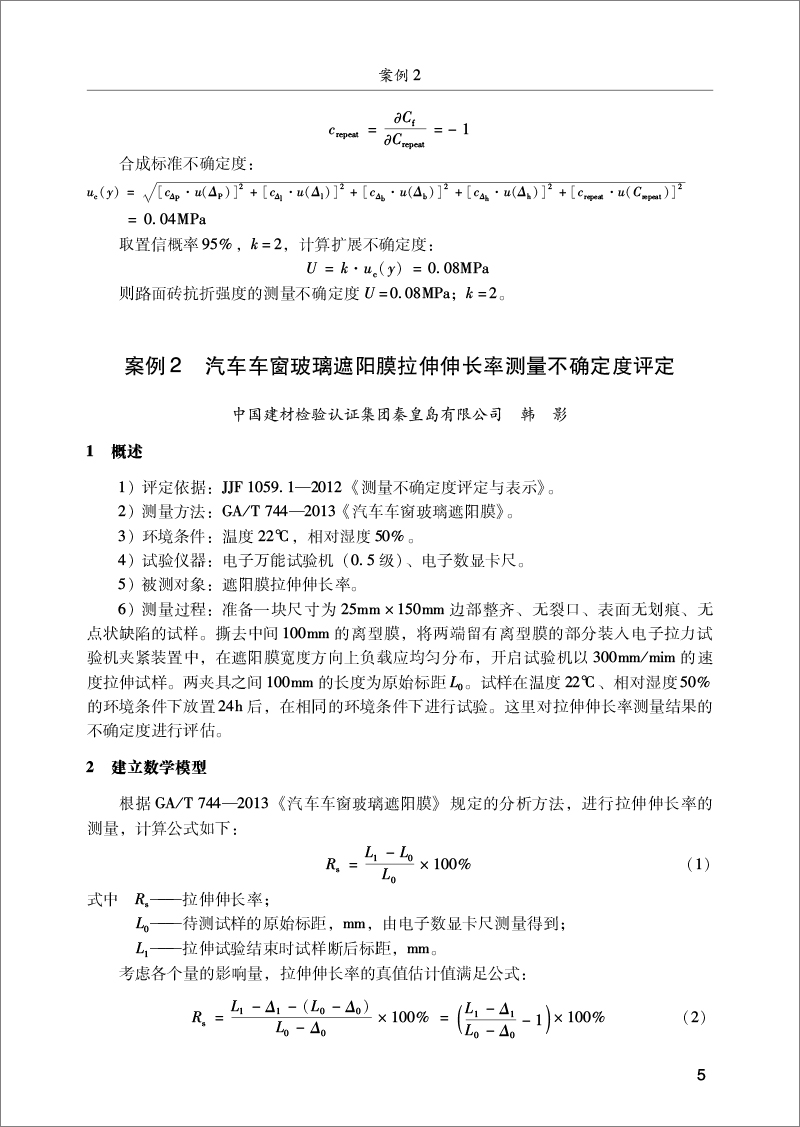 案例2汽车车窗玻璃遮阳膜拉伸伸长率测量不确定度评定(5)