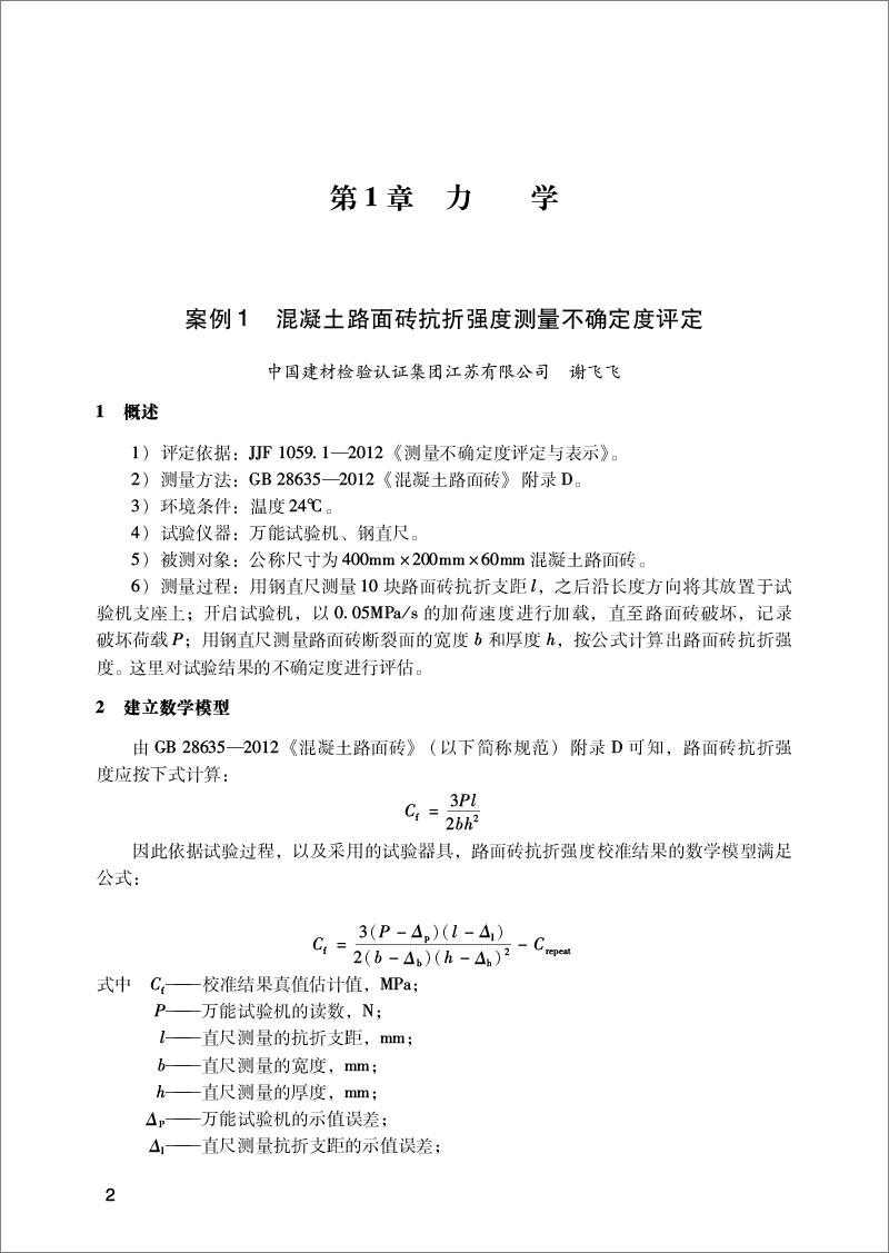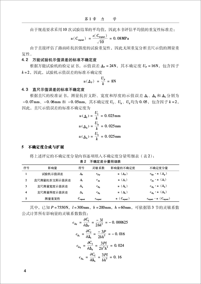 案例1混凝土路面砖抗折强度测量不确定度评定(2)