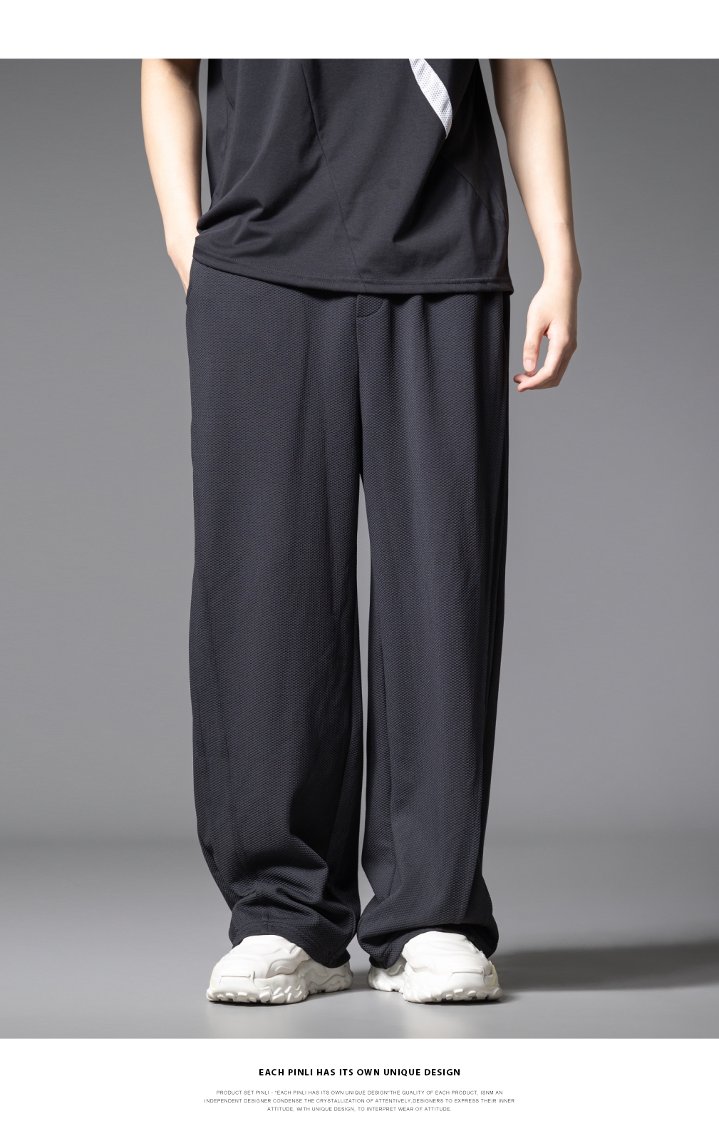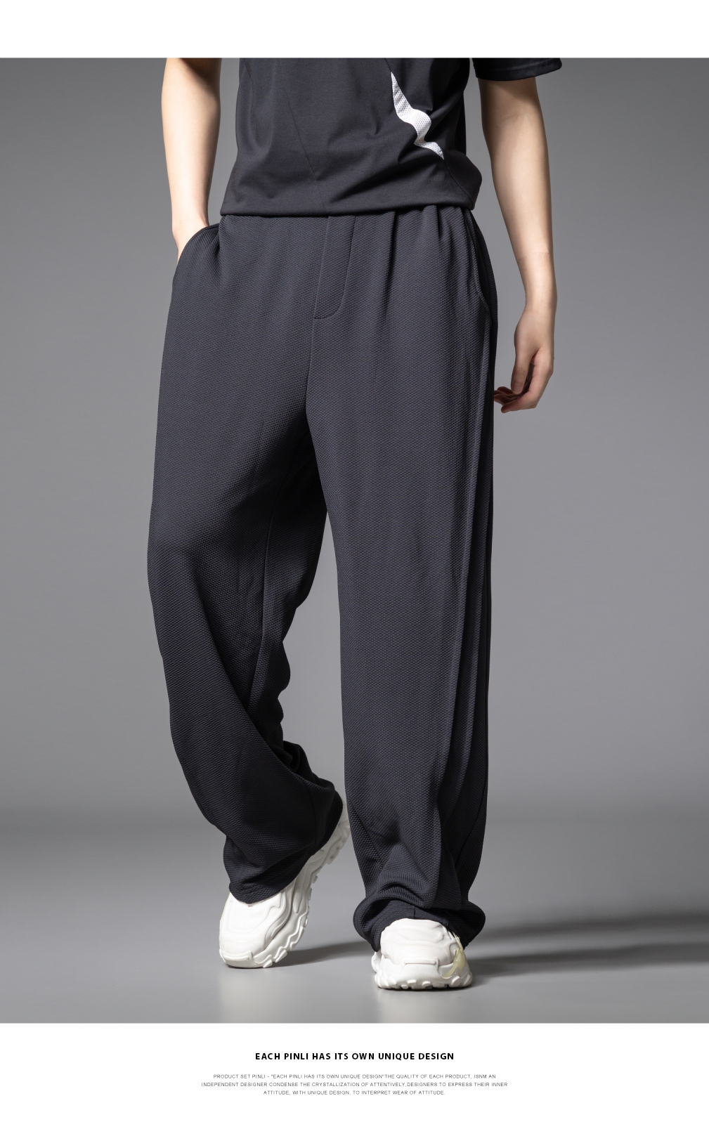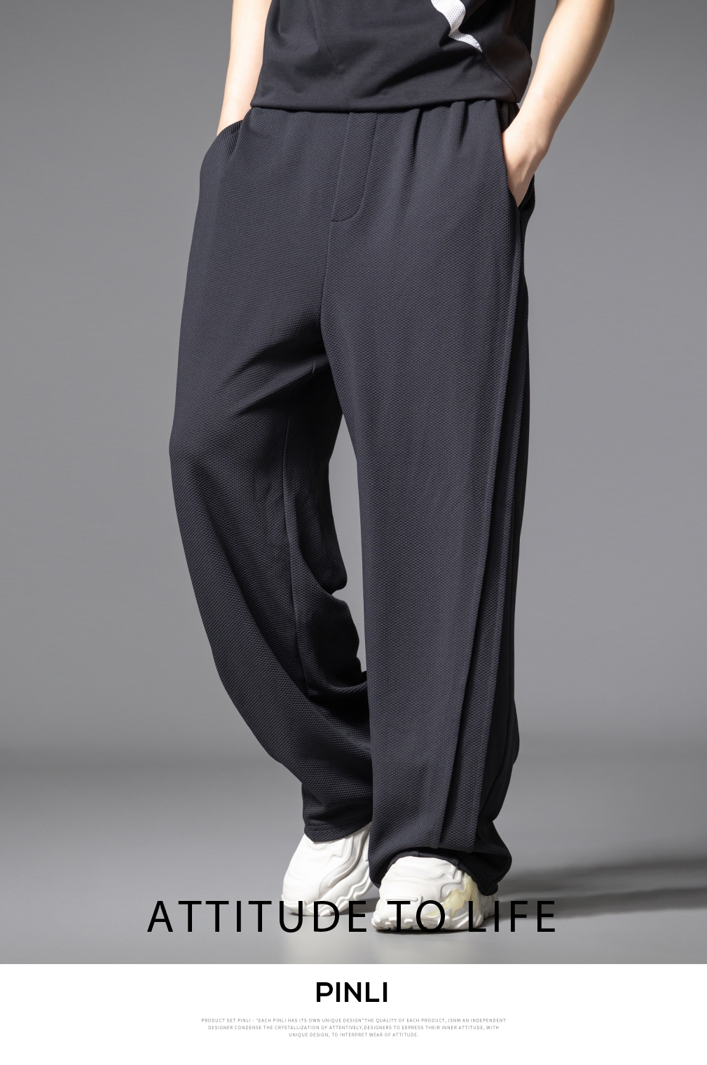 PINLI品立2025夏季新款宽松直筒阔腿裤网眼肌理男士潮牌休闲长裤B252117077