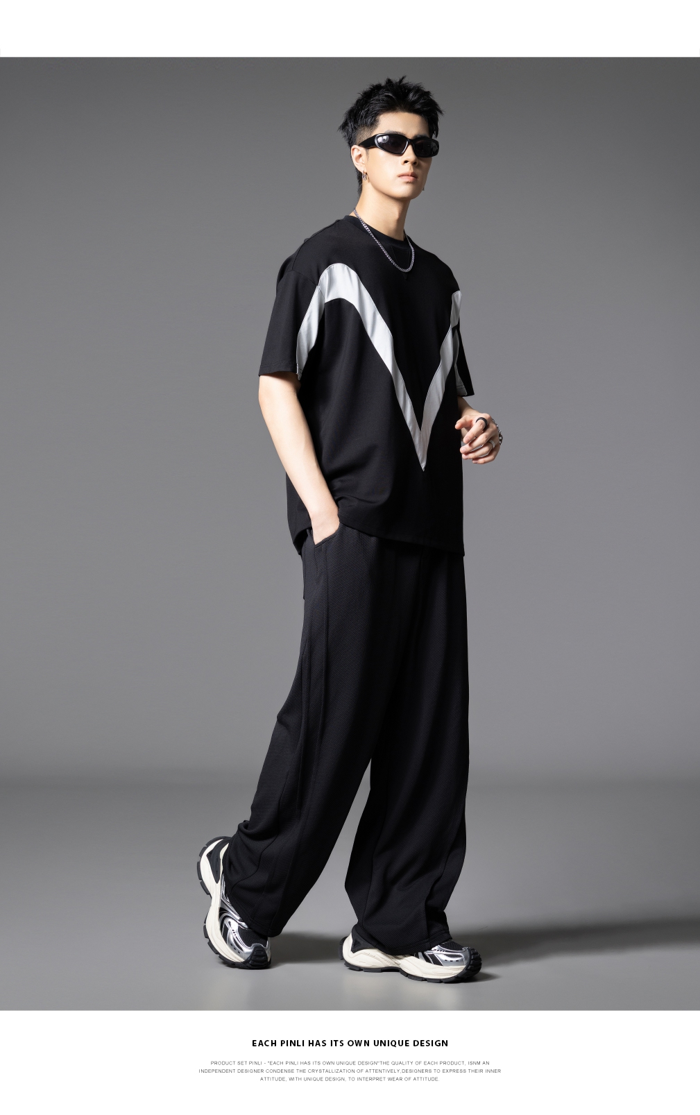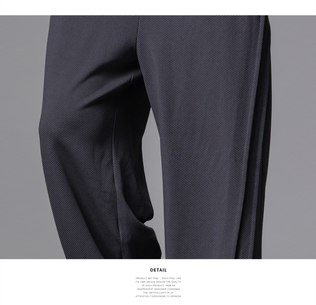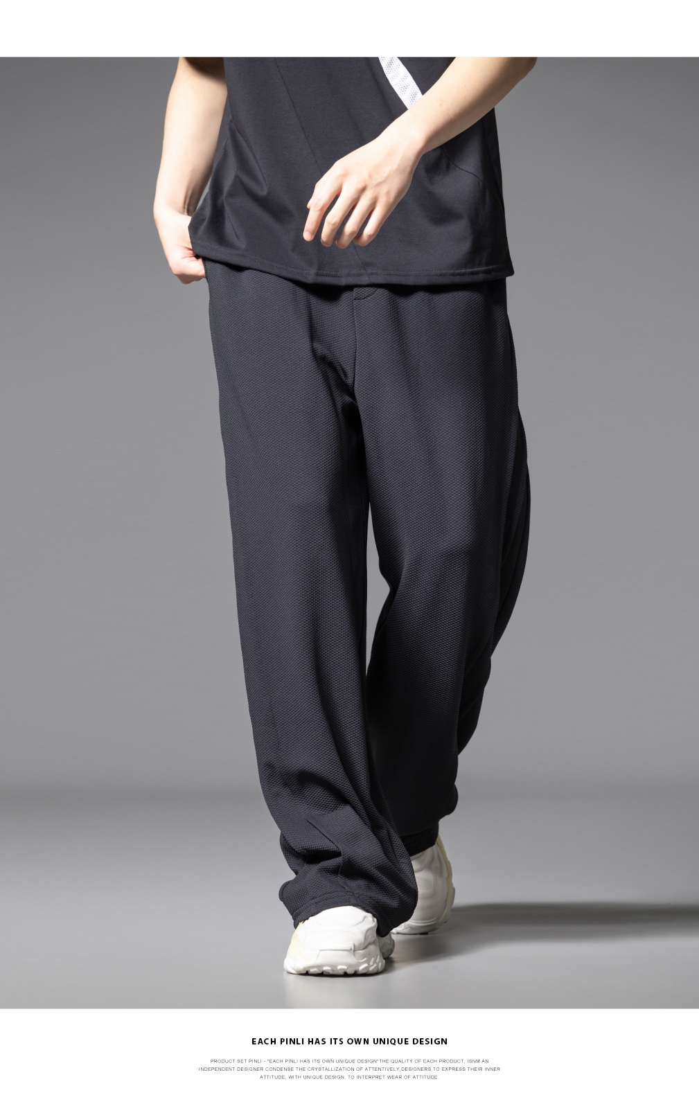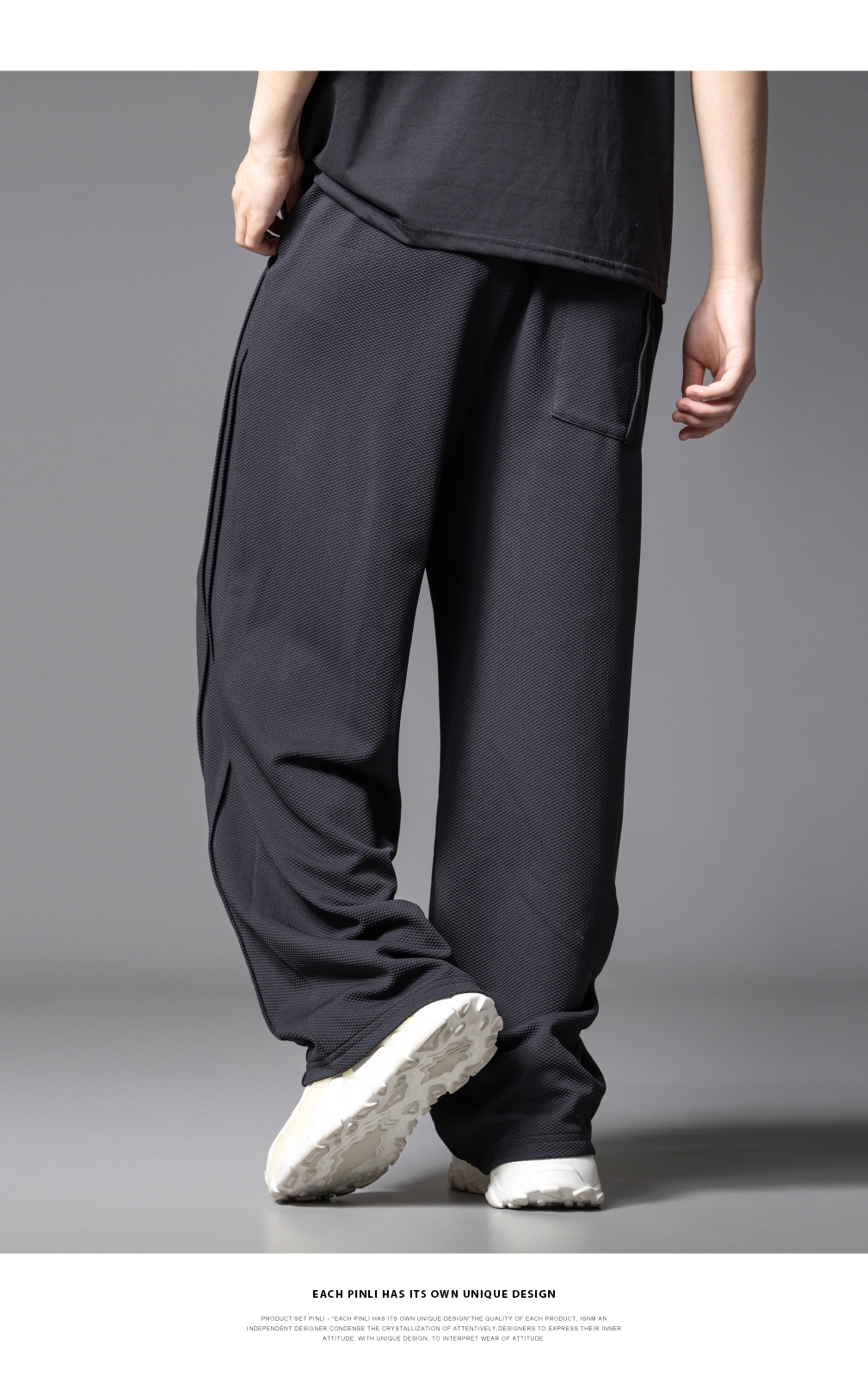 PINLI品立2025夏季新款宽松直筒阔腿裤网眼肌理男士潮牌休闲长裤B252117077