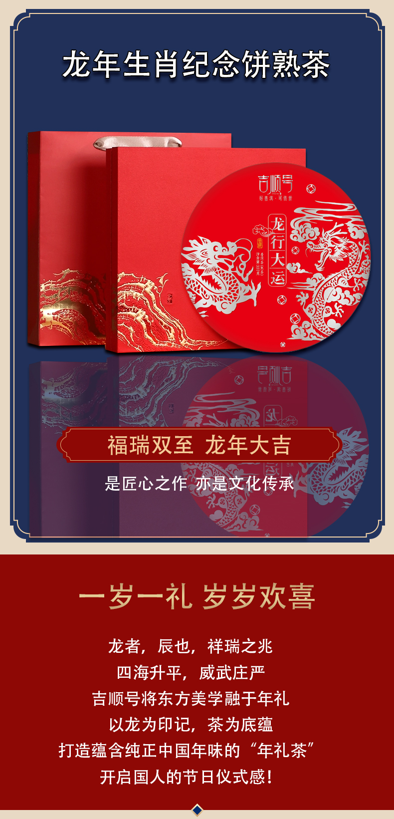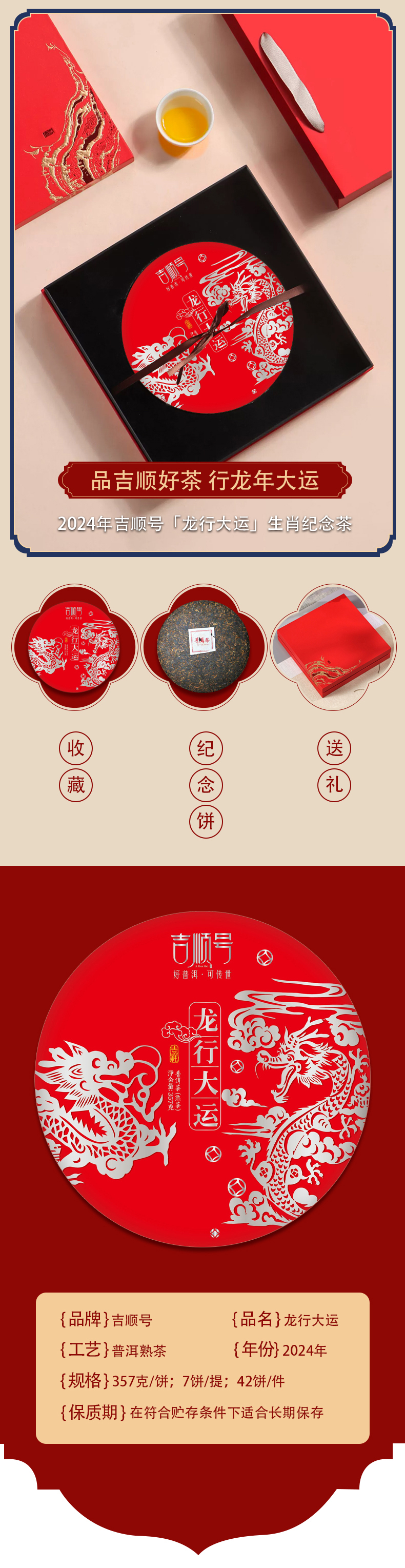 2024年《龙行大运》龙年生肖纪念饼班章熟茶357克