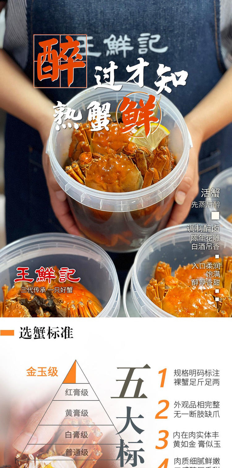 【产品名称】王鲜记花雕熟醉蟹大盲桶